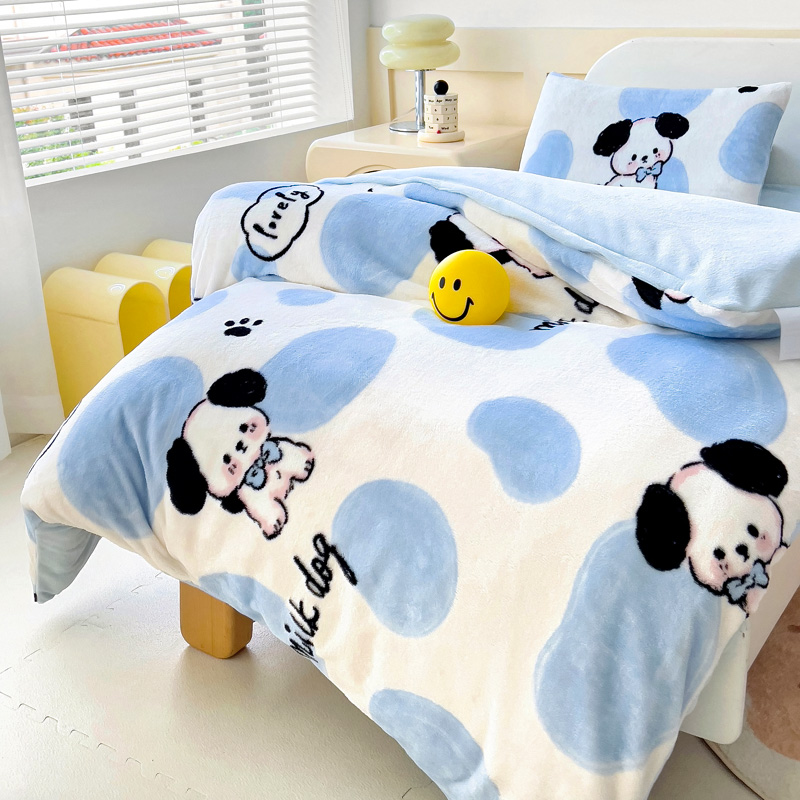 • 91家纺网 家纺一手货源 找家纺 乐秀家纺 2025新款A类牛奶绒幼儿园被子可拆卸被套+被芯 乐乐狗