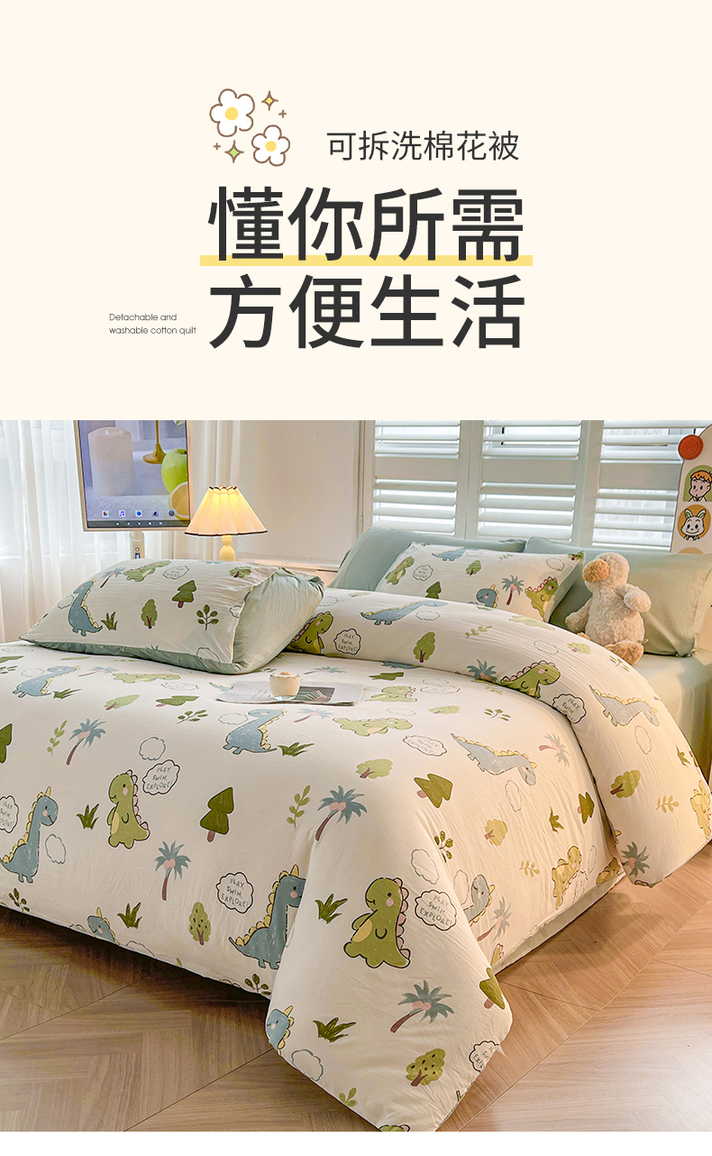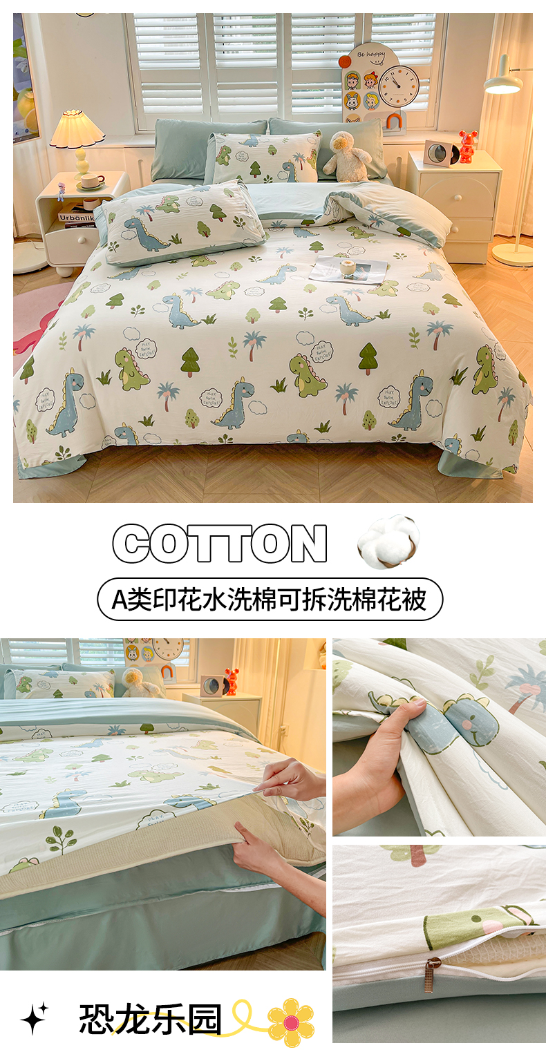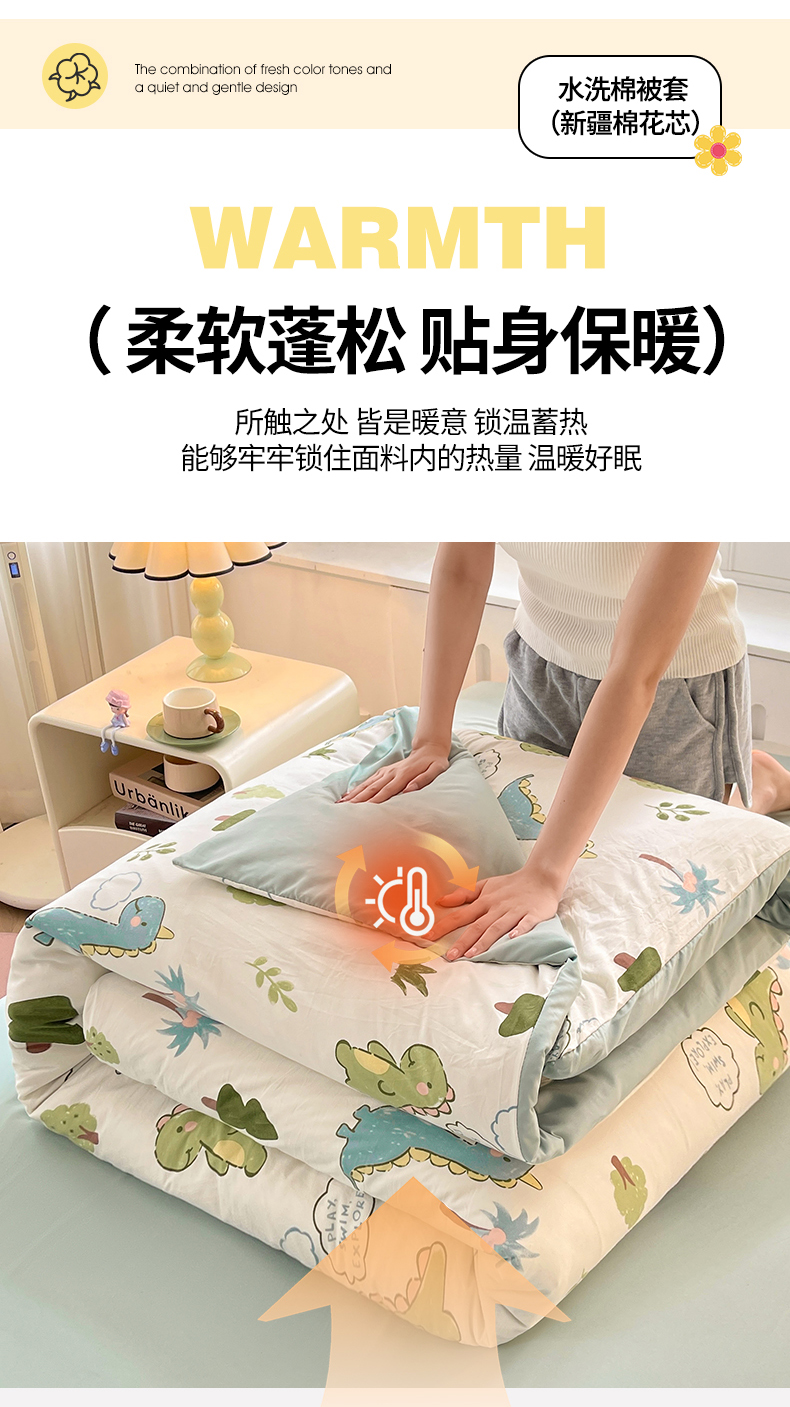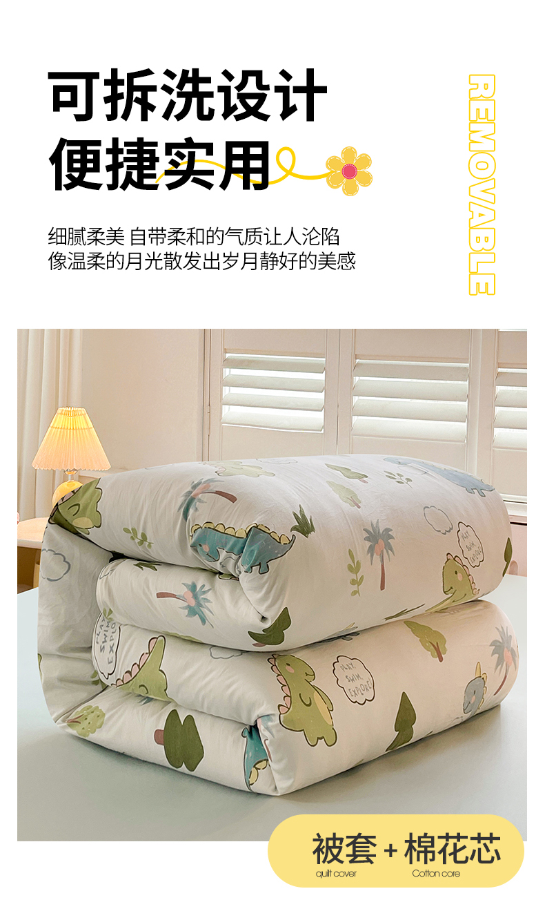 • 91家纺网 家纺一手货源 找家纺 晓时候 2025新款印花水洗棉新疆棉花被可拆洗被子被芯冬被春秋被 恐龙乐园