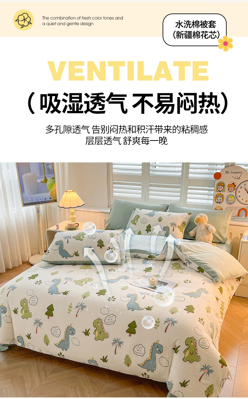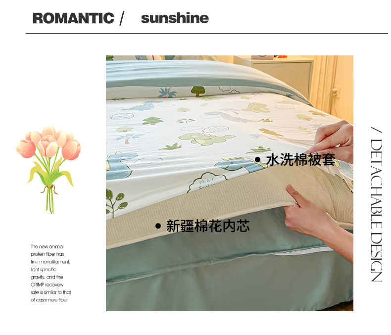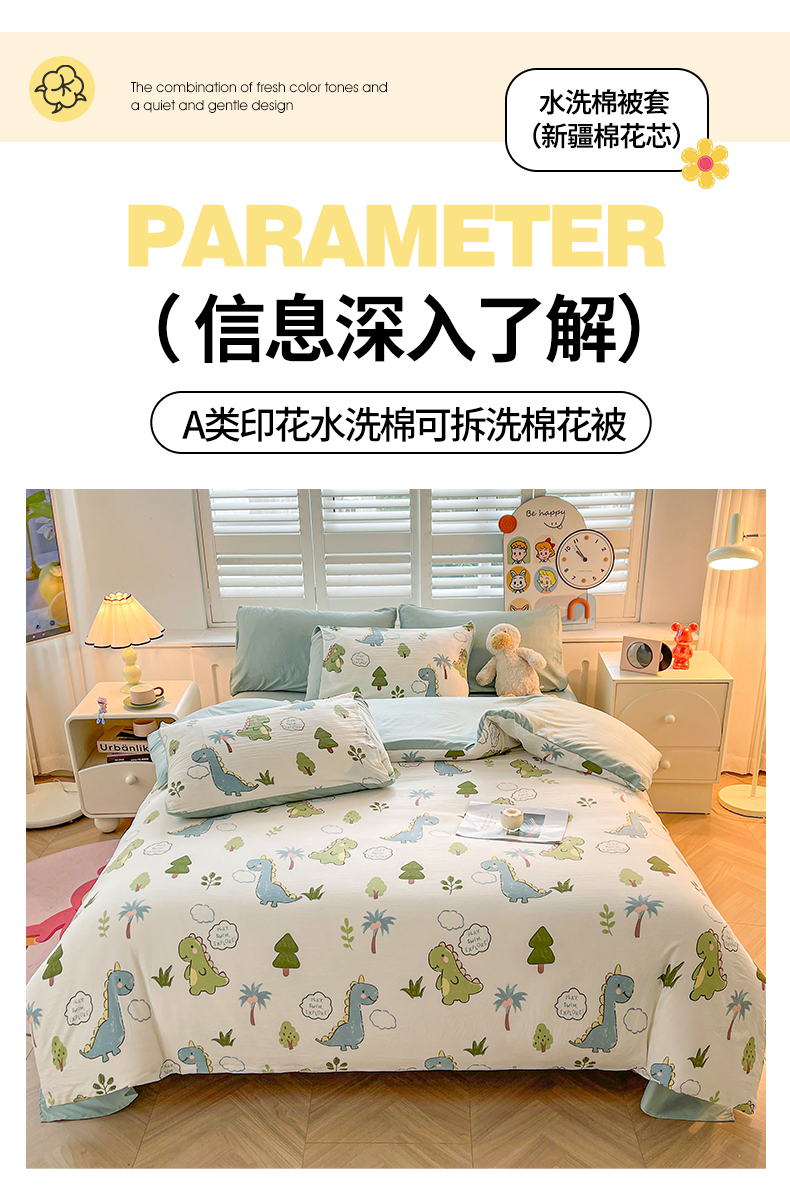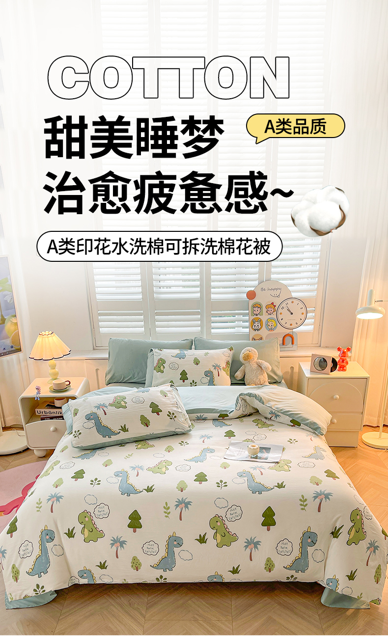 • 91家纺网 家纺一手货源 找家纺 晓时候 2025新款印花水洗棉新疆棉花被可拆洗被子被芯冬被春秋被 恐龙乐园