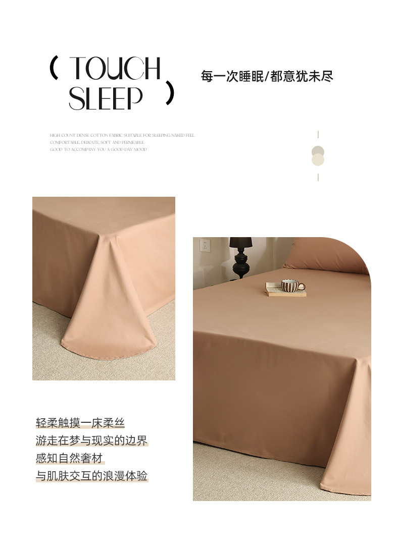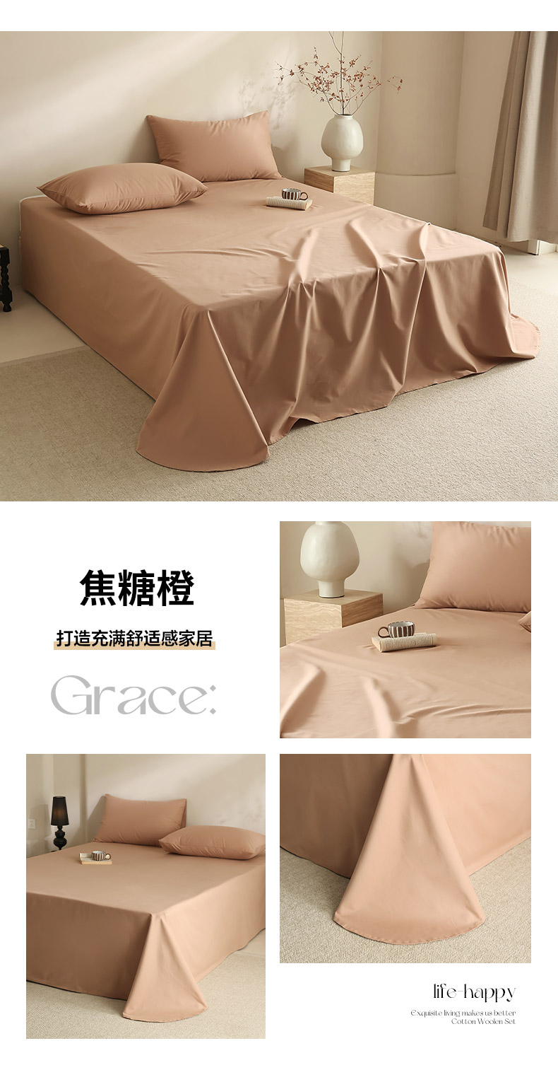 轩和家居 2024新款50S长绒棉磨毛单床单 焦糖橙