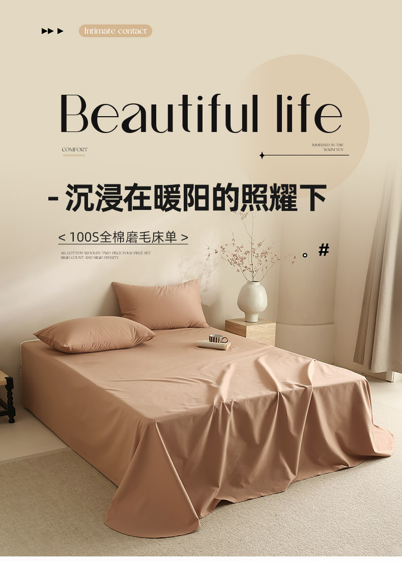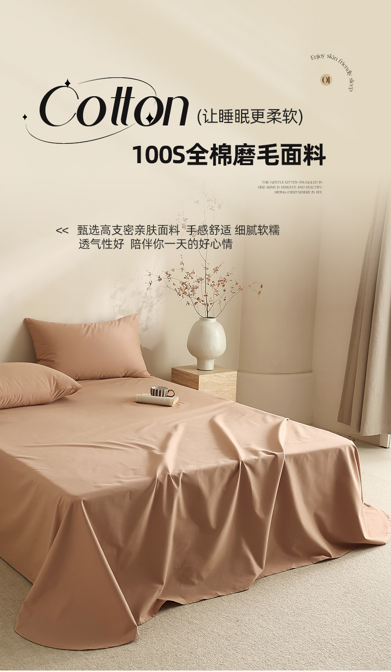 (总)轩和家居 2025新款全棉高支旧感砂洗长绒棉单床单,组合,霁兰色,暮烟灰,墨染灰,落栗棕,薄樱粉,豆沙色,淡黄色,浅云白,青绿色,秋麦色,松石绿,天空蓝,雾海蓝,细雨灰