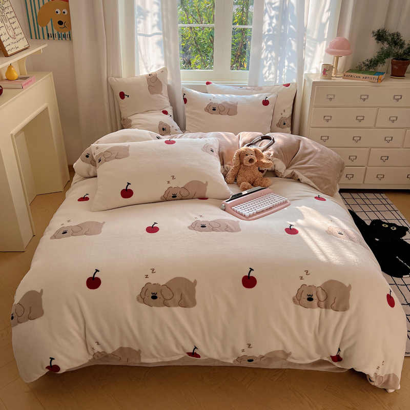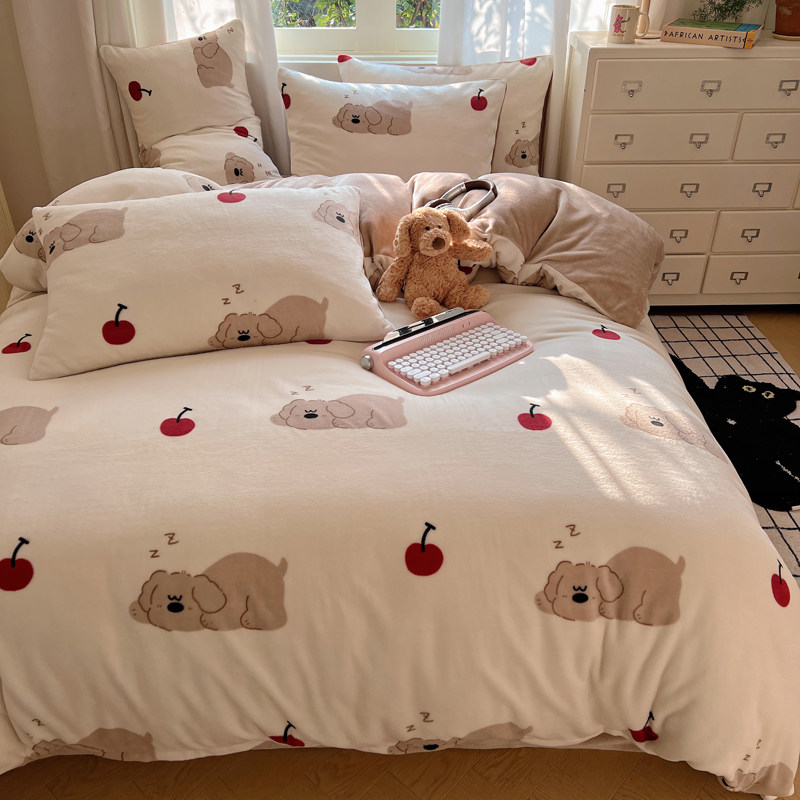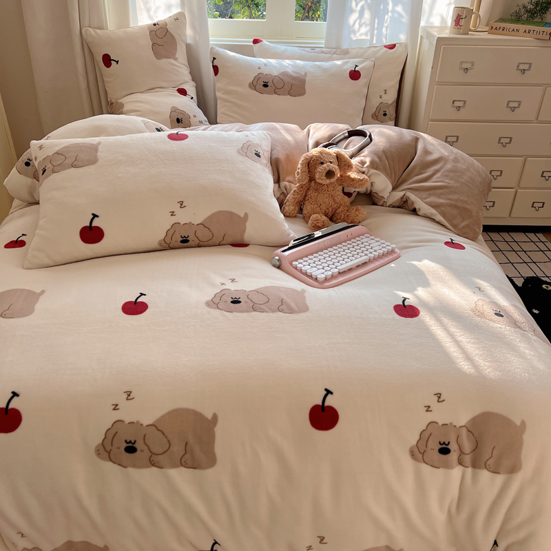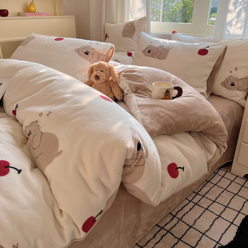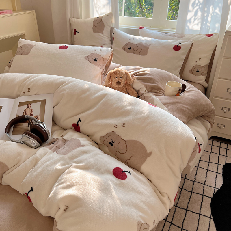 顾里家纺 2024新款加厚牛奶绒ins奶油治愈系少女心保暖四件套系列-风格二 趴趴熊