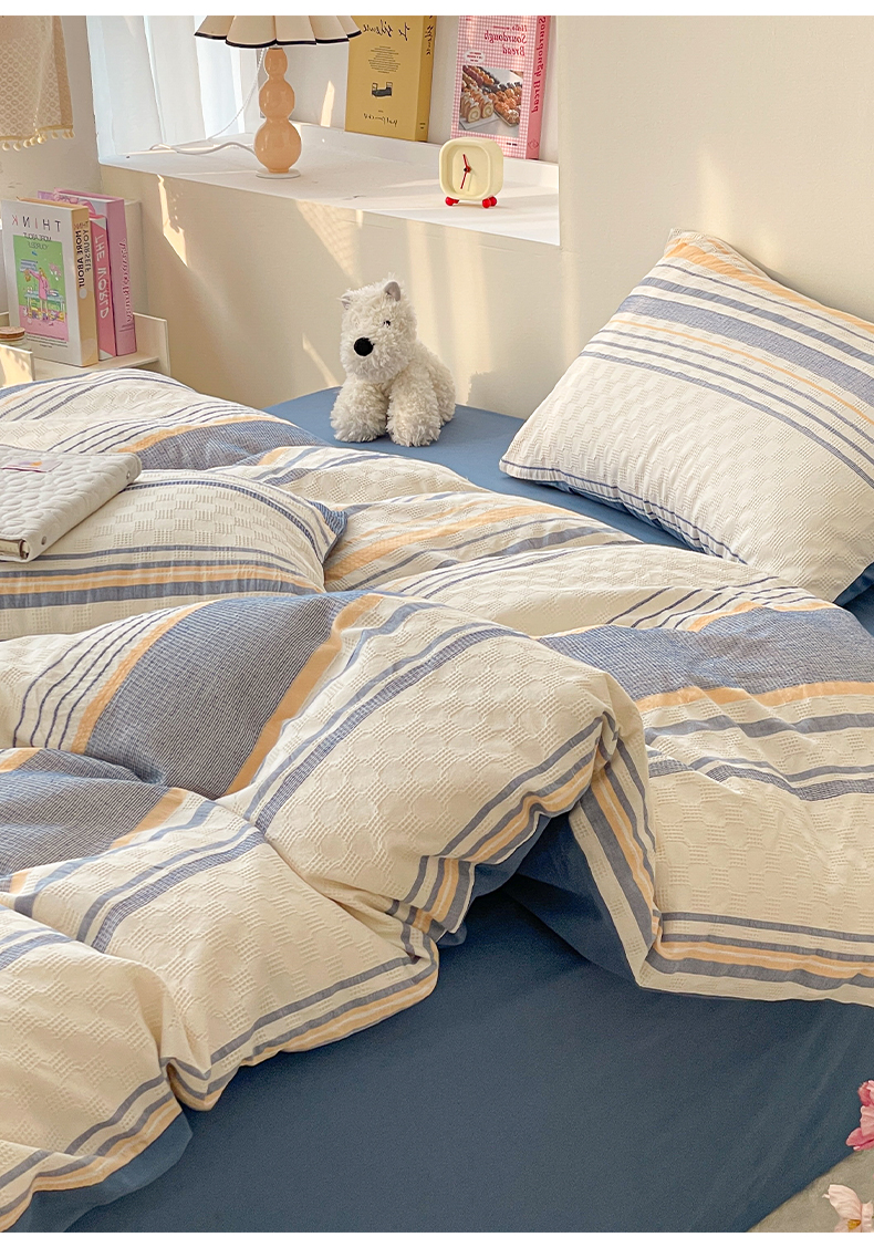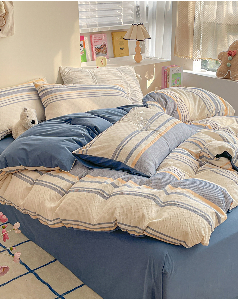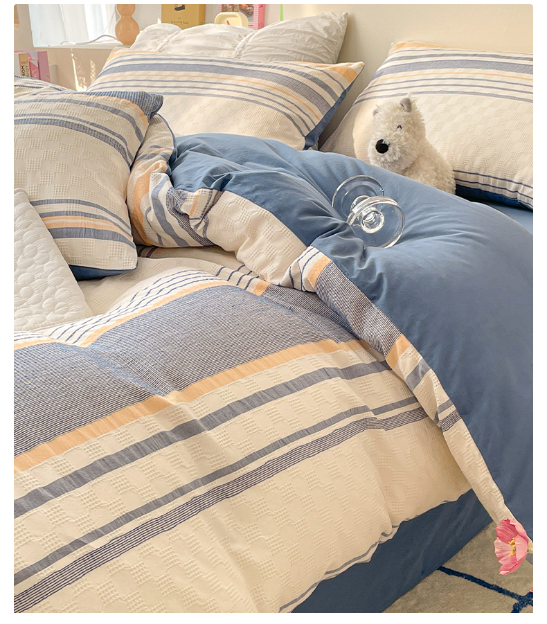 当前位置: 91家纺网 > 商品网购 > 床品套件 > 四件套 > 全棉普通四件套 > 雅居纺家纺 2024新款100%全棉简约提花四件套 简希-深蓝