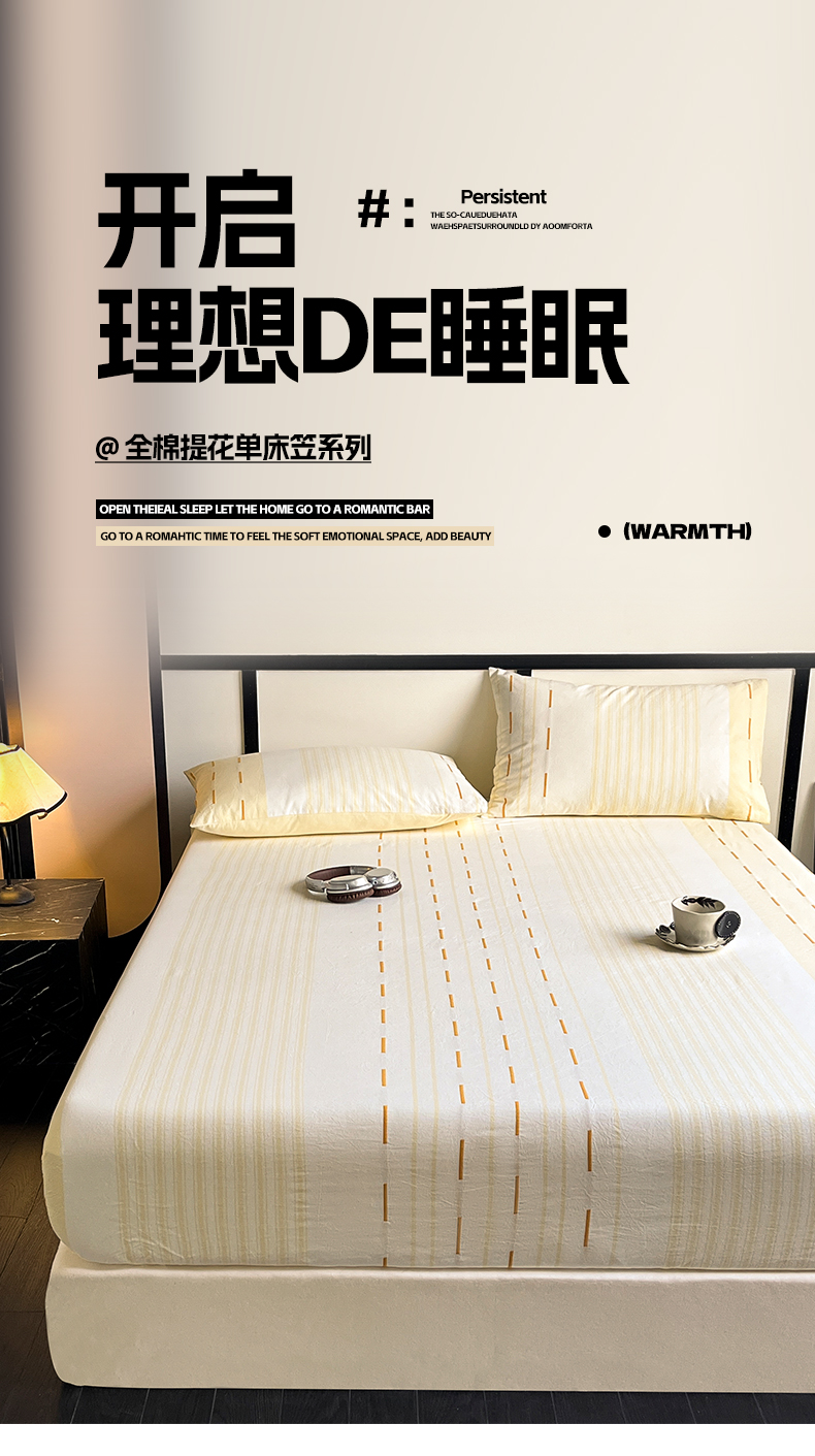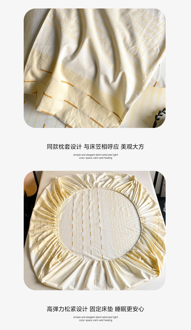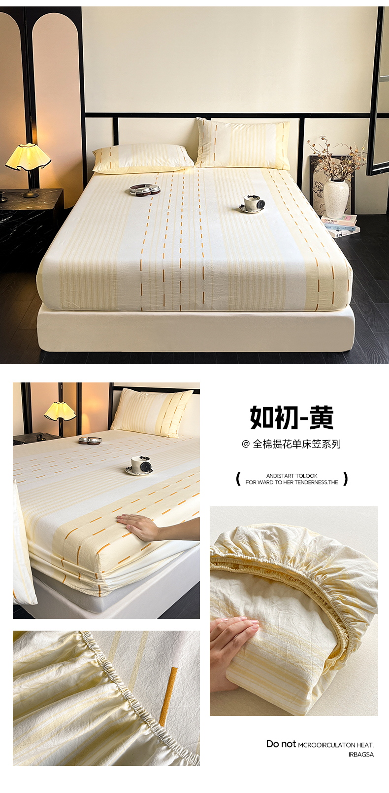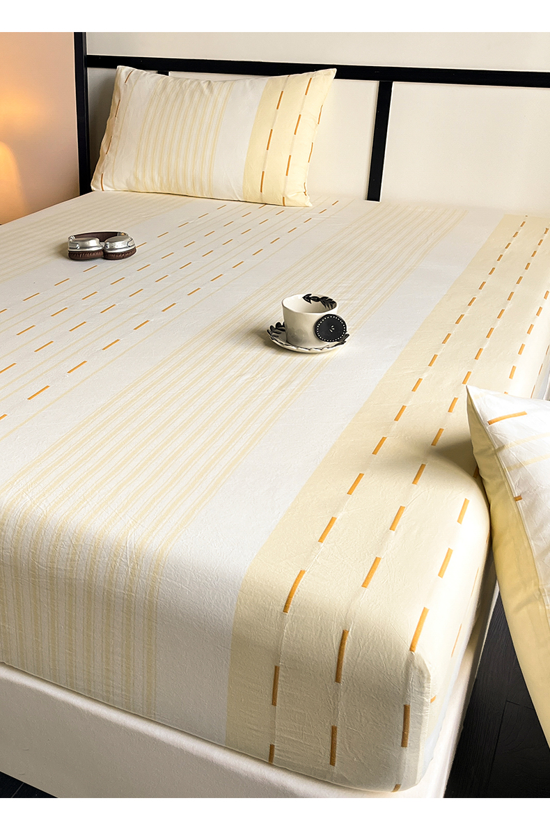 商品名称:雅居纺家纺 2024新款100%全棉提花单床笠-如初 如初-黄