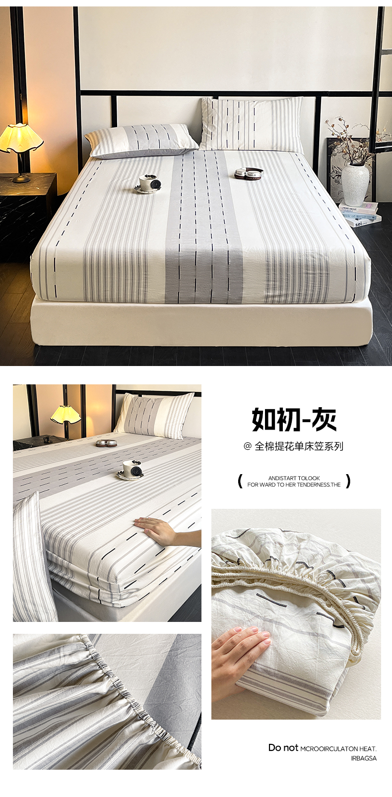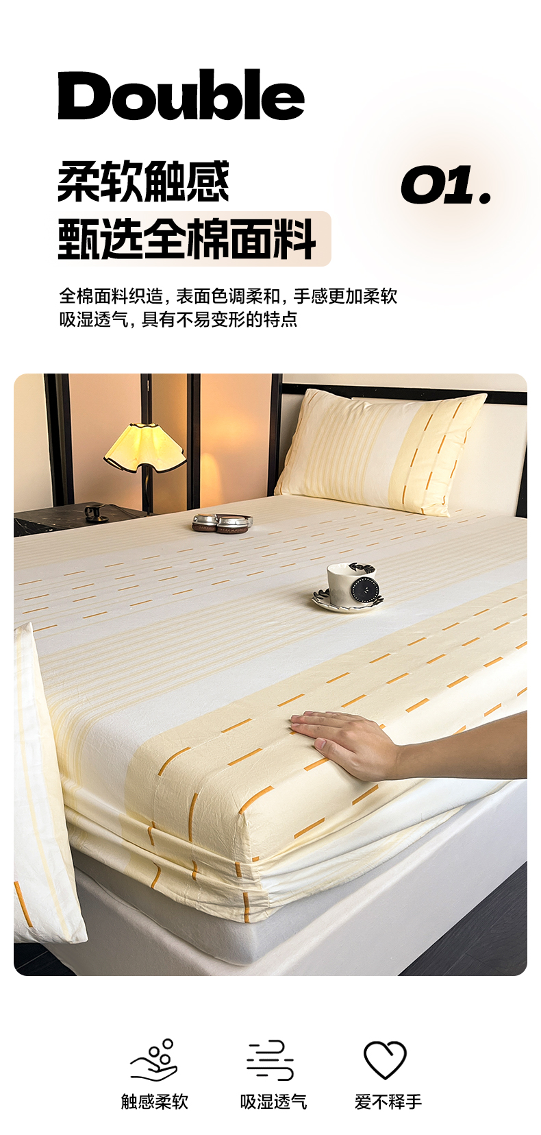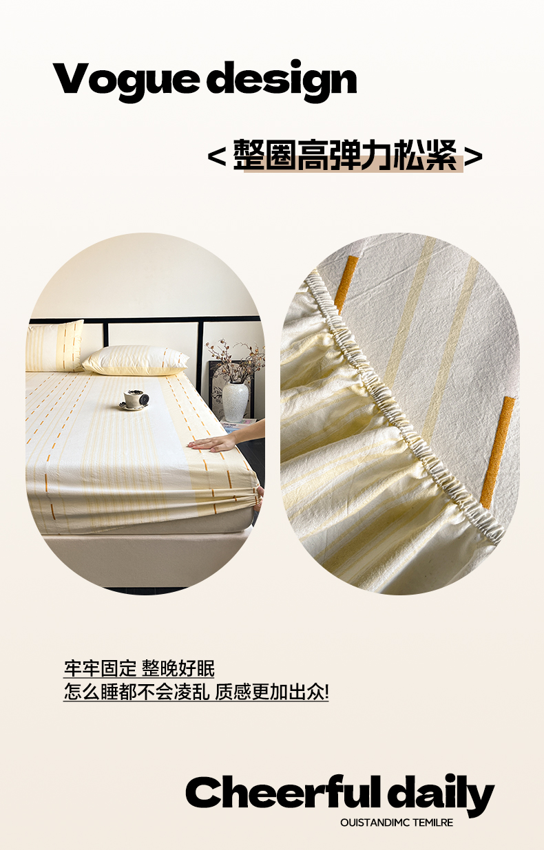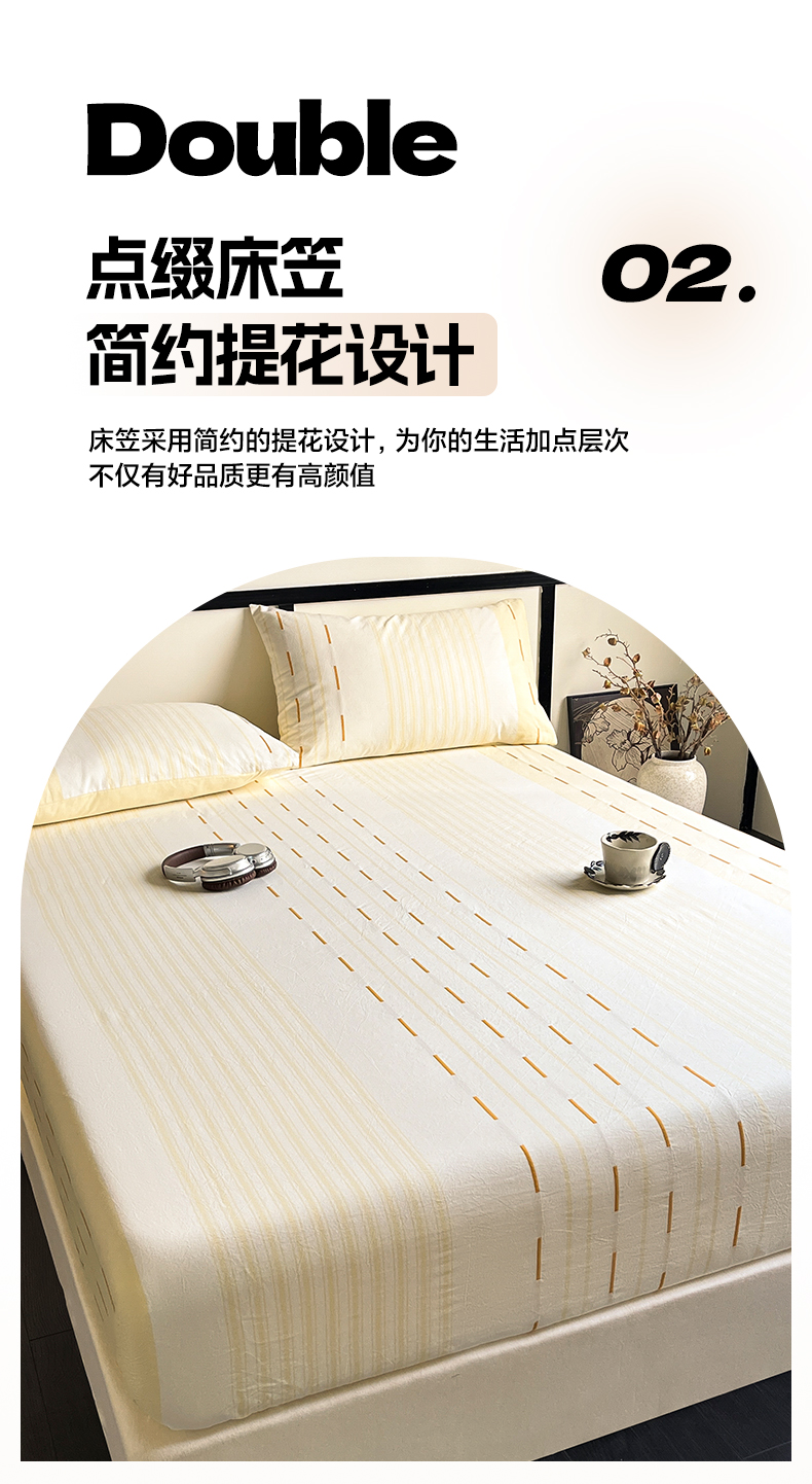 商品名称:雅居纺家纺 2024新款100%全棉提花单床笠-如初 如初-黄