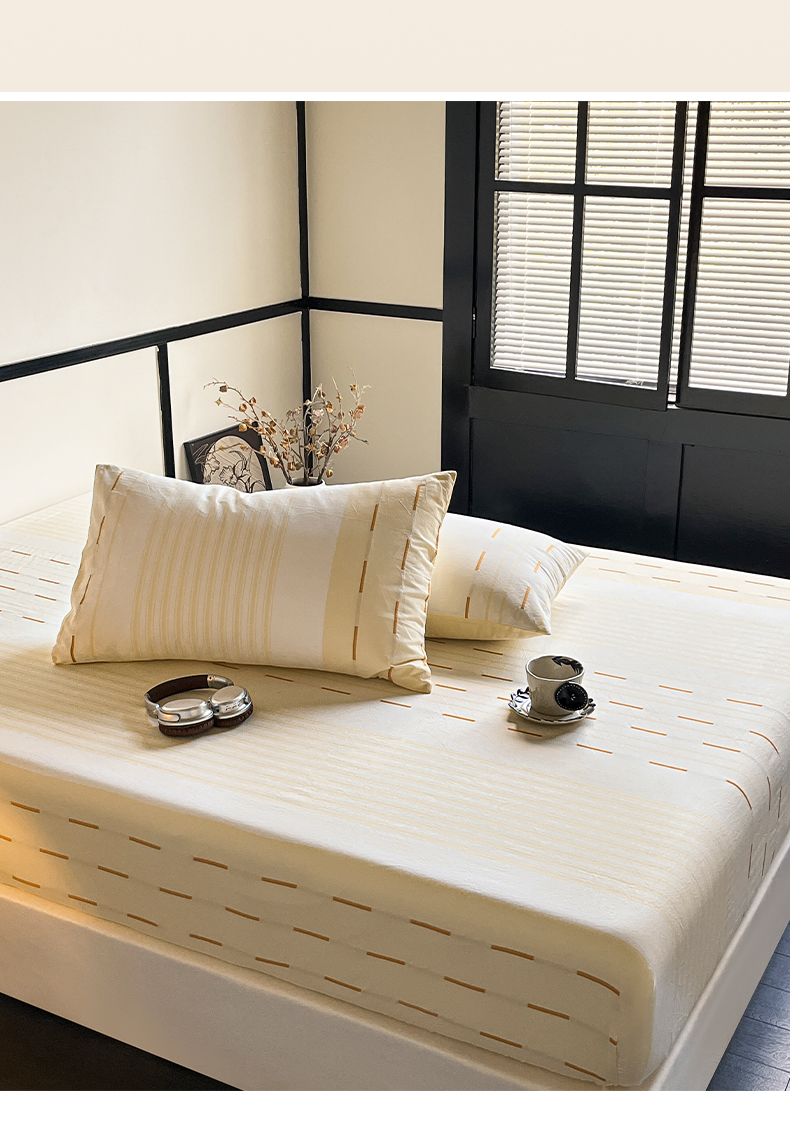 雅居纺家纺 2024新款100%全棉提花单床笠-如初 如初-黄