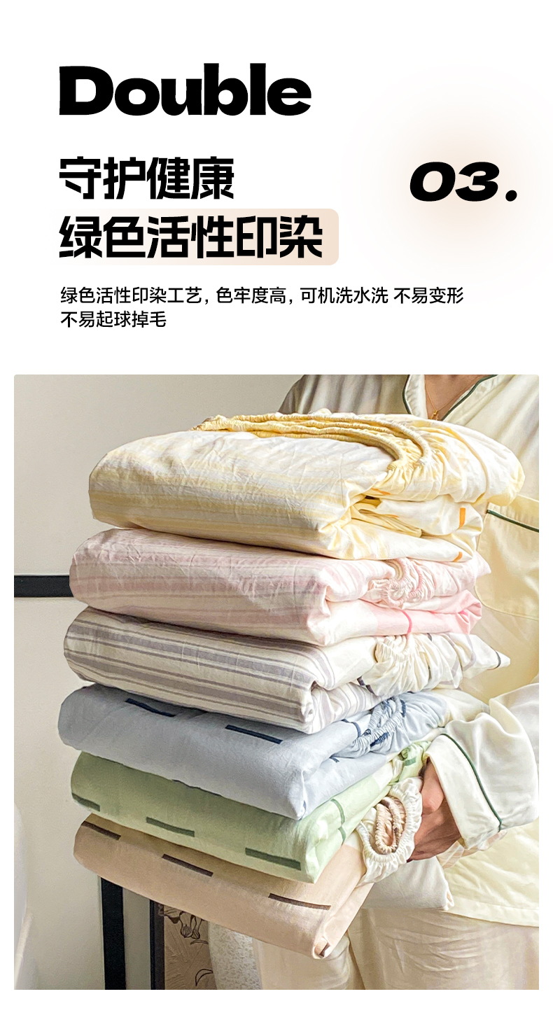 (总)雅居纺家纺 2022新款13070全棉印花四件套,波纹,多彩,简笔画,莓关系,奶油绿豹纹,倾心,数字