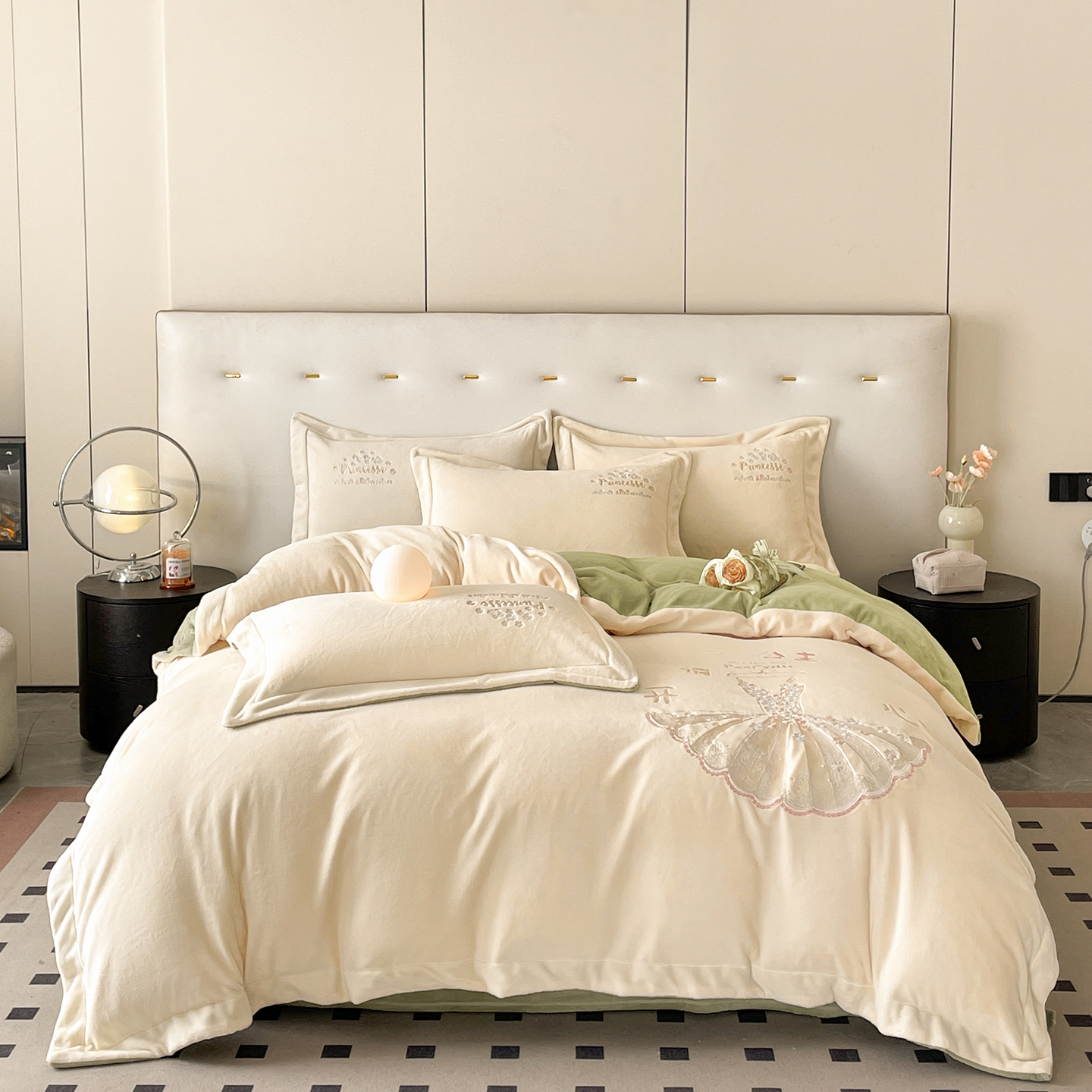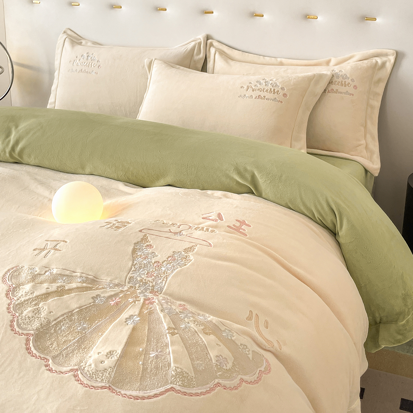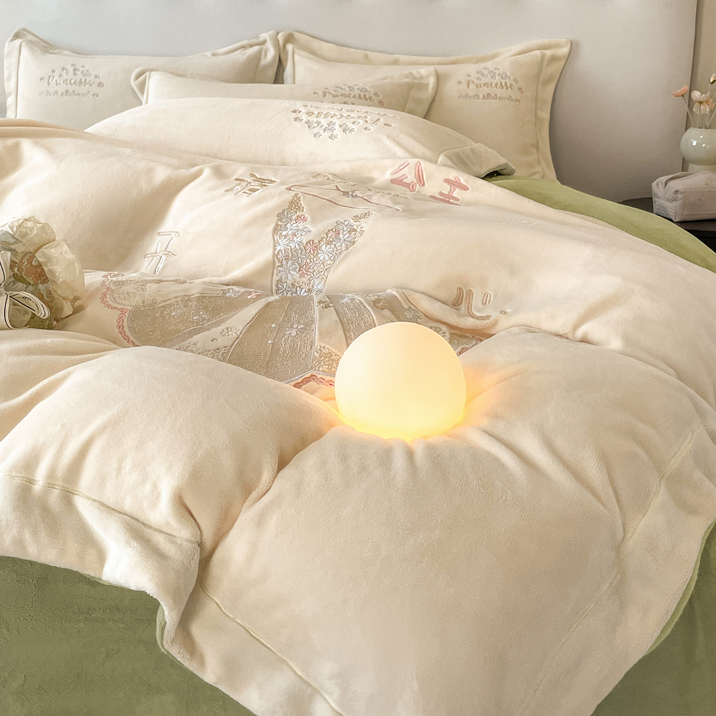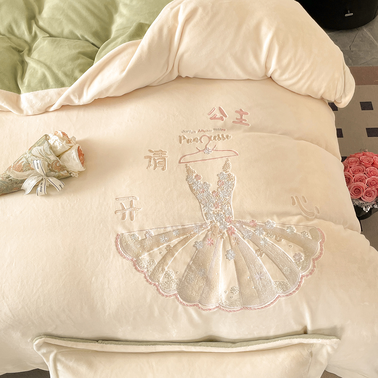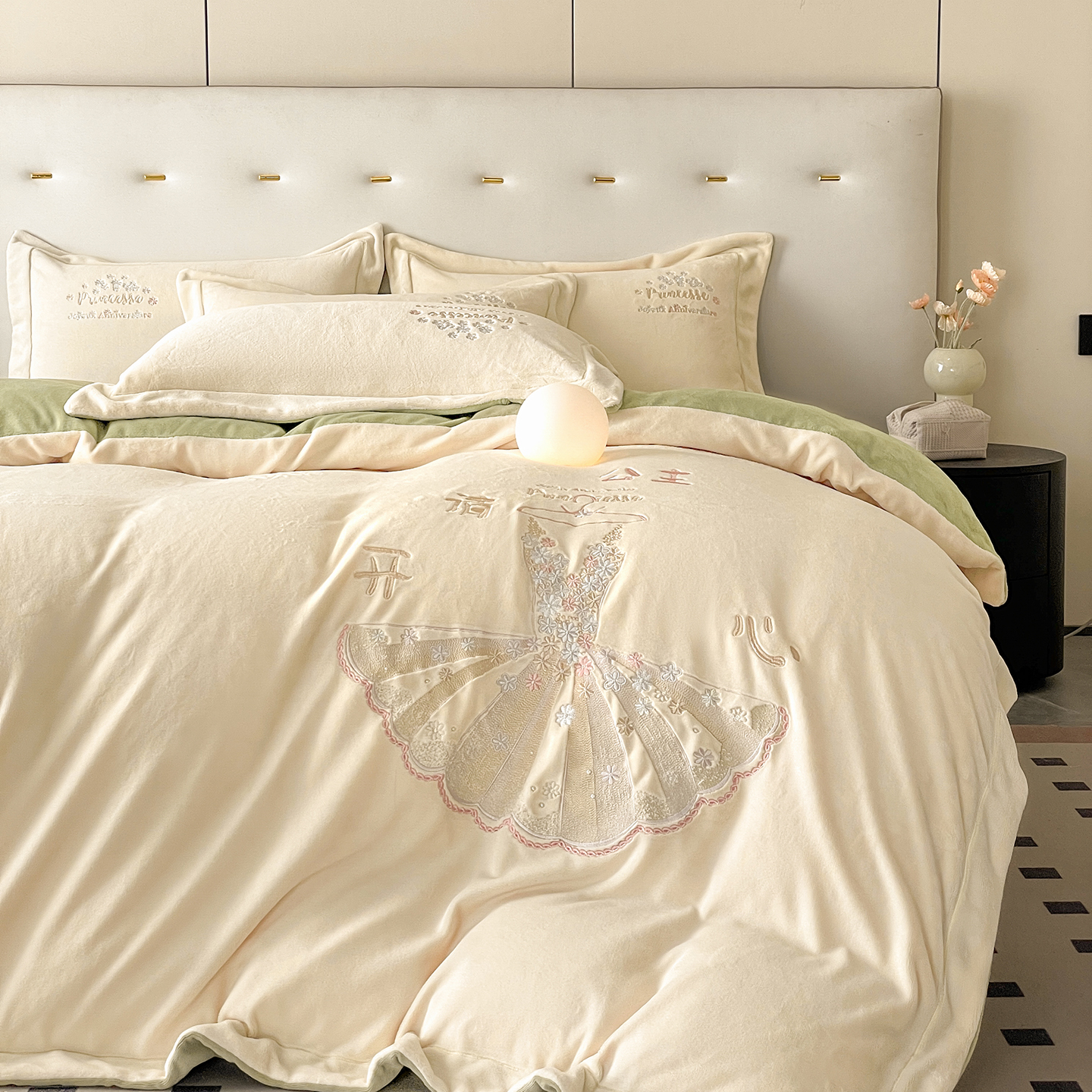 新方向 2025新款全消光A类牛奶绒四件套-公主请开心2 公主请开心-奶白