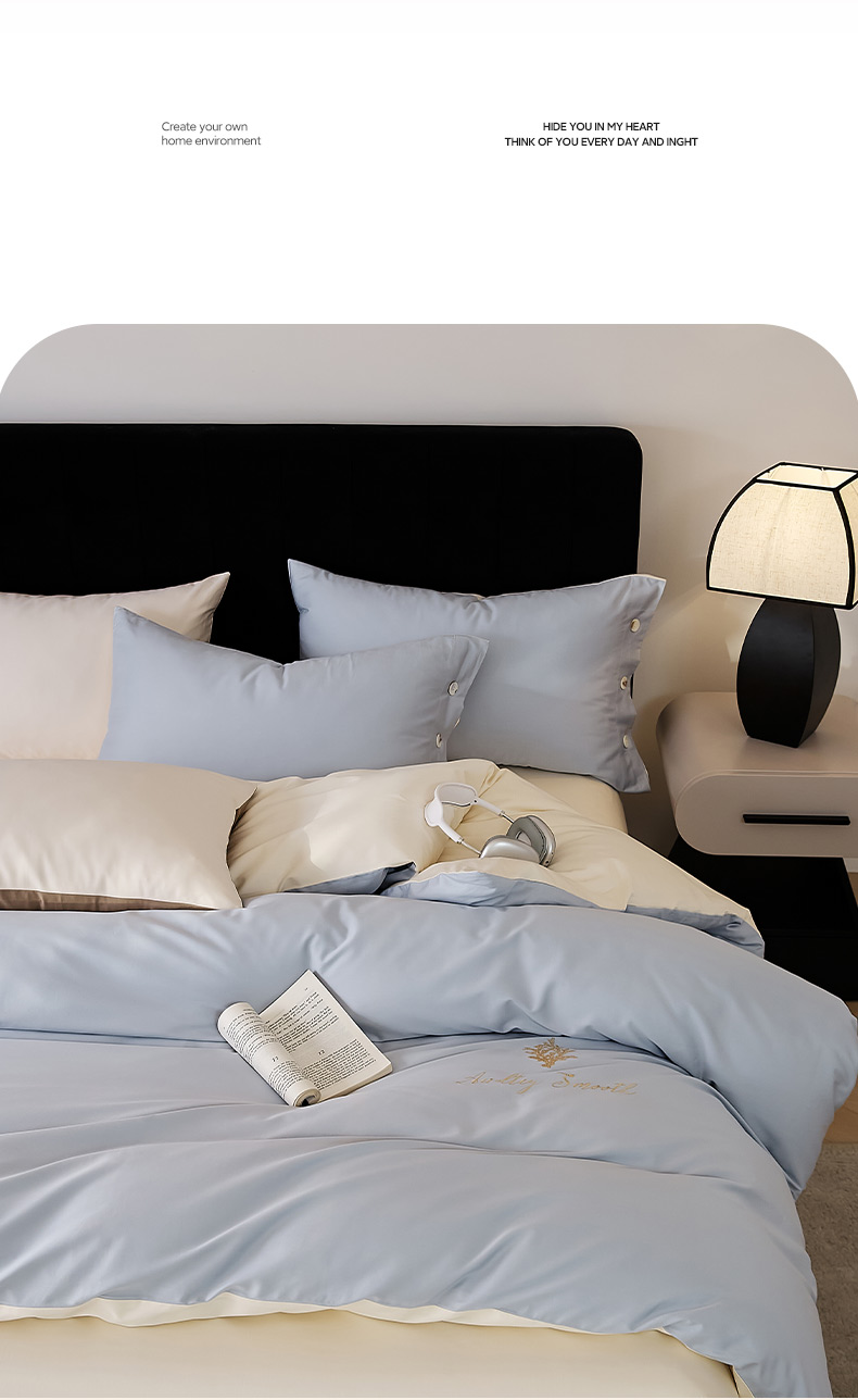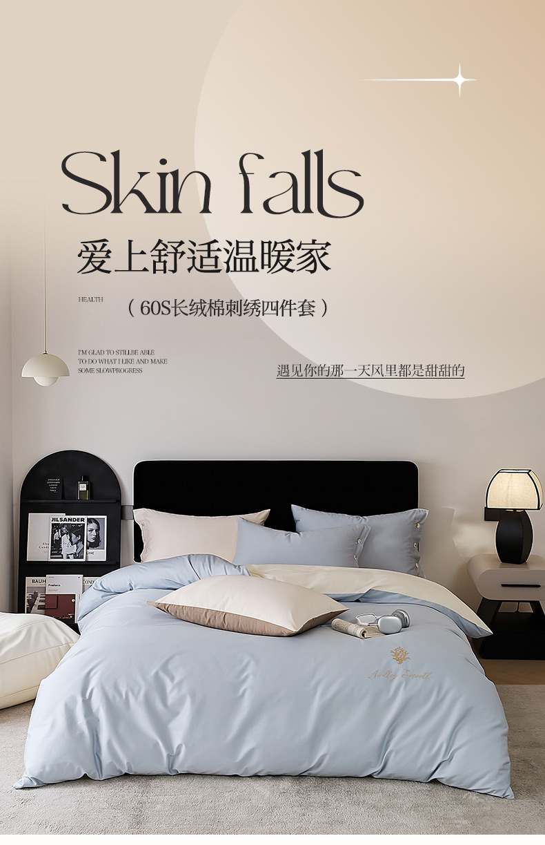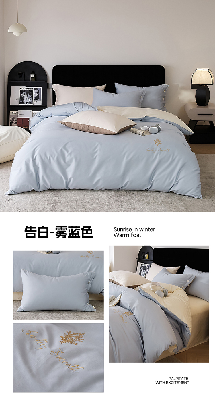 当前位置: 91家纺网 > 商品网购 > 床品套件 > 四件套 > 长绒棉四件套 > 2024新款60S长绒棉珊瑚绣花款四件套-告白系列(英文版) 告白-雾蓝色
