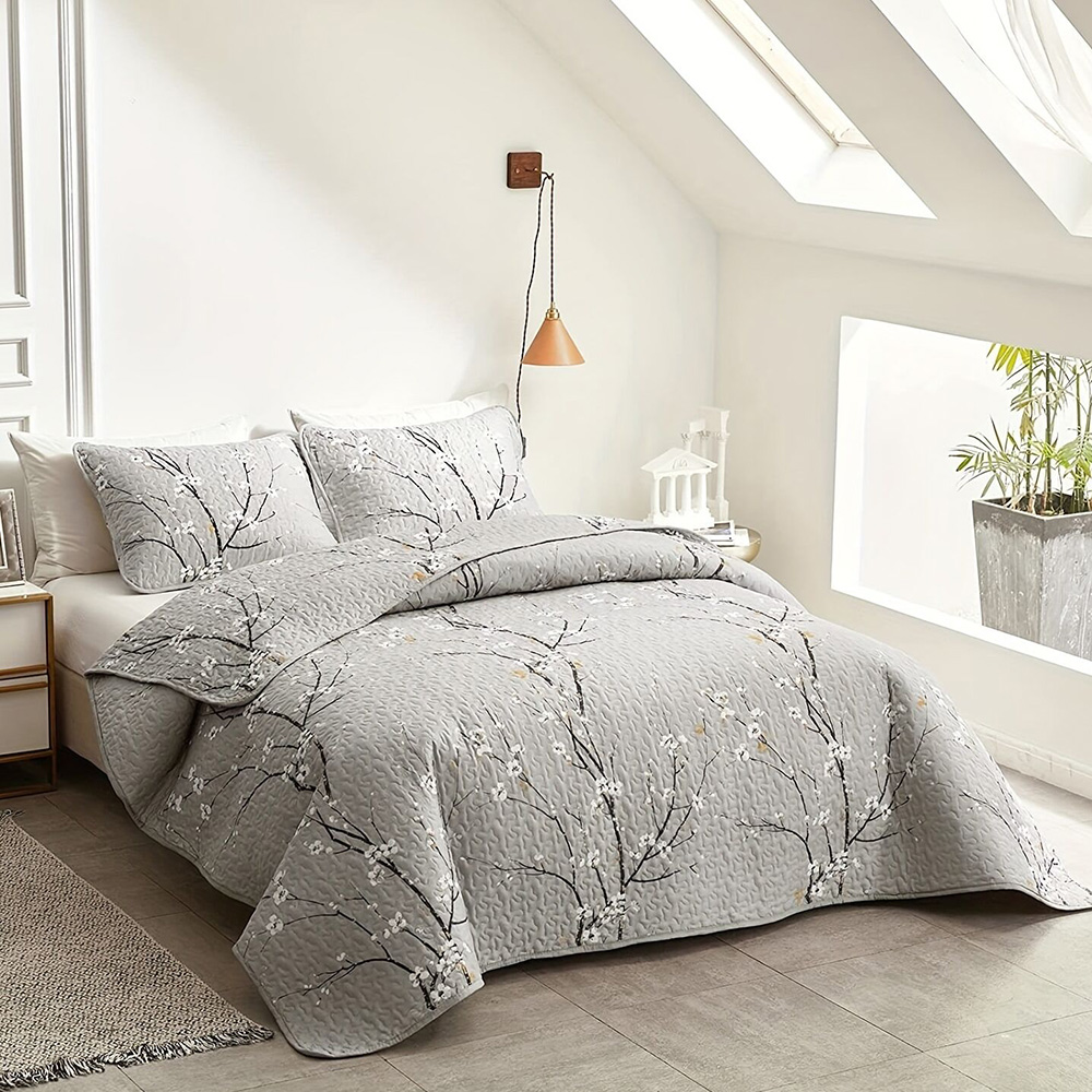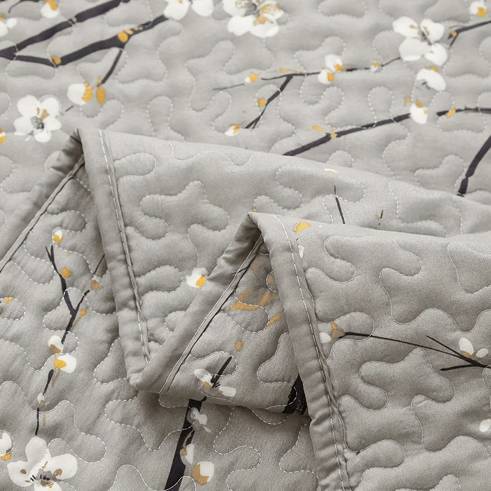 跨境专供 2025新款绗缝被四季通用床可水洗夹棉绗缝床盖,梅花白,梅花灰