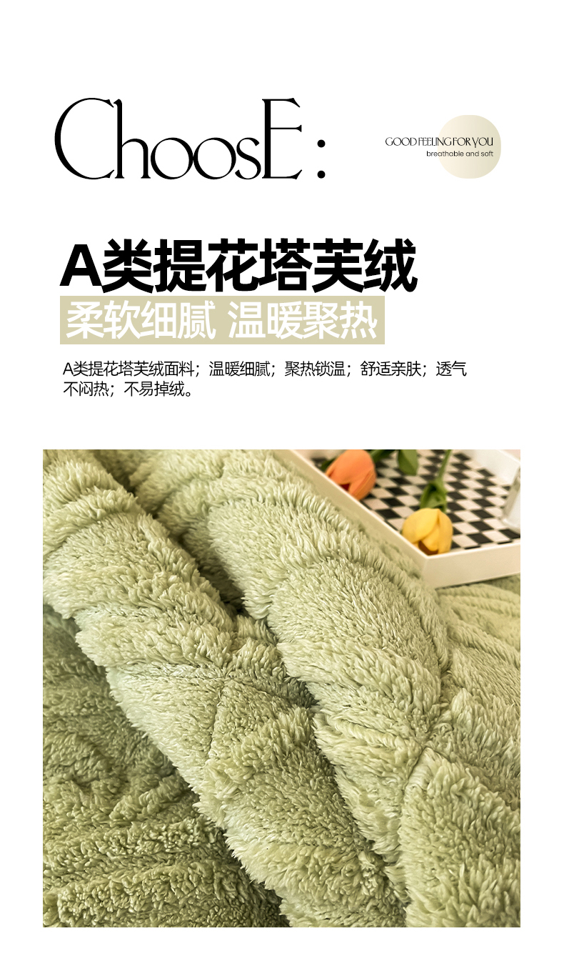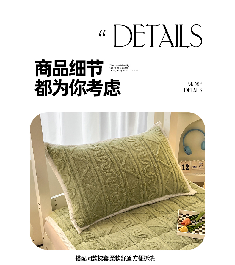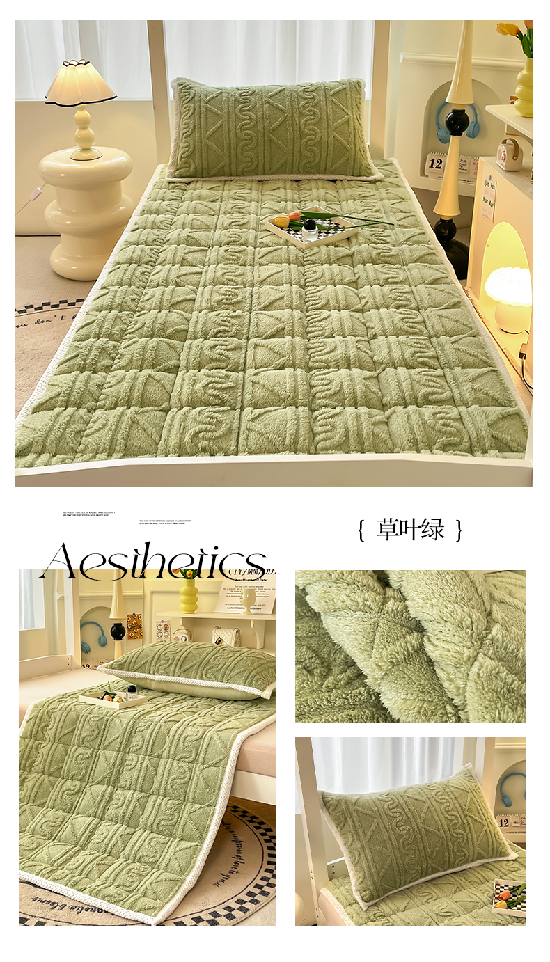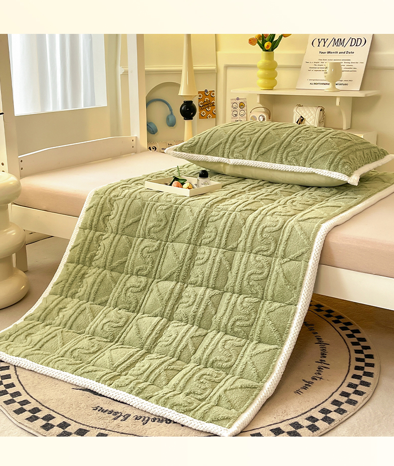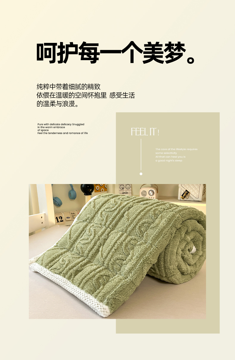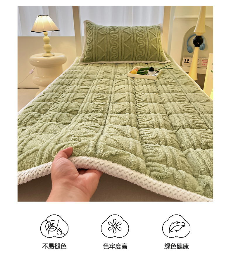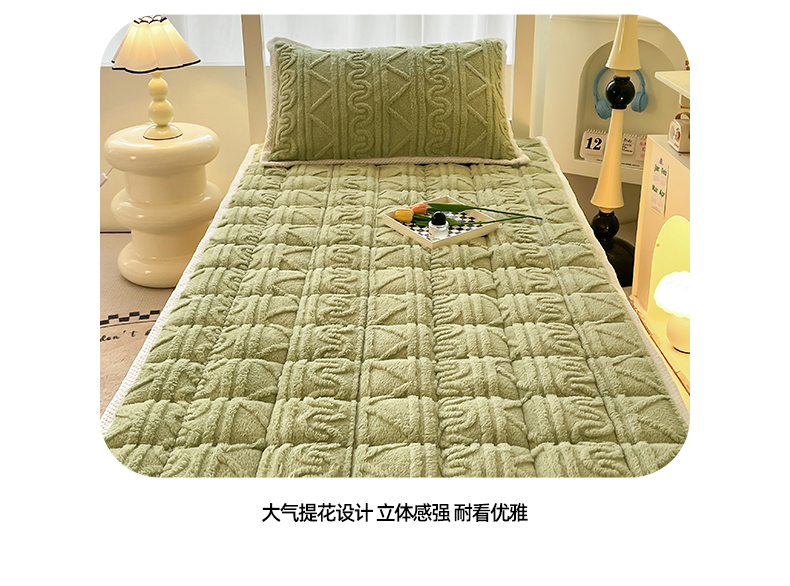 商品名称:暖季家纺 2025新款A类提花塔芙绒保暖床垫-浮笙 浮笙-果绿床褥