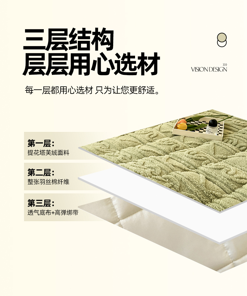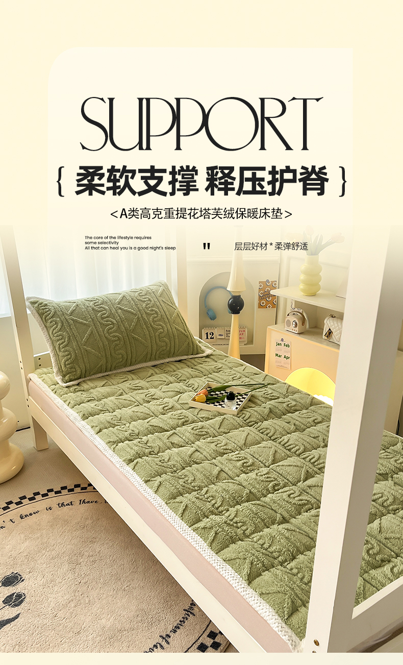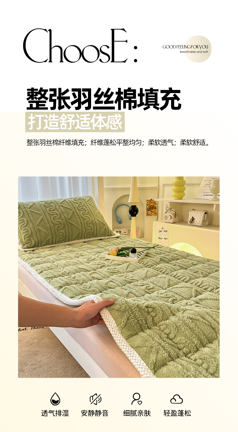暖季家纺 2025新款A类提花塔芙绒保暖床垫-浮笙 浮笙-果绿床褥