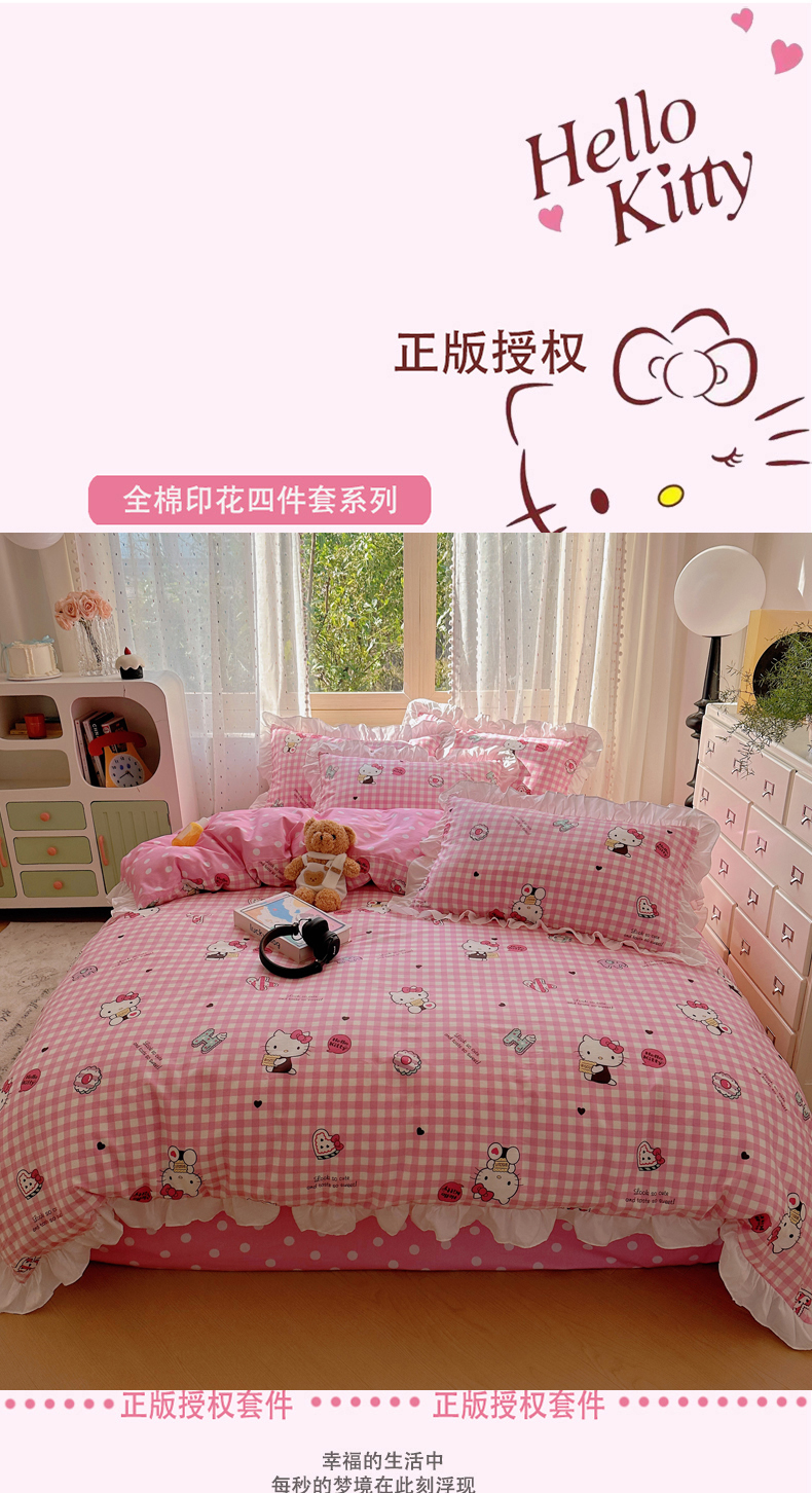 (总)三朵家纺 2024新款全消光三丽鸥印花牛奶绒系列四件套,爱心凯蒂,街舞库洛米,凯蒂公主,乐园KT,漫画帕恰,美好帕恰,美乐蒂格格,淘气帕恰,甜蜜公主KT,童心帕恰,艺术家库洛米,运动帕恰,字母帕恰