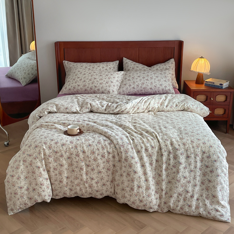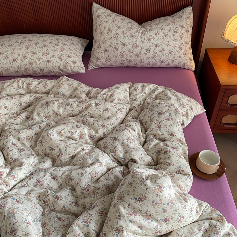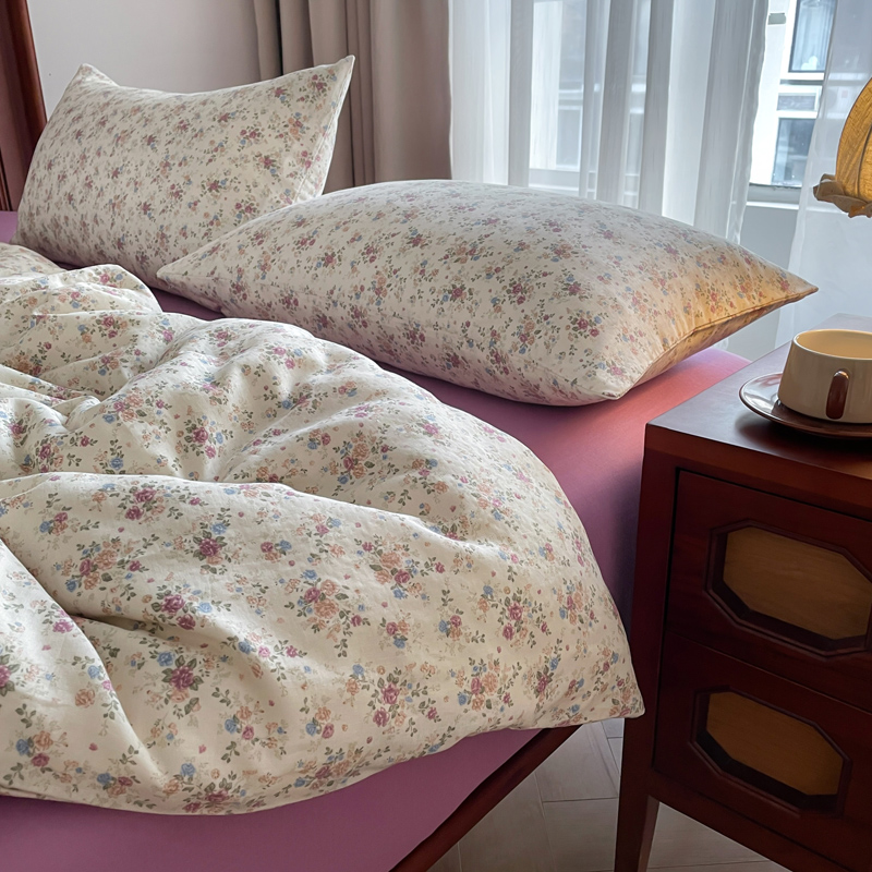 商品名称:一比一 2025新款全棉母婴有氧全棉双层纱亲肤全棉小清新印花三件套四件套 奥黛丽