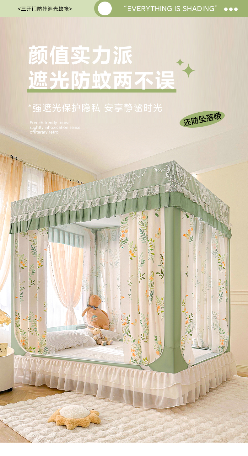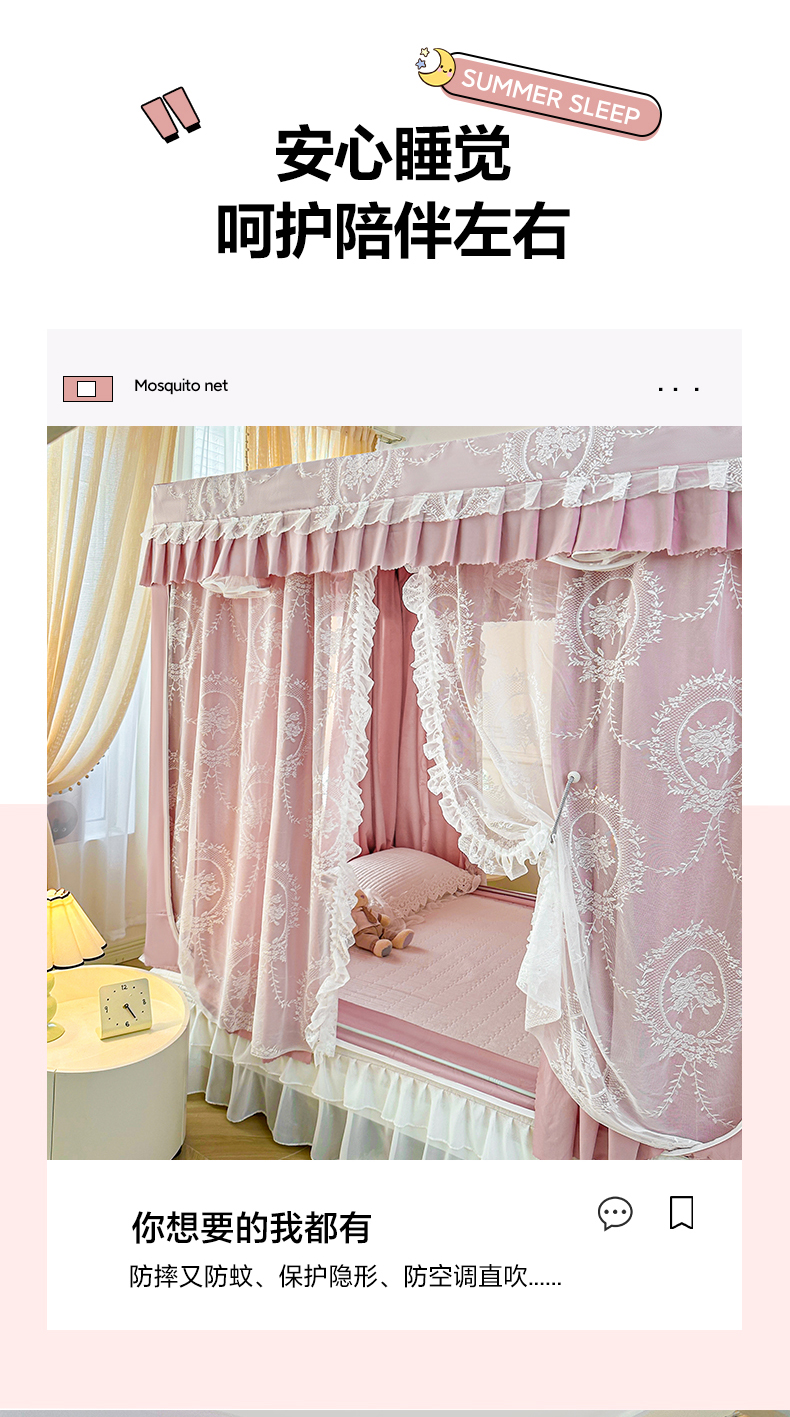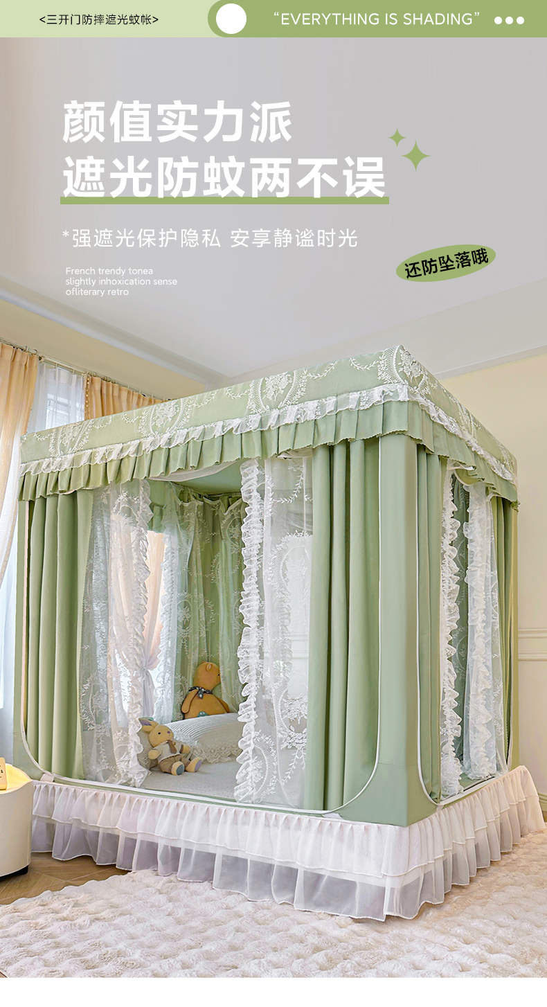 (总)都市缘蚊帐 2025新款公主风蚊帐学生宿舍一体式床帘全罩式强遮光布上下铺80 90cm,606-baby蓝-玫瑰,606-baby蓝-薇尔,606-抹茶绿-薇尔,606-桃粉-玫瑰,606-桃粉-薇尔,606-香槟-玫瑰,606-香槟-薇尔