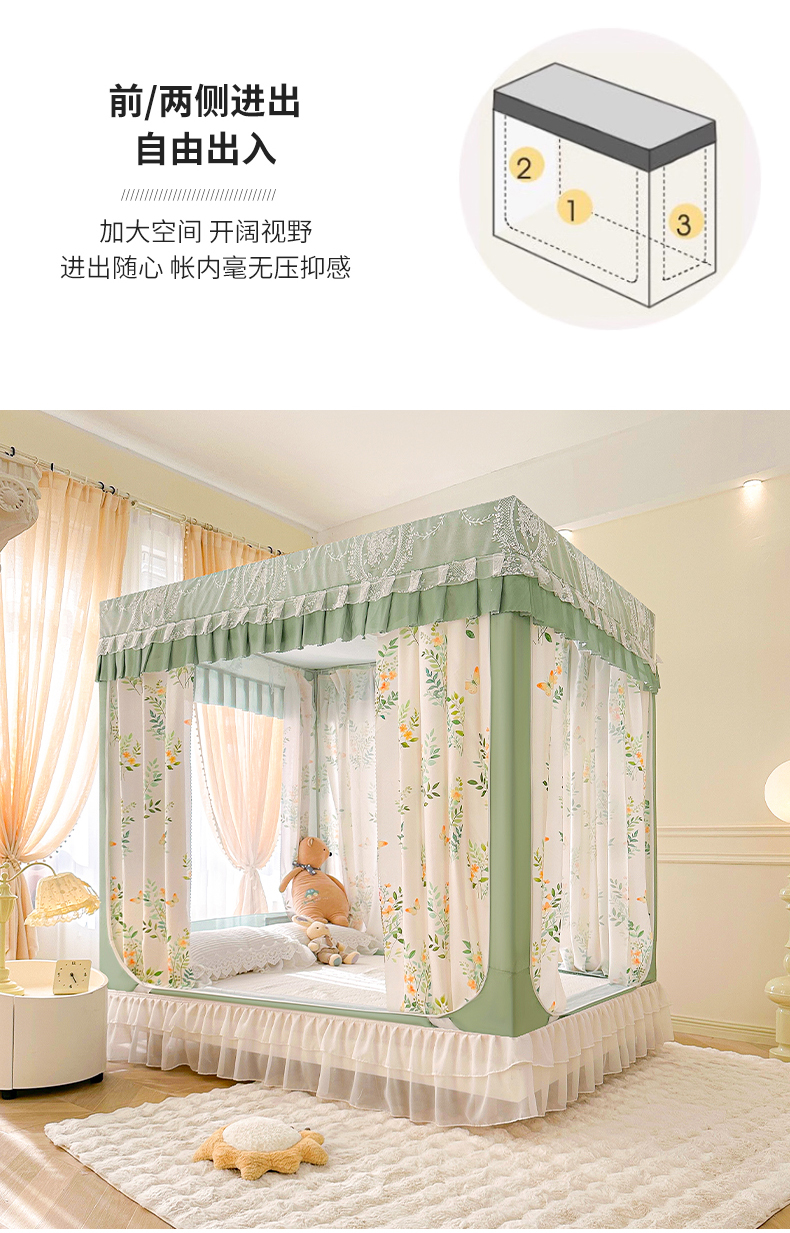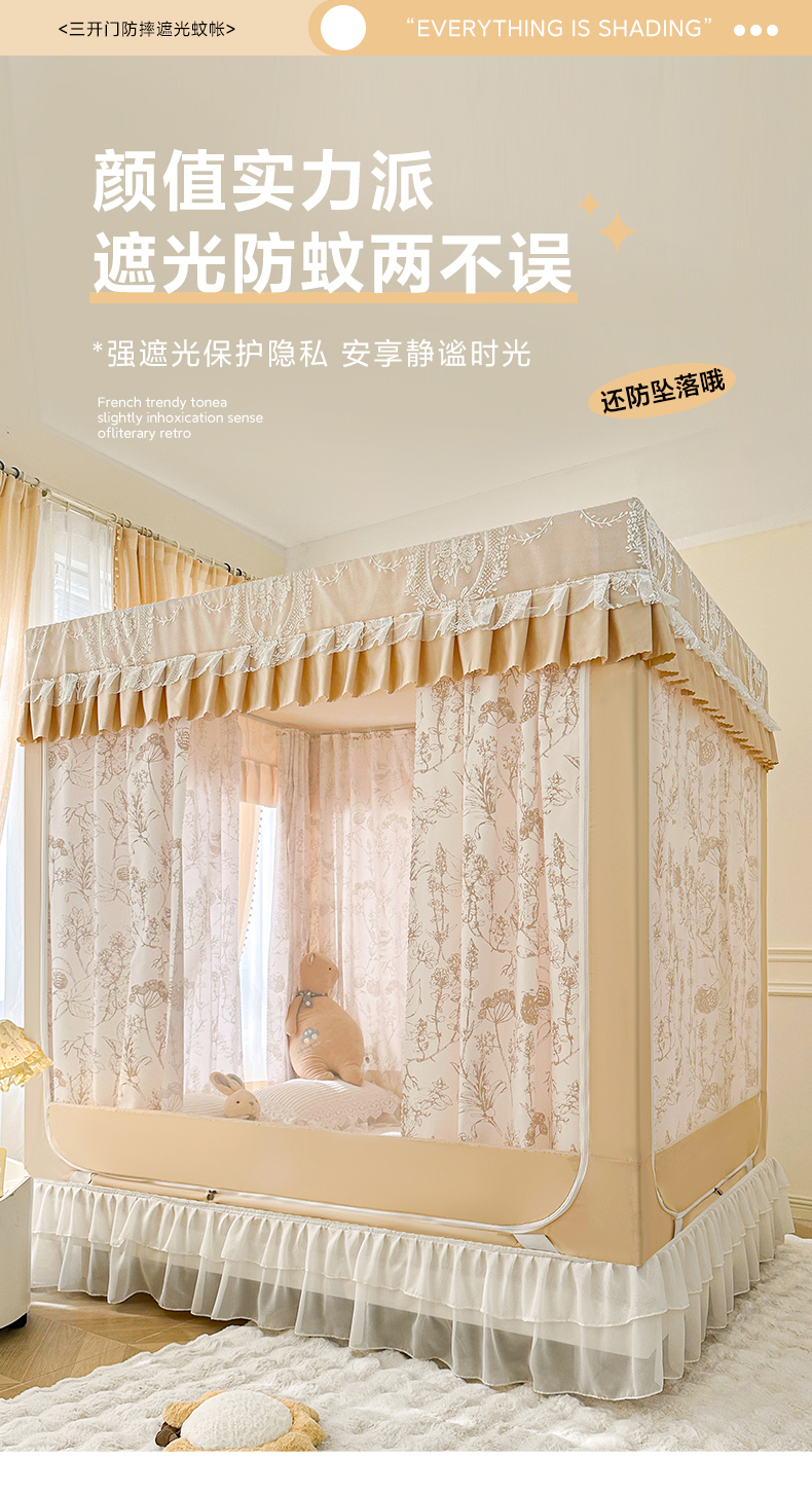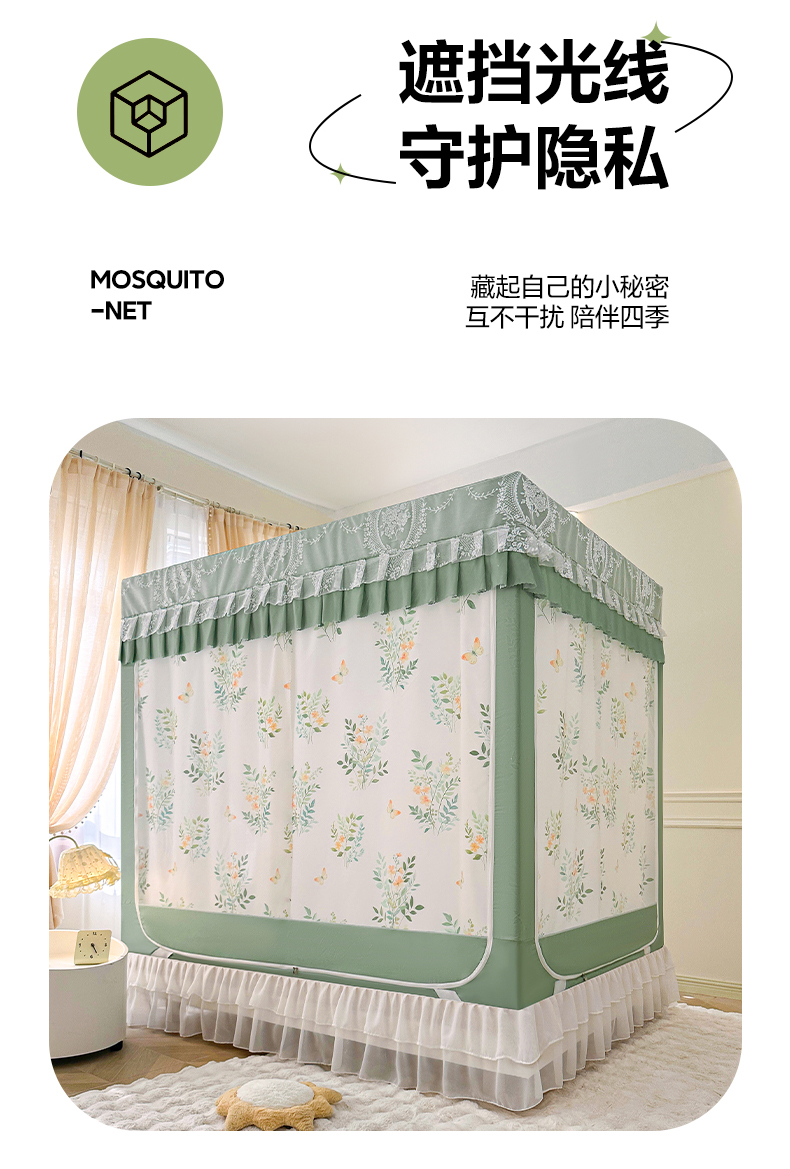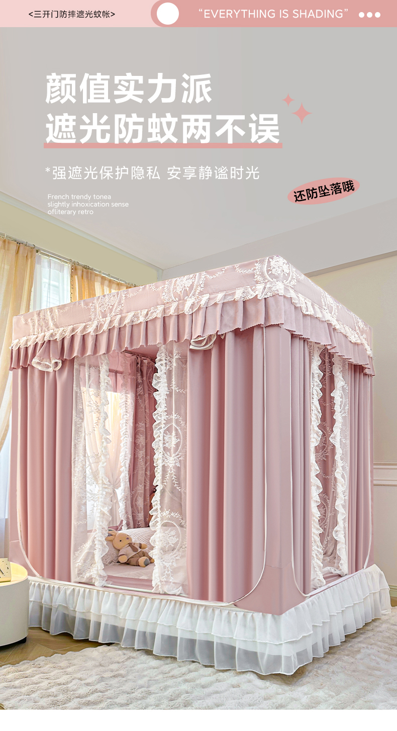 (总)都市缘蚊帐 2025新款公主风蚊帐学生宿舍一体式床帘全罩式强遮光布上下铺80 90cm,606-baby蓝-玫瑰,606-baby蓝-薇尔,606-抹茶绿-薇尔,606-桃粉-玫瑰,606-桃粉-薇尔,606-香槟-玫瑰,606-香槟-薇尔
