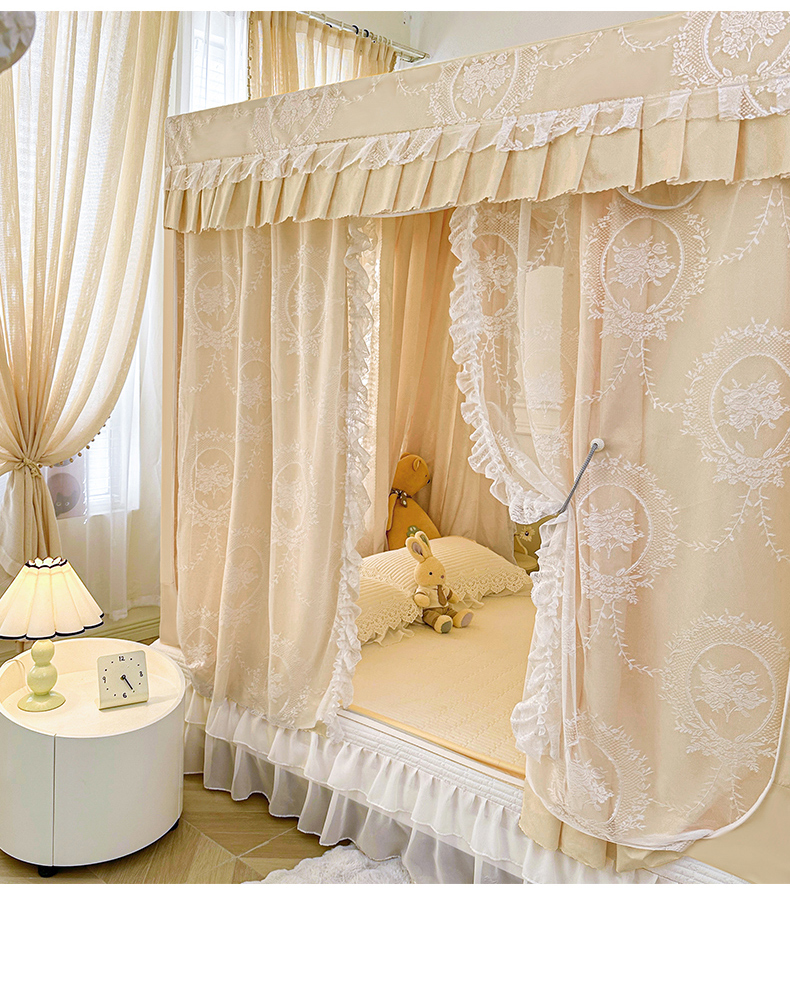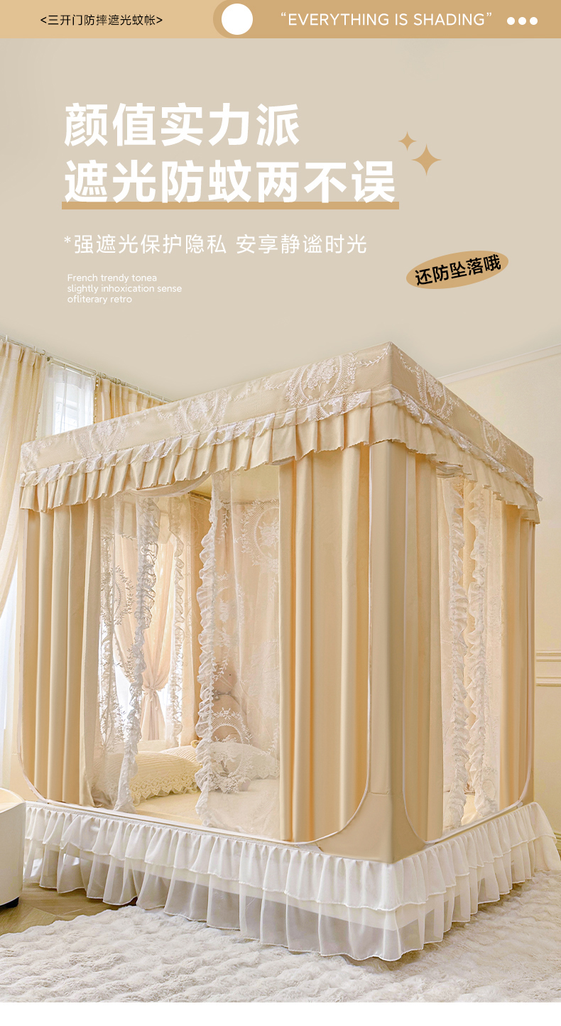 (总)都市缘蚊帐 2025新款法式浪漫导轨双层纱蕾丝提花蚊帐305,玫瑰庄园奶油白,玫瑰庄园奶油杏,玫瑰庄园奶油玉,薇尔庄园奶油杏,薇尔庄园奶油玉