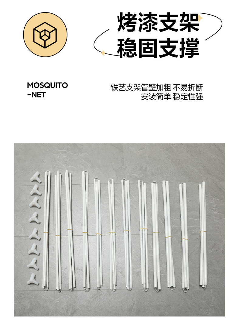 150*200蚊帐+布帘+白色纱帘+自连接支架