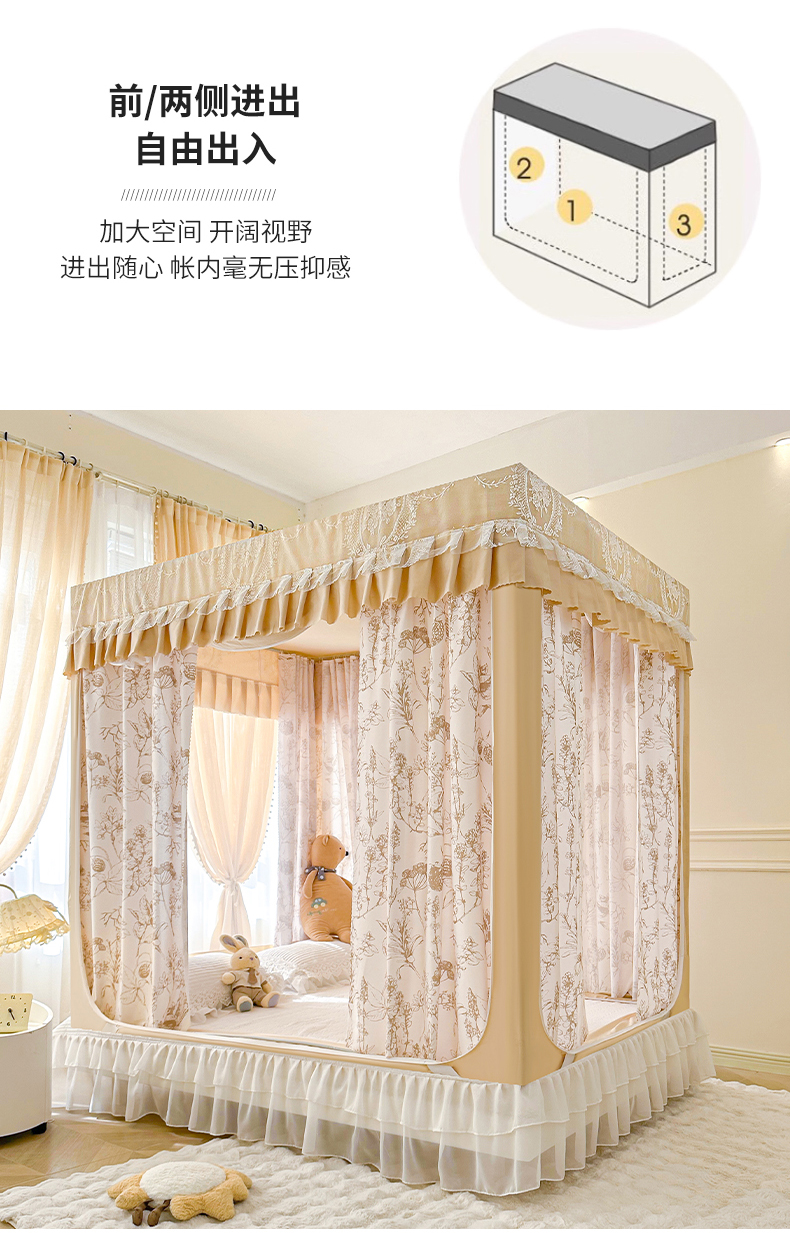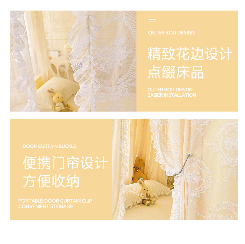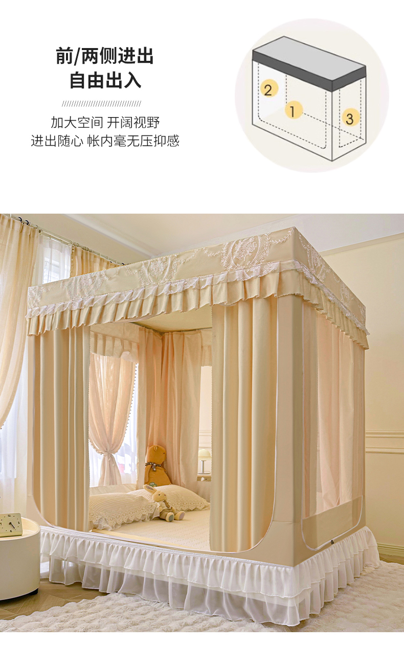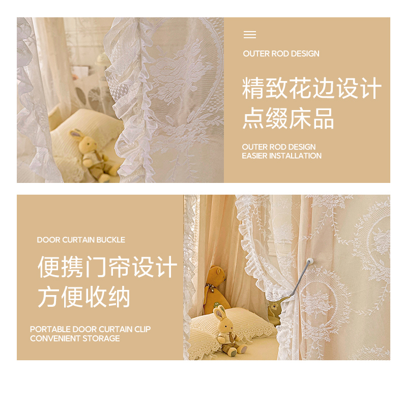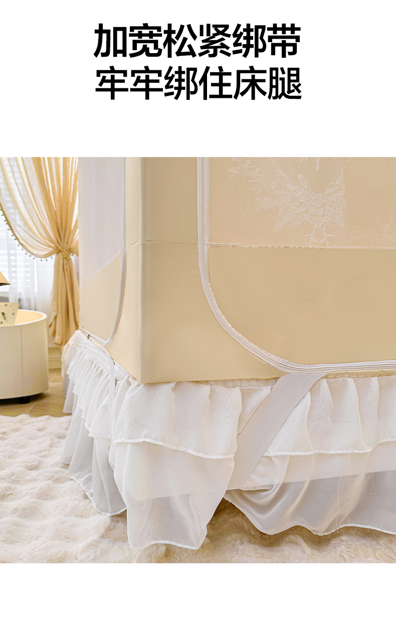 (总)2025新款浪漫落地蕾丝花边蚊帐905提花系带系列,905玫瑰庄园-奶油白,905玫瑰庄园-奶油杏,905玫瑰庄园-奶油玉