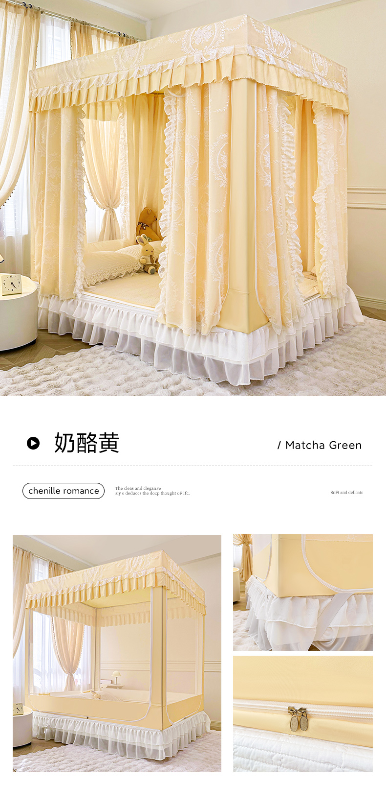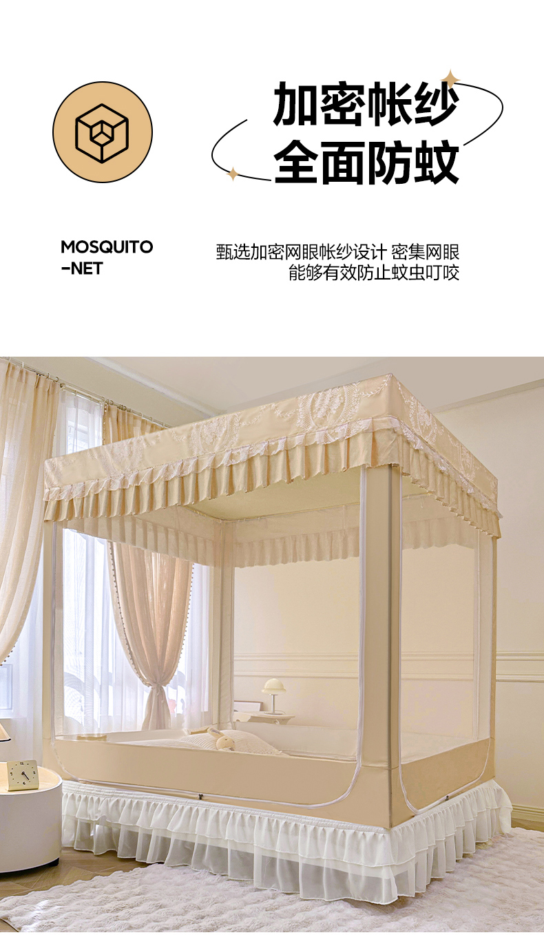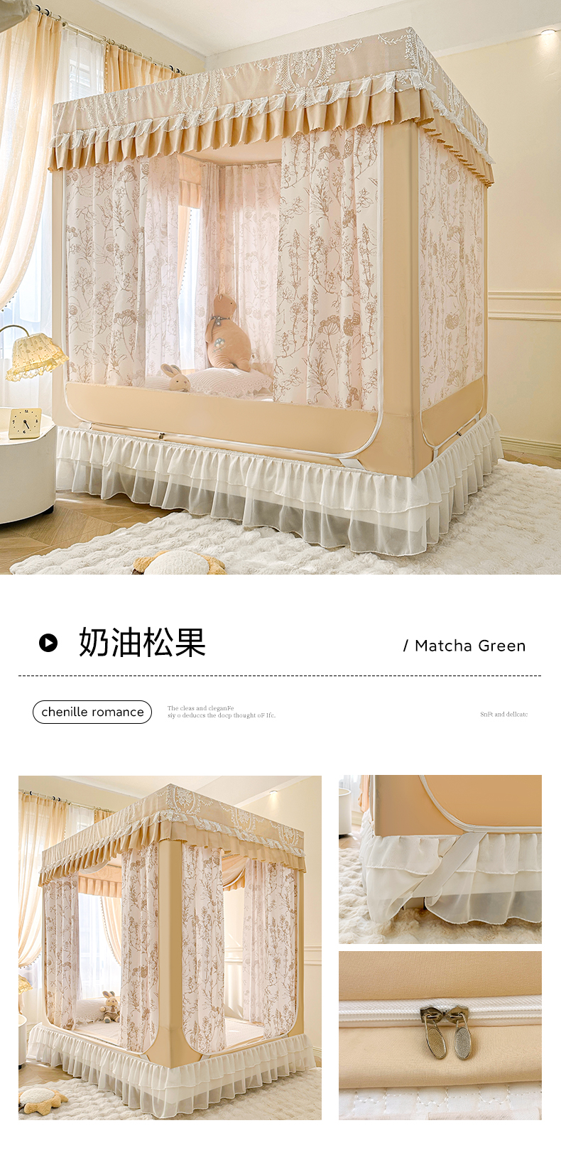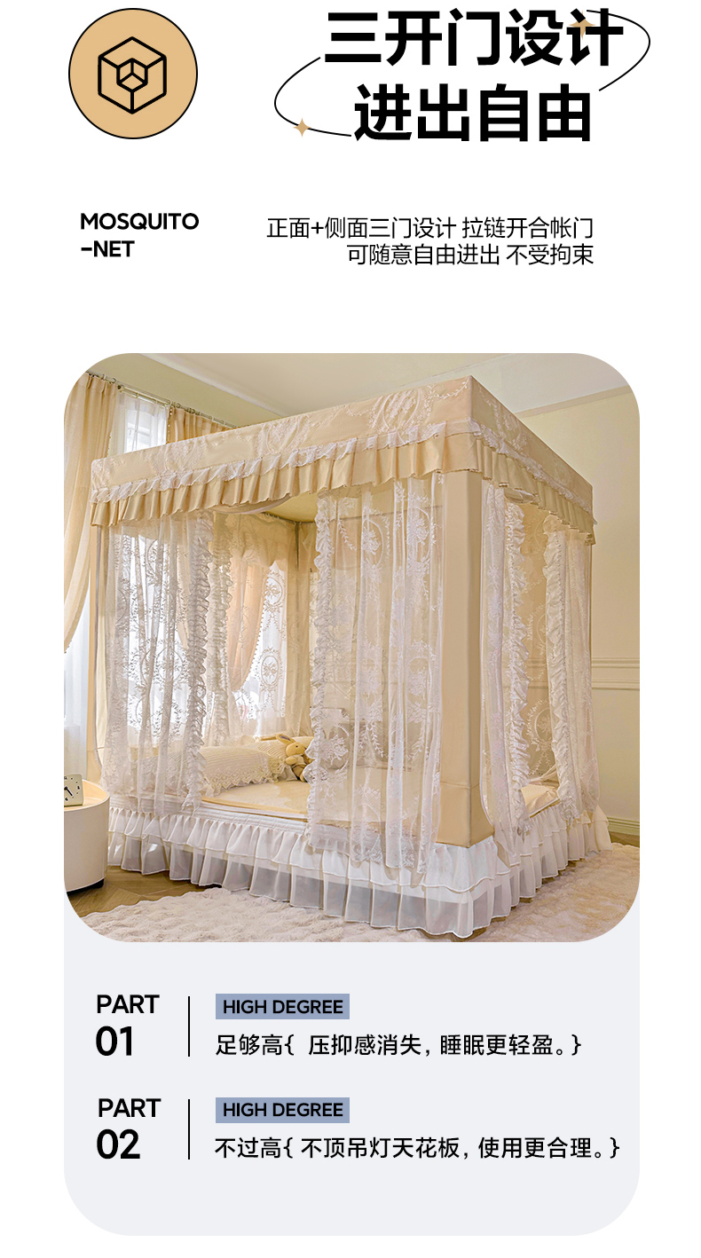 (总)2025新款浪漫落地蕾丝花边蚊帐905提花系带系列,905玫瑰庄园-奶油白,905玫瑰庄园-奶油杏,905玫瑰庄园-奶油玉