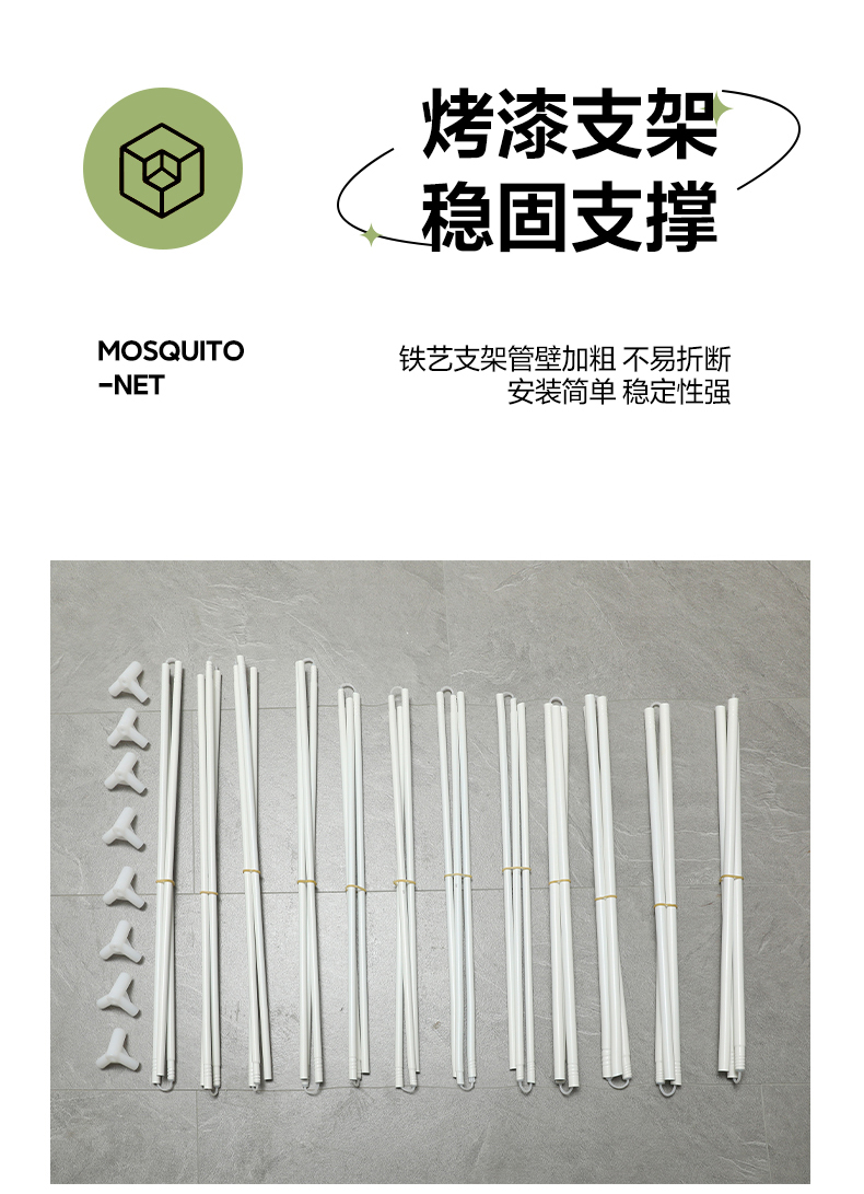180*200蚊帐+布帘+白色纱帘+自连接支架