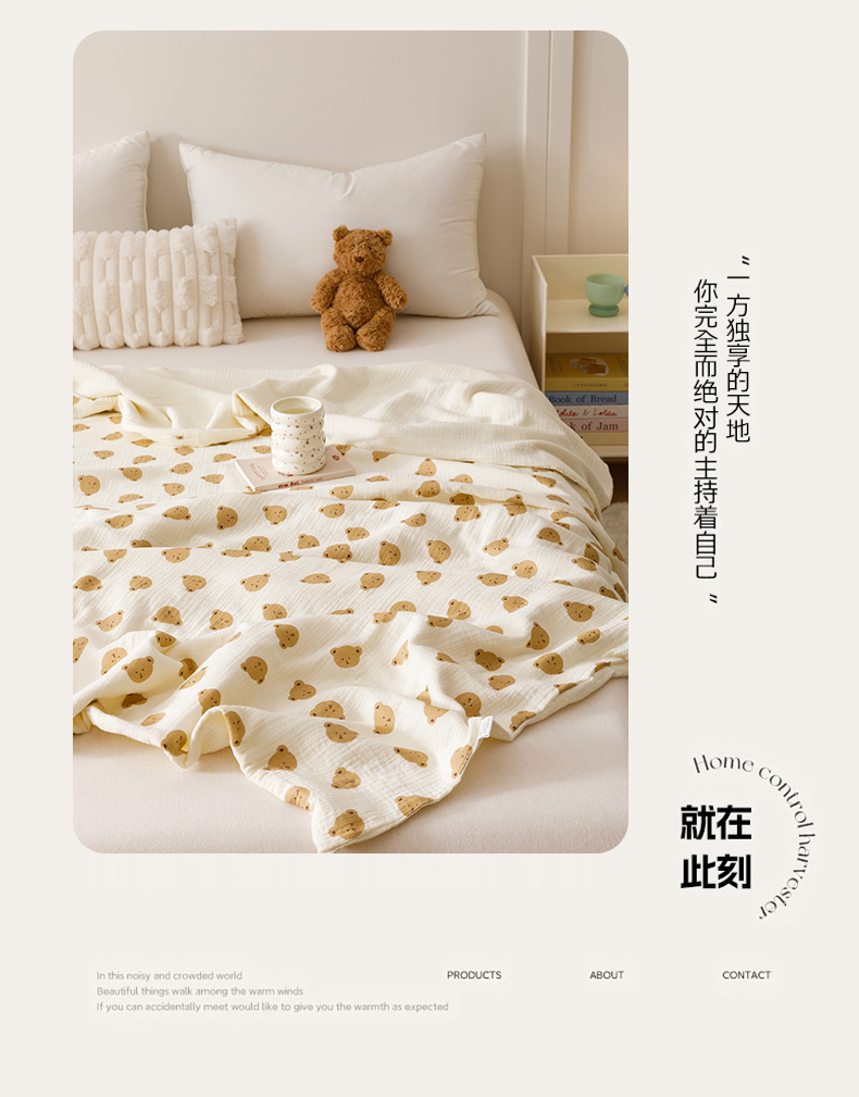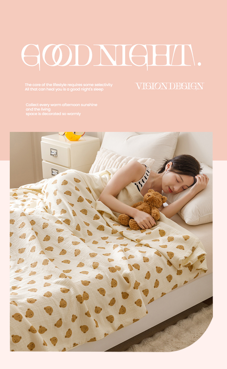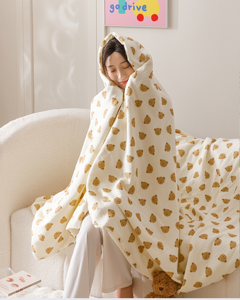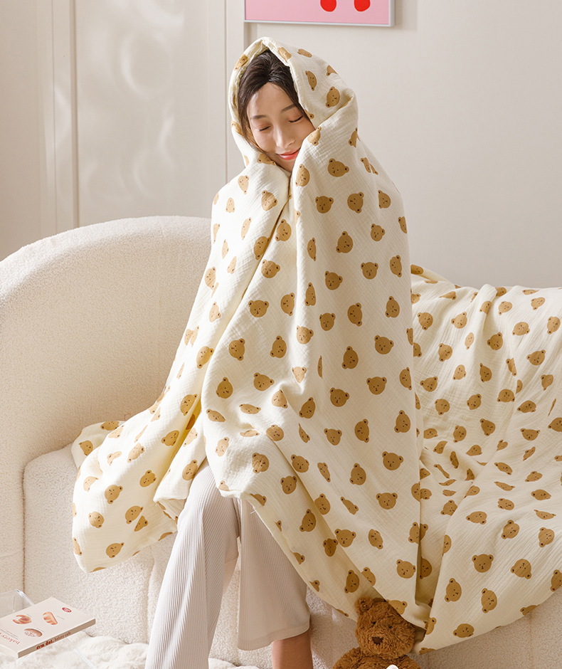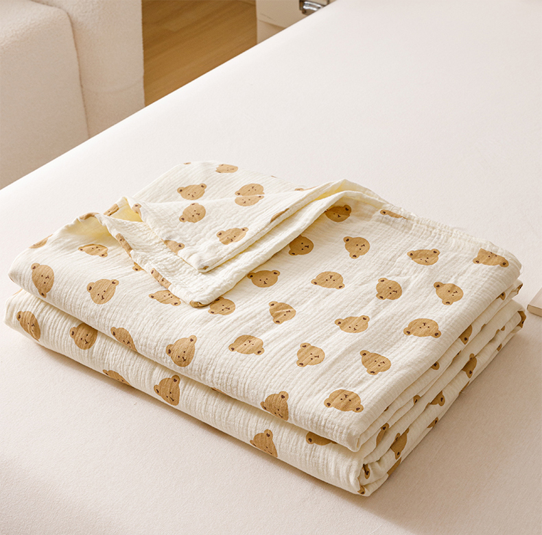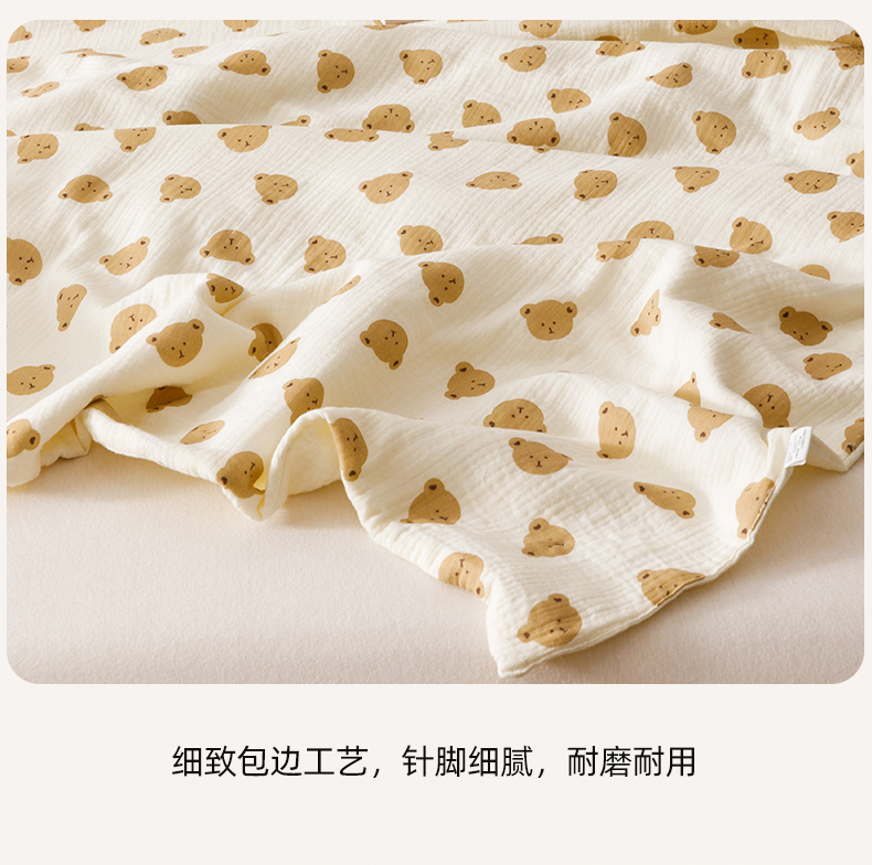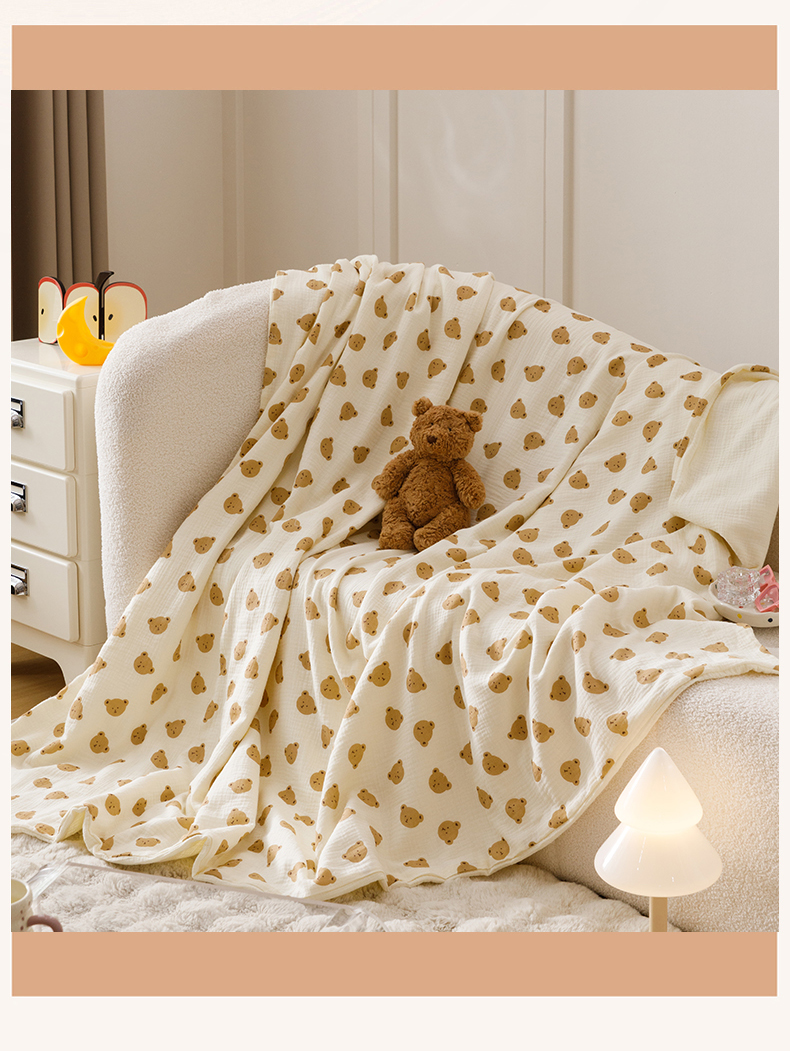 商品名称:悦然毛巾被 2025新款全棉六层纱布夏被成人款 蜜咖小熊