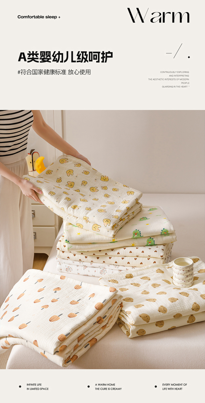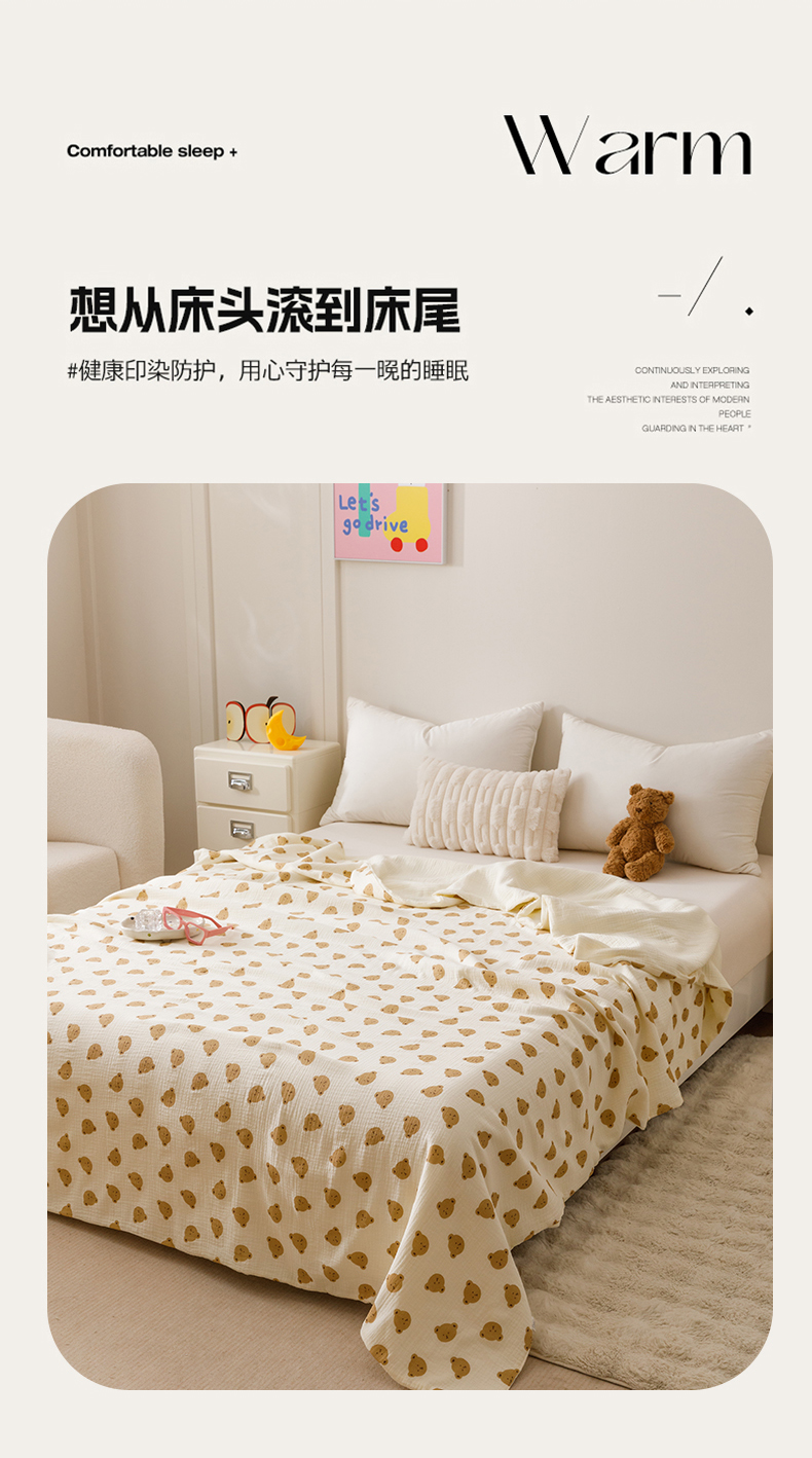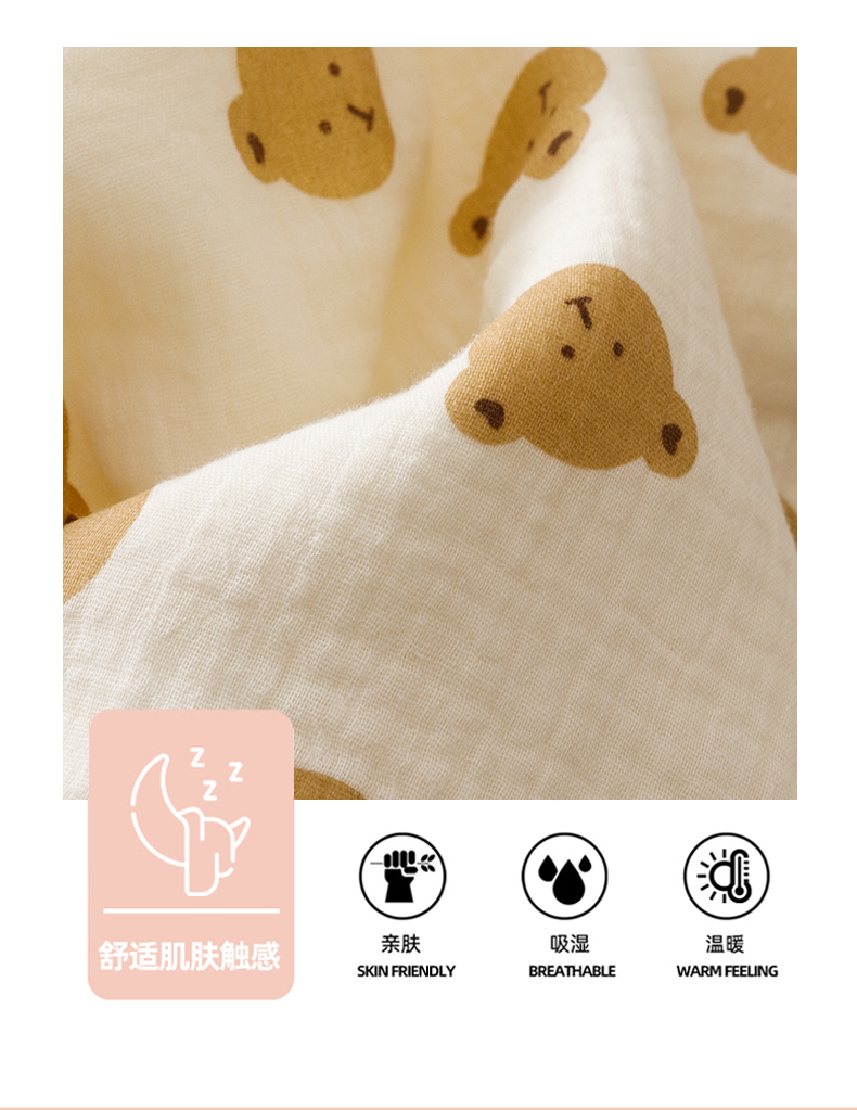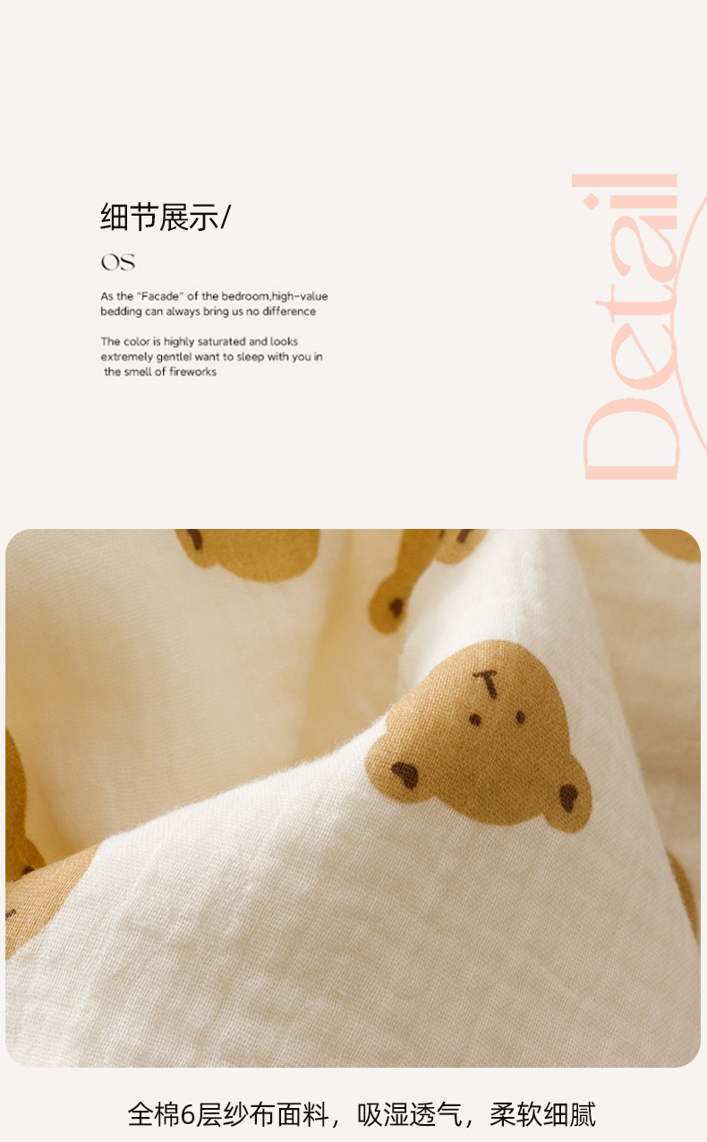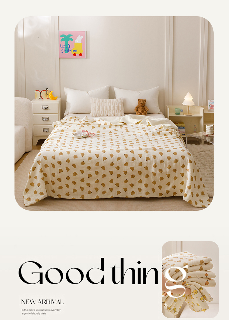 商品名称:悦然毛巾被 2025新款全棉六层纱布夏被成人款 蜜咖小熊