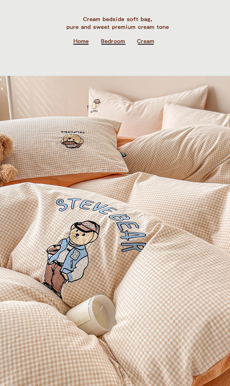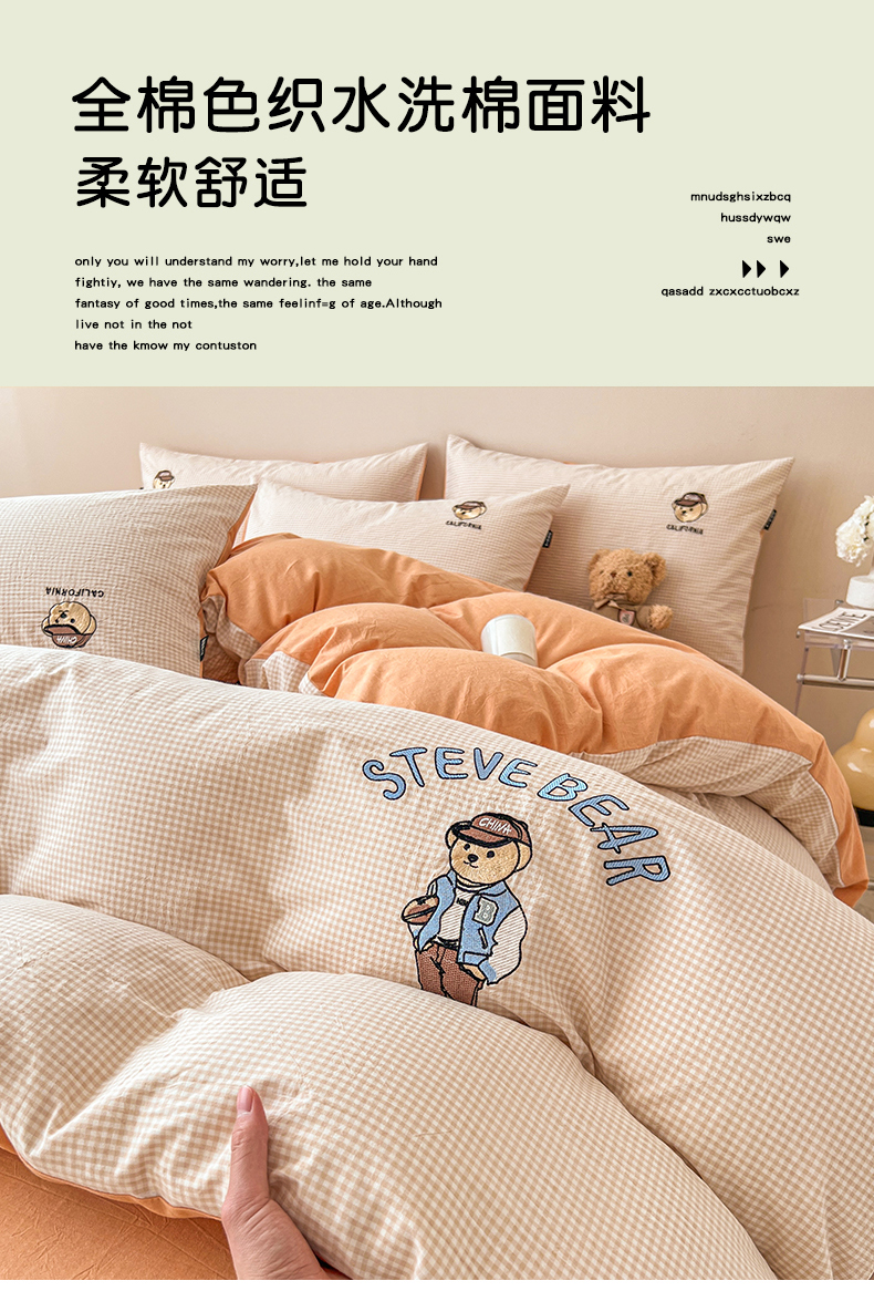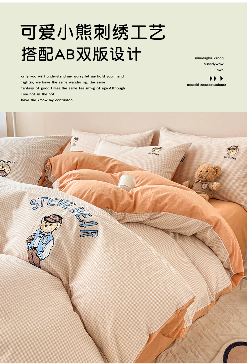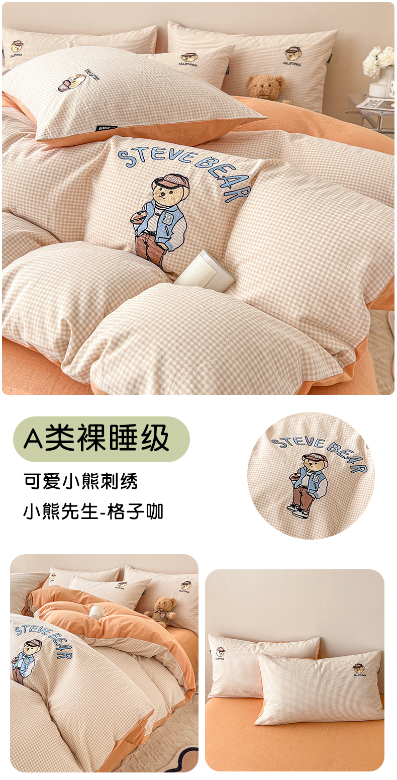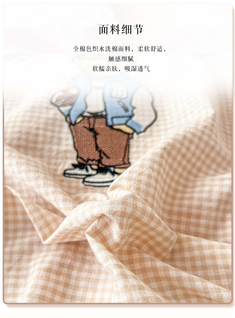 当前位置: 91家纺网 > 商品网购 > 床品套件 > 四件套 > 水洗棉四件套 > 2025新款A类全棉色织水洗棉可爱小熊刺绣四件套 小熊先生-格子咖