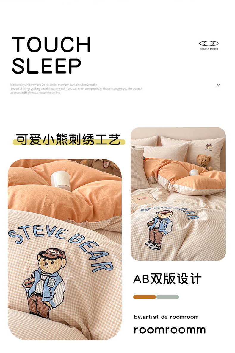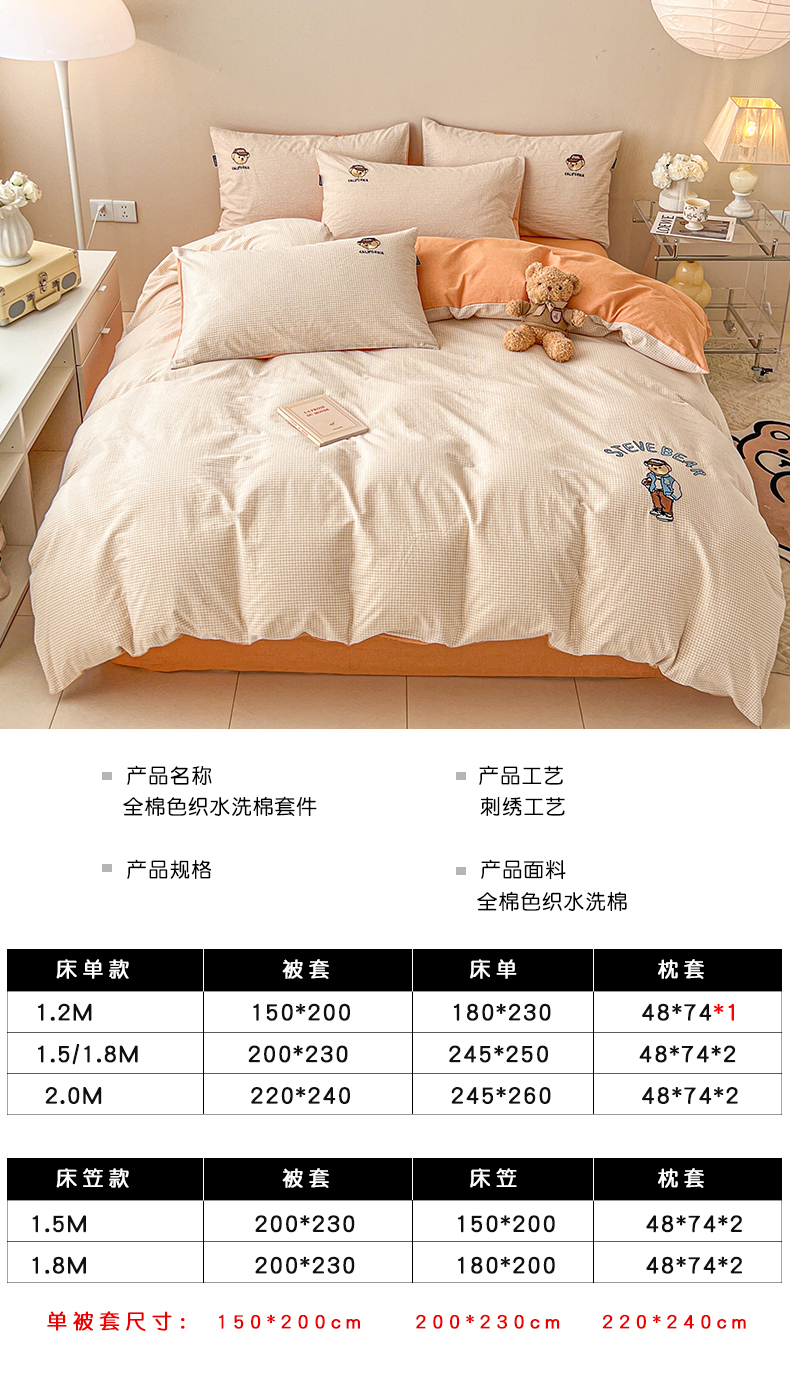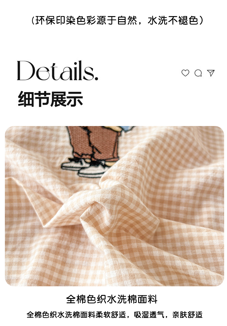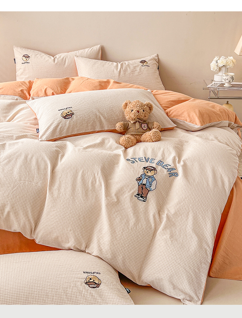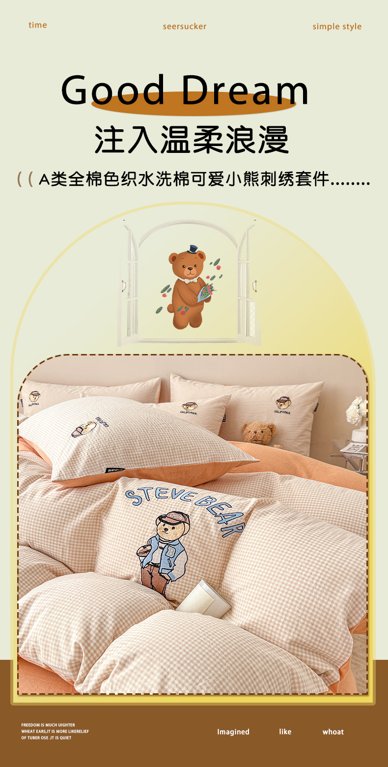当前位置: 91家纺网 > 商品网购 > 床品套件 > 四件套 > 水洗棉四件套 > 2025新款A类全棉色织水洗棉可爱小熊刺绣四件套 小熊先生-格子咖