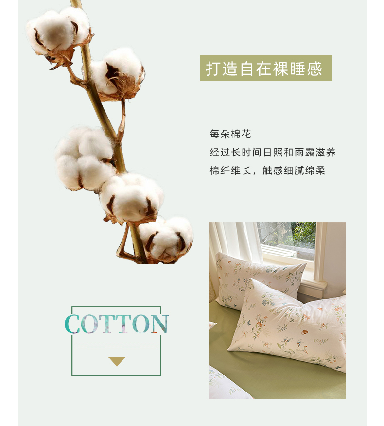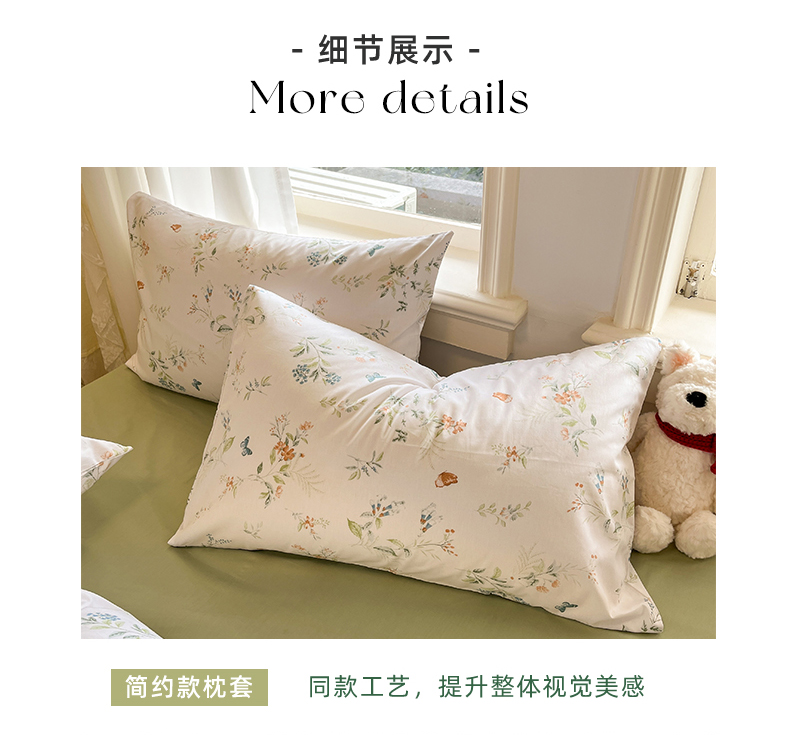 商品名称:捌月 2025新款13372喷气全棉四件套-花园里系列 青木