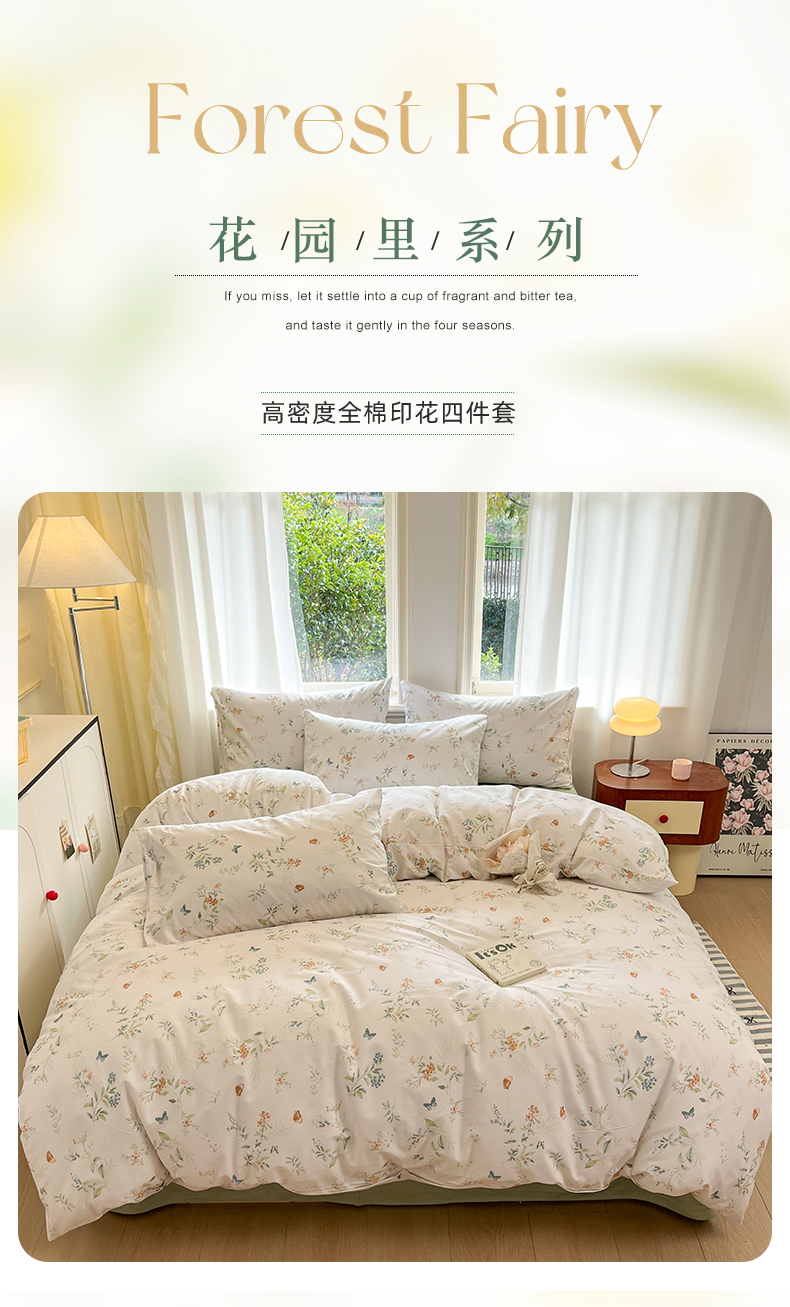 (总)捌月 2025新款13372全棉四件套花园里系列小清新全棉四件套热卖新品,艾美,蓝风铃,蓝汐,流年,魅影,木兰,年华,浅浅,青花瓷,青木,轻颜,韶华,思绪,汐月