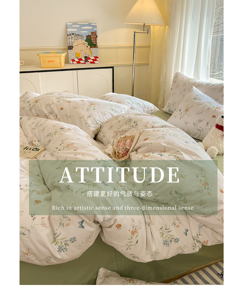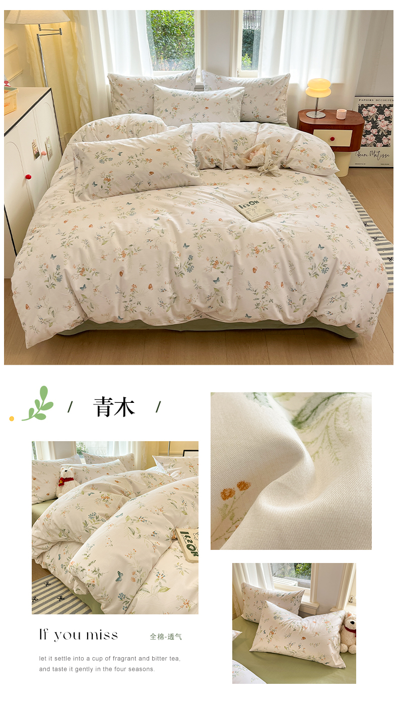 捌月 2025新款13372喷气全棉四件套-花园里系列 青木