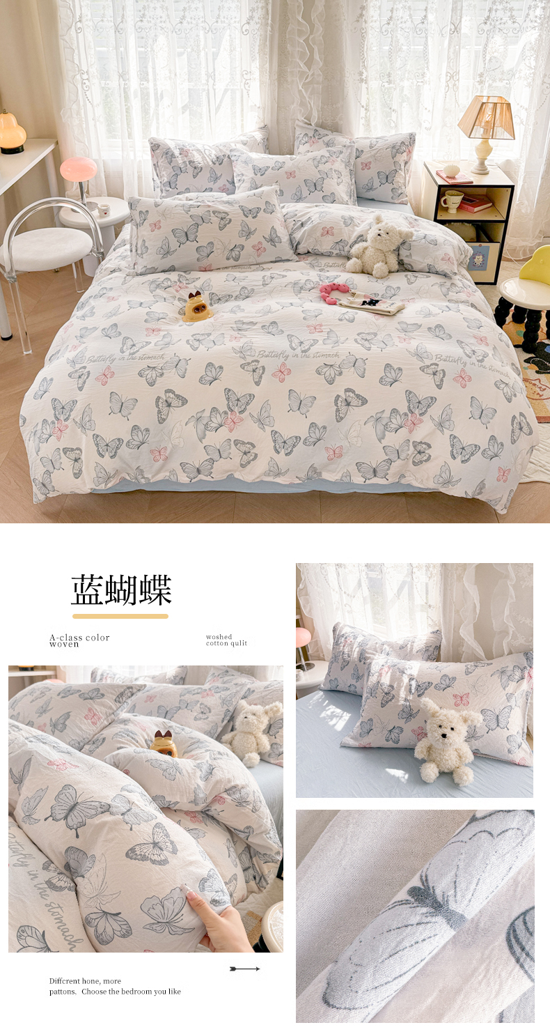 当前位置: 91家纺网 > 商品网购 > 床品套件 > 四件套 > 全棉普通四件套 > 花伞家居 2025新款水洗棉印花四件套蓝蝴蝶