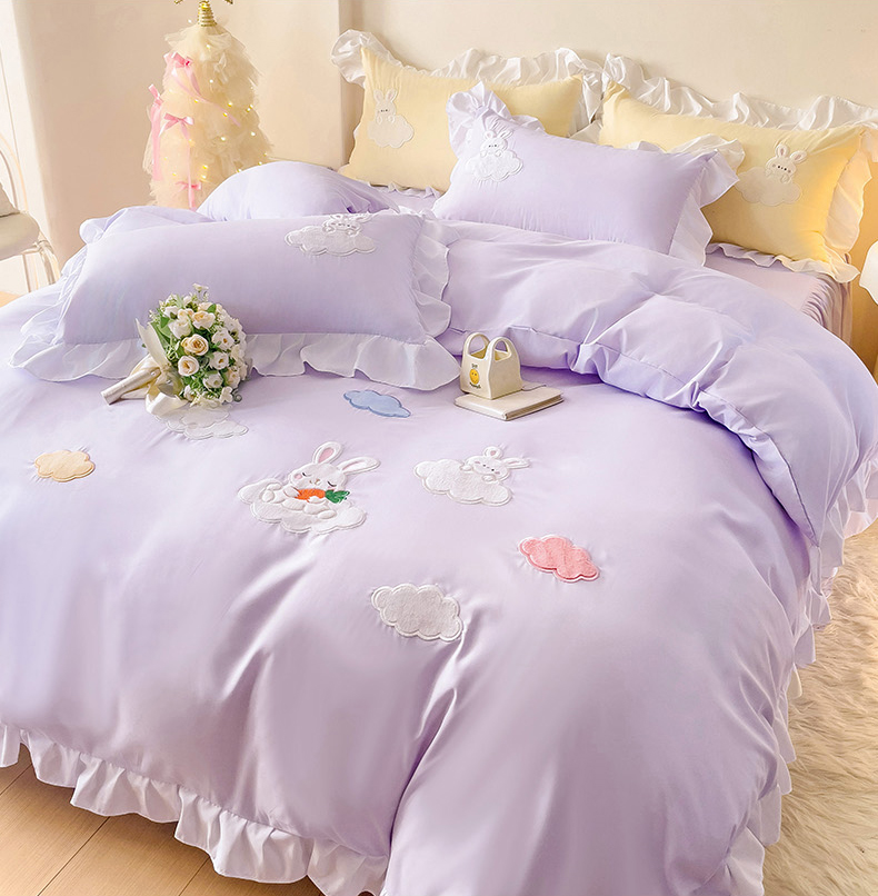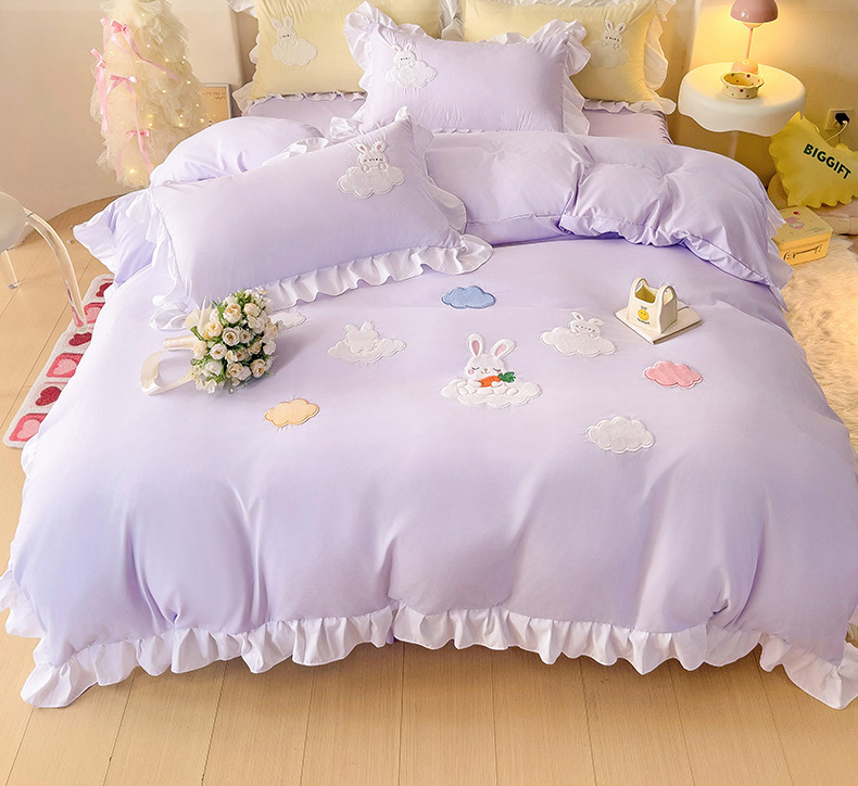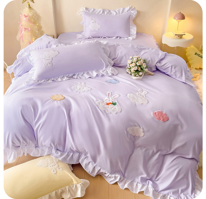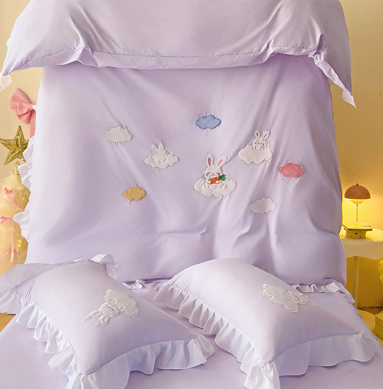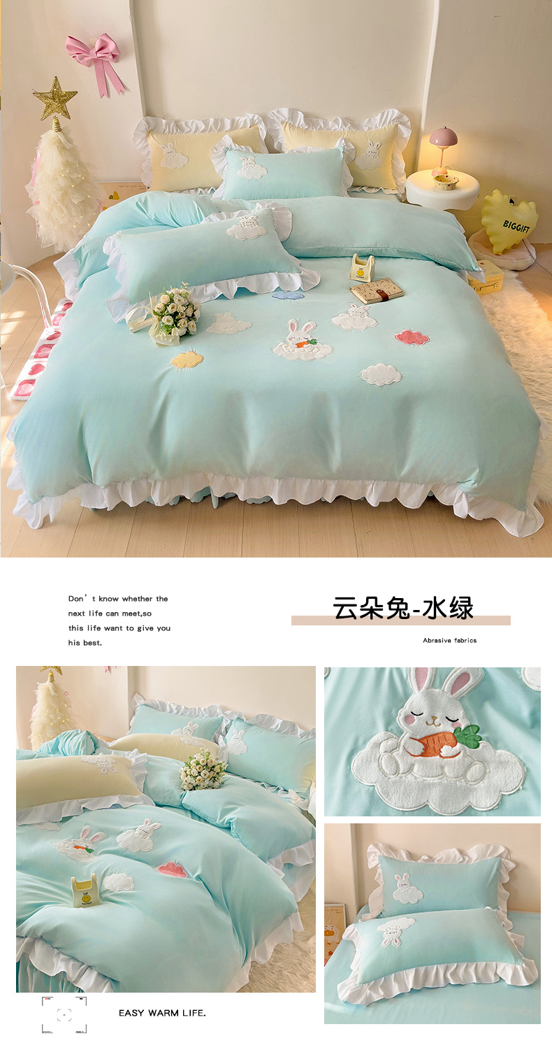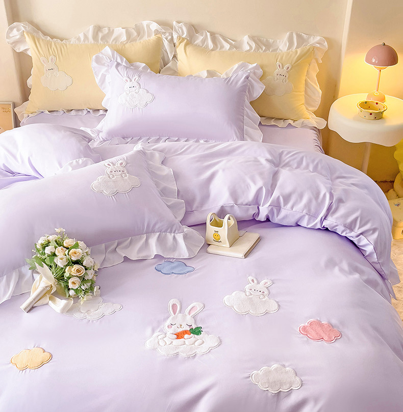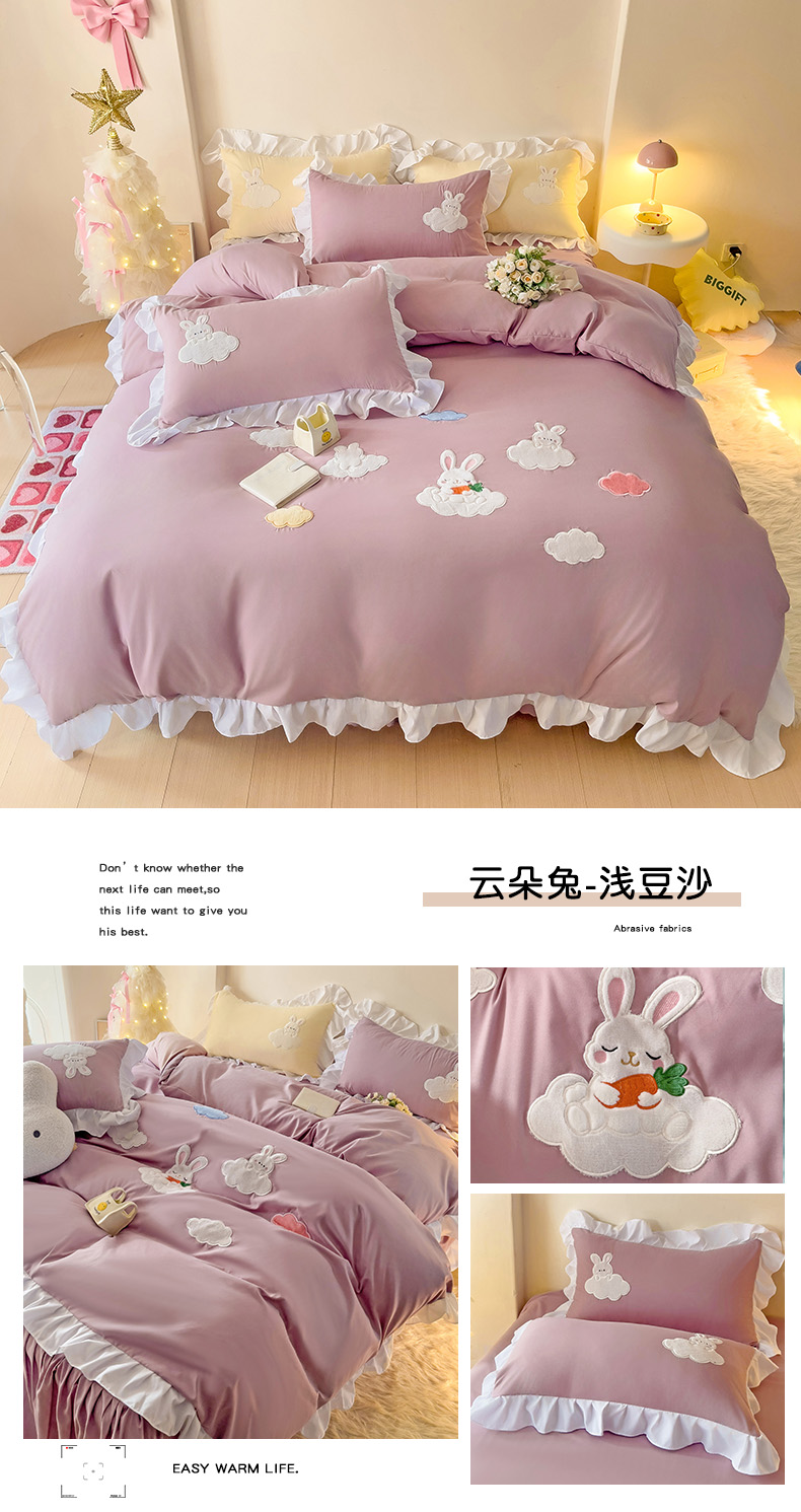 (总)慕语家纺 2025新款韩版水洗磨毛棉卡通贴布绣四件套-云朵兔