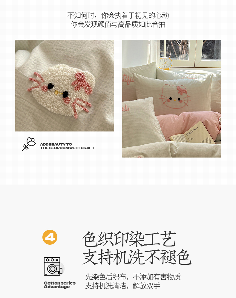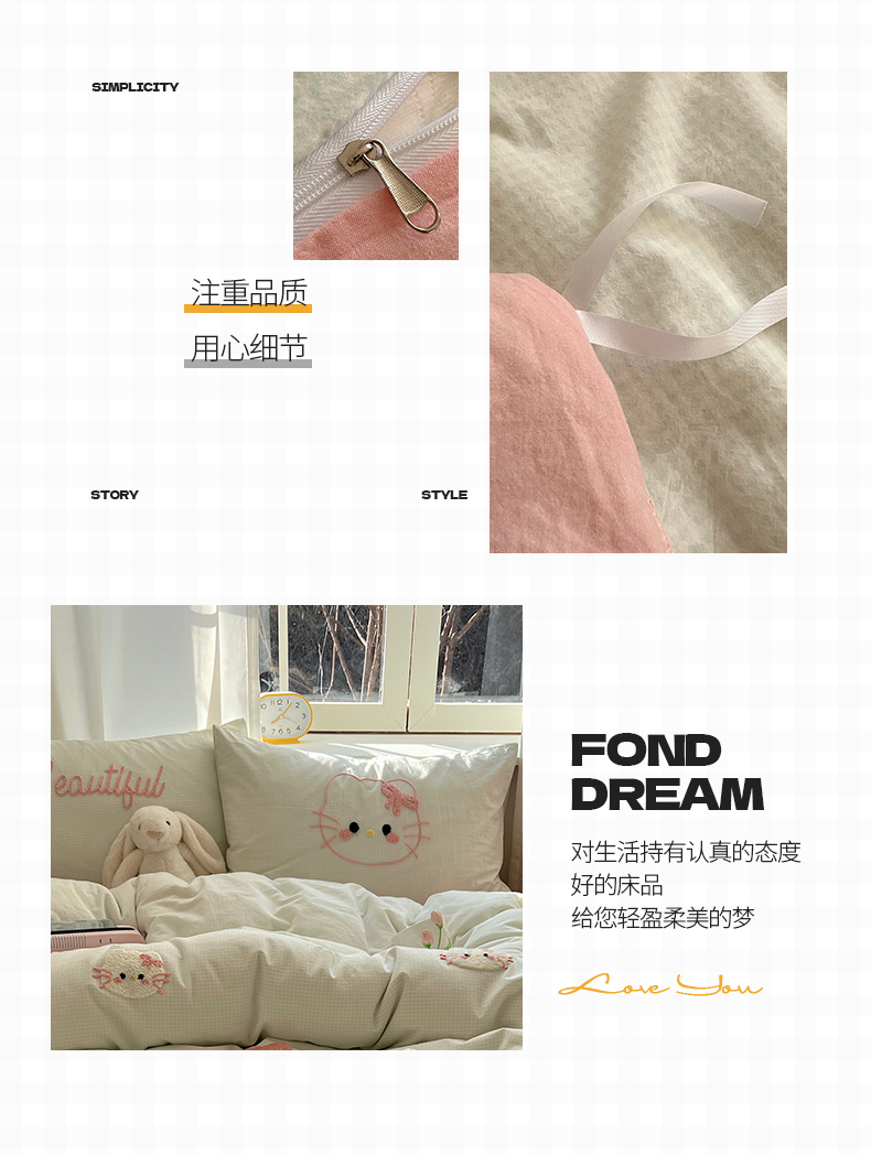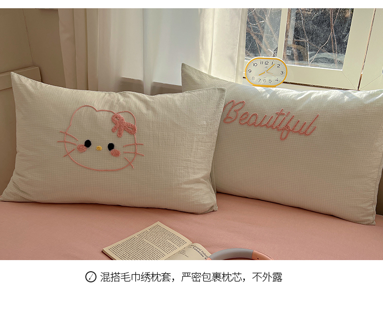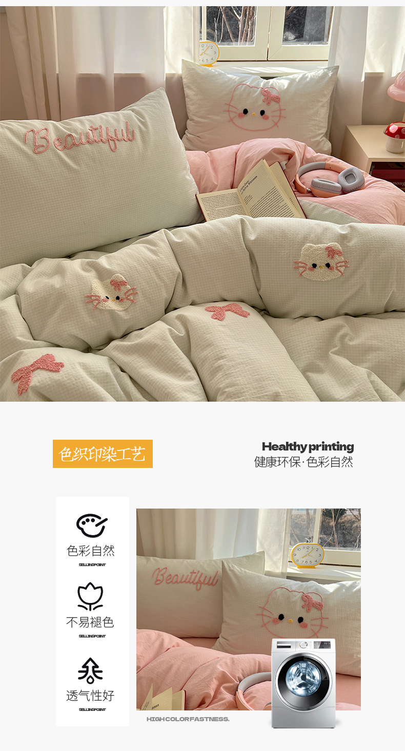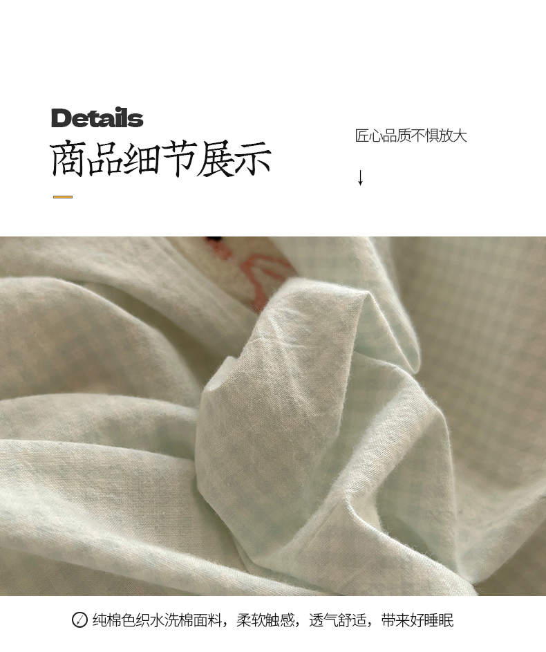 当前位置: 91家纺网 > 商品网购 > 床品套件 > 四件套 > 水洗棉四件套 > 桃子家居 2025新款A类ins纯棉色织水洗棉毛巾绣奶油少女猫咪兔兔混搭系列四件套 色织水洗棉-猫咪绿粉