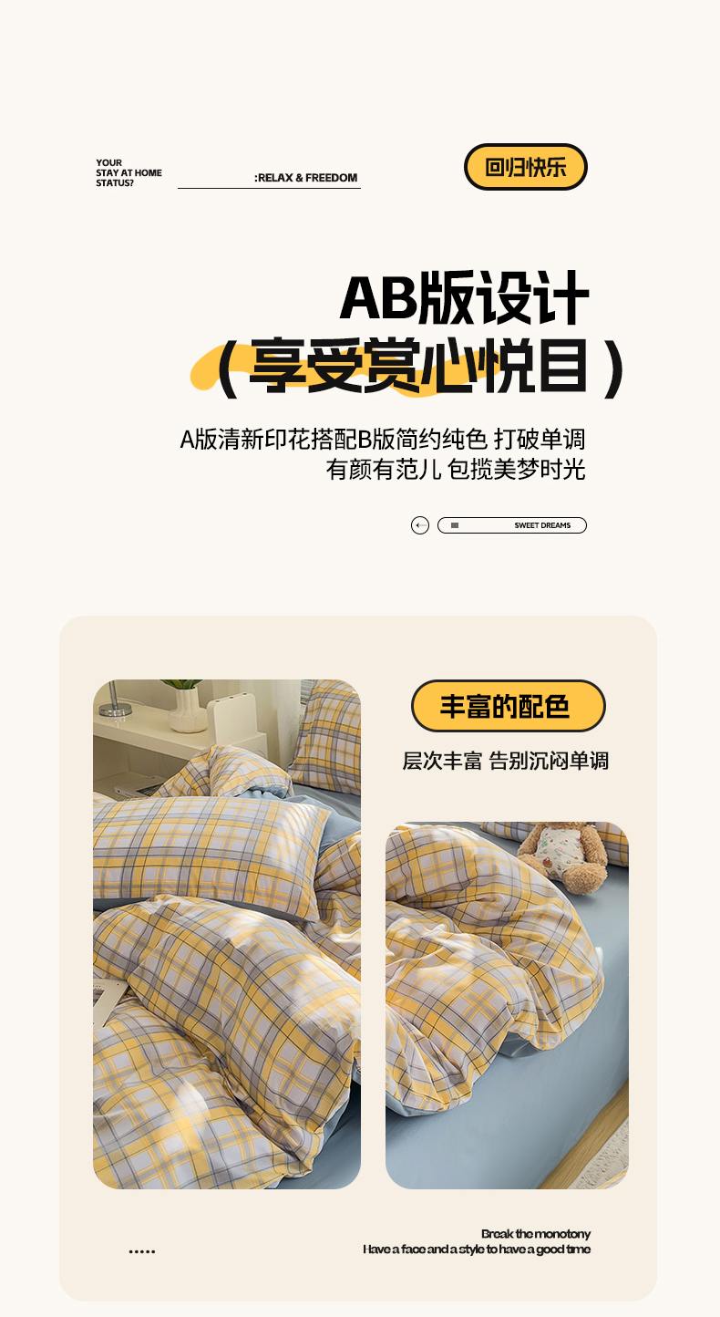 (总)雅阁尔家纺 2022新款活性芦荟棉四件套,比心,筚路蓝缕,潮牌,吃货,地鼠,格调灰,格悦-深灰,花心萝卜,火龙果,加冕,简单爱,鲸鱼,快乐兔,浪漫樱桃,浪漫之夜,流星物语,罗马假日,罗马空间,梦格,梦想十分,奶牛,时尚生活,贪吃熊,悉尼,笑脸,熊宝宝,旋转三角,烟云,夜枫,一鹿平安,印象-黄,元气熊