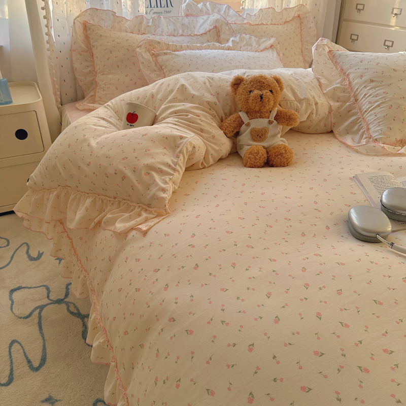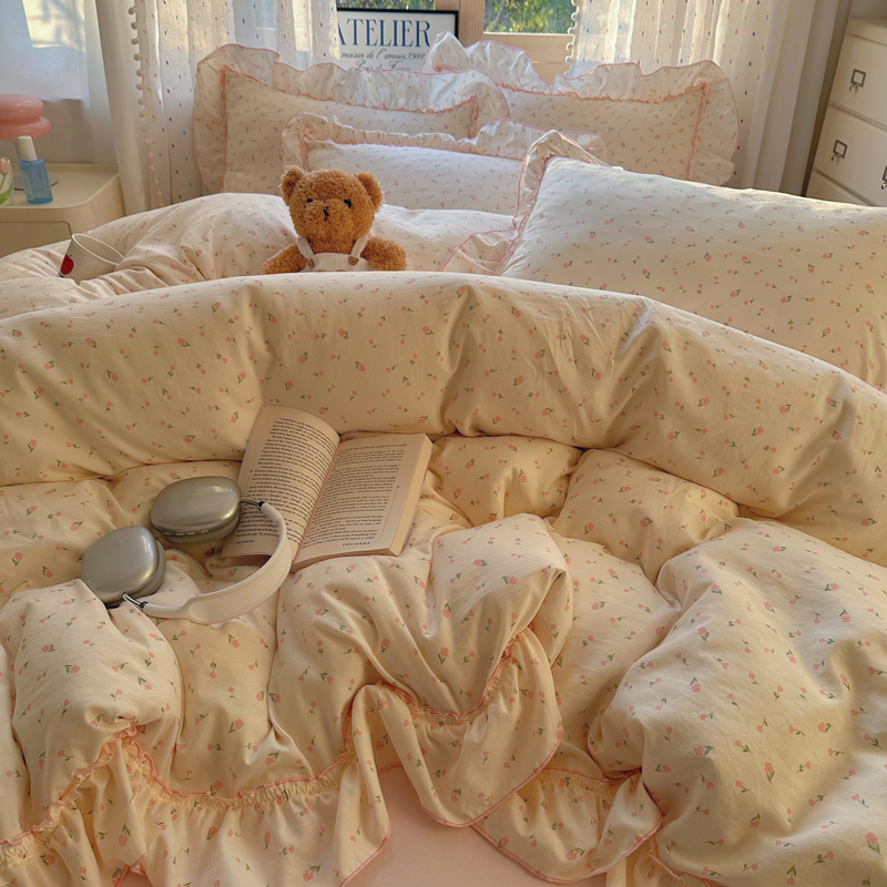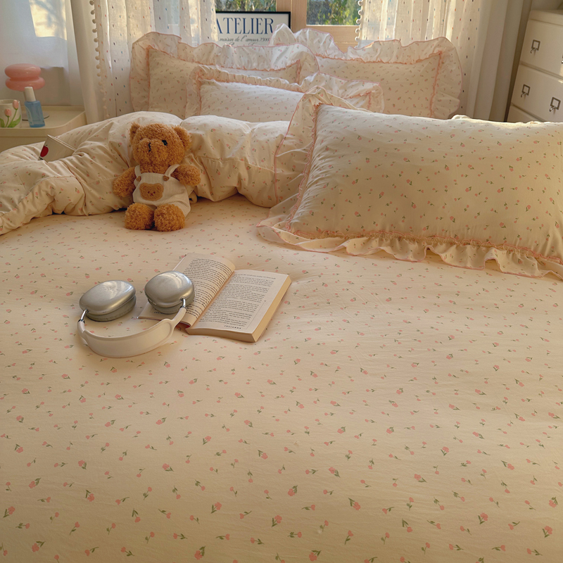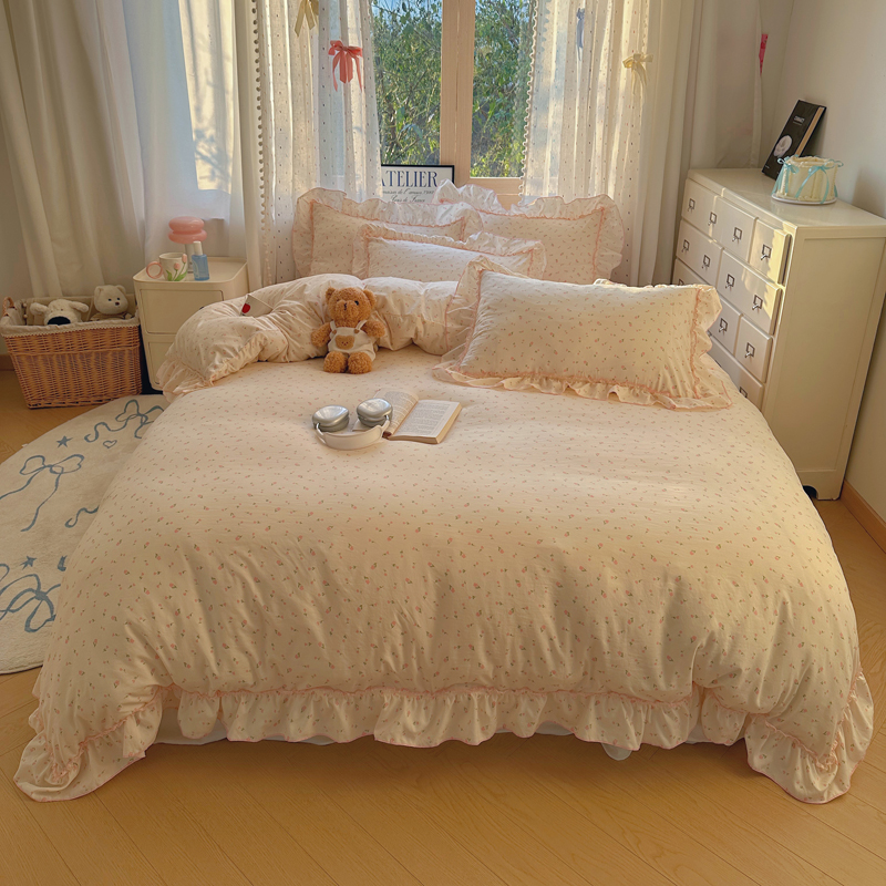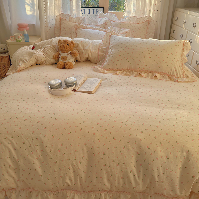 当前位置: 91家纺网 > 商品网购 > 床品套件 > 四件套 > 其它四件套 > 盼季家纺 2025新款公主风花边小清新水洗棉床上四件套床单被套床裙三件套-风格二 花满春