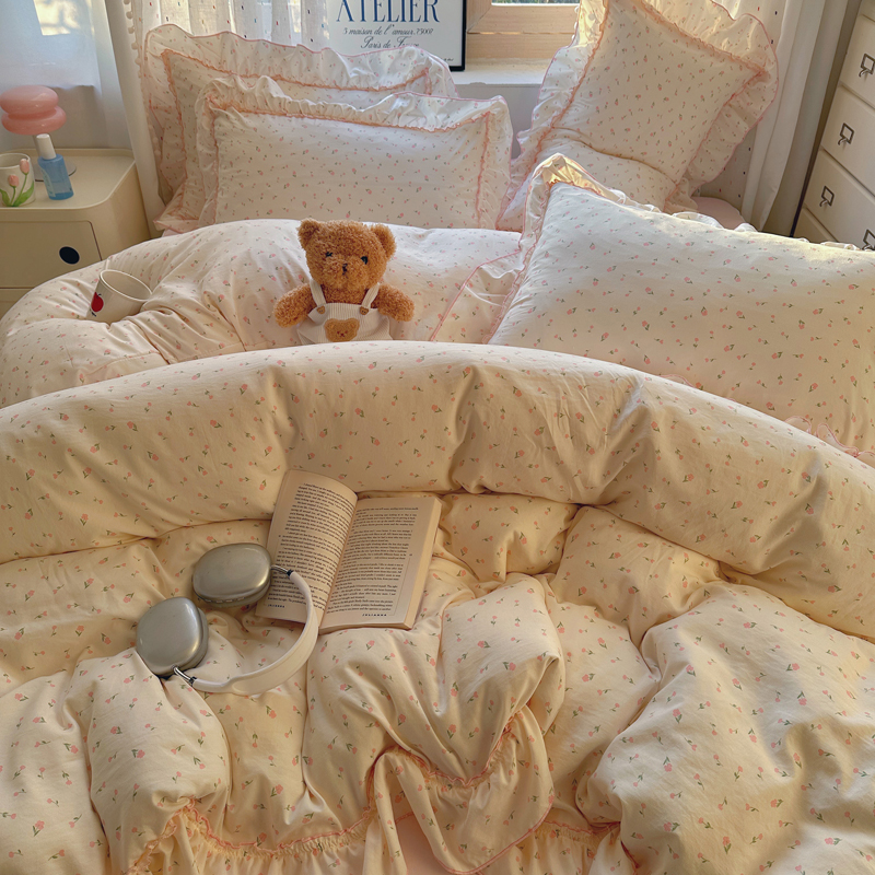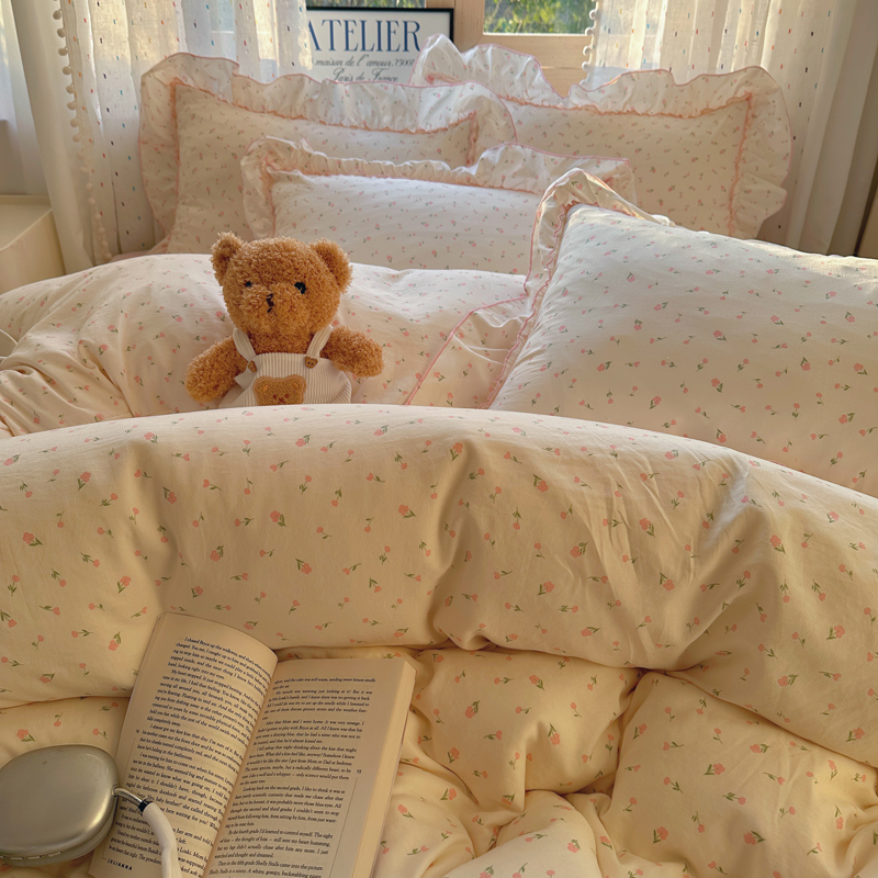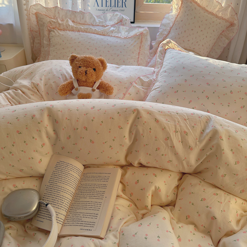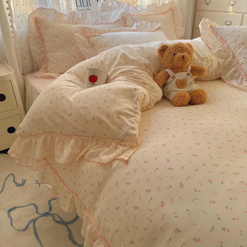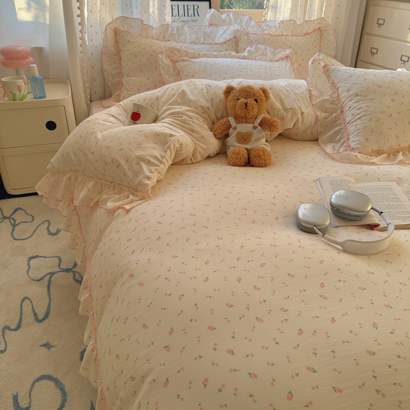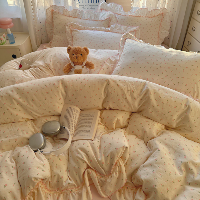 当前位置: 91家纺网 > 商品网购 > 床品套件 > 四件套 > 其它四件套 > 盼季家纺 2025新款公主风花边小清新水洗棉床上四件套床单被套床裙三件套-风格二 花满春