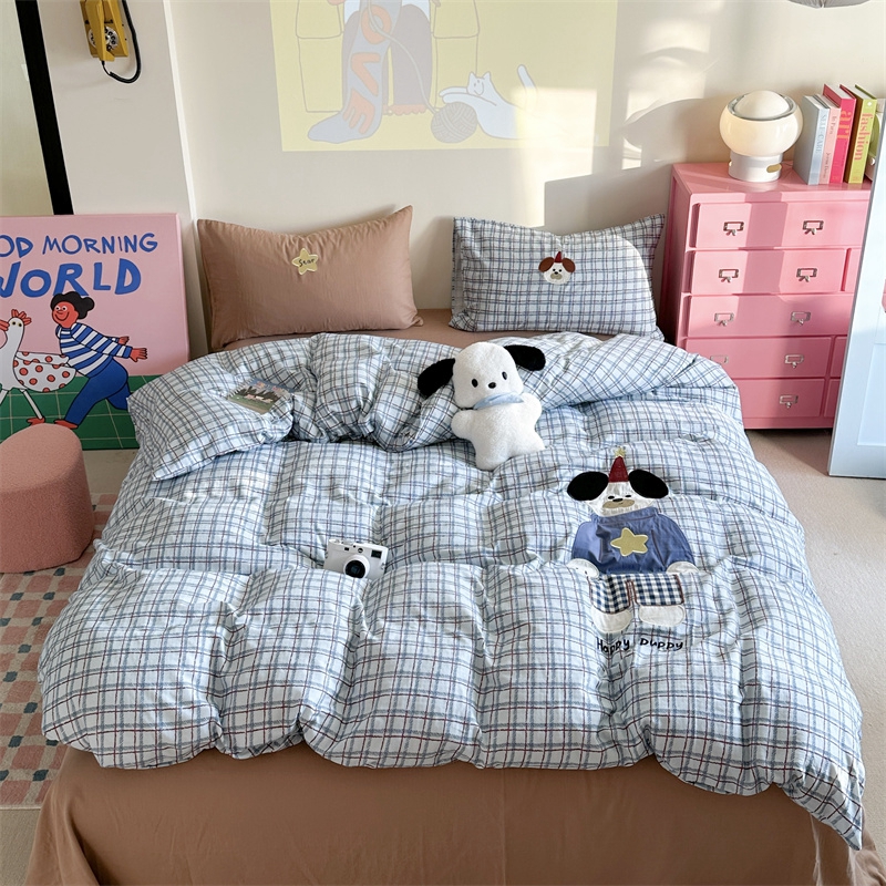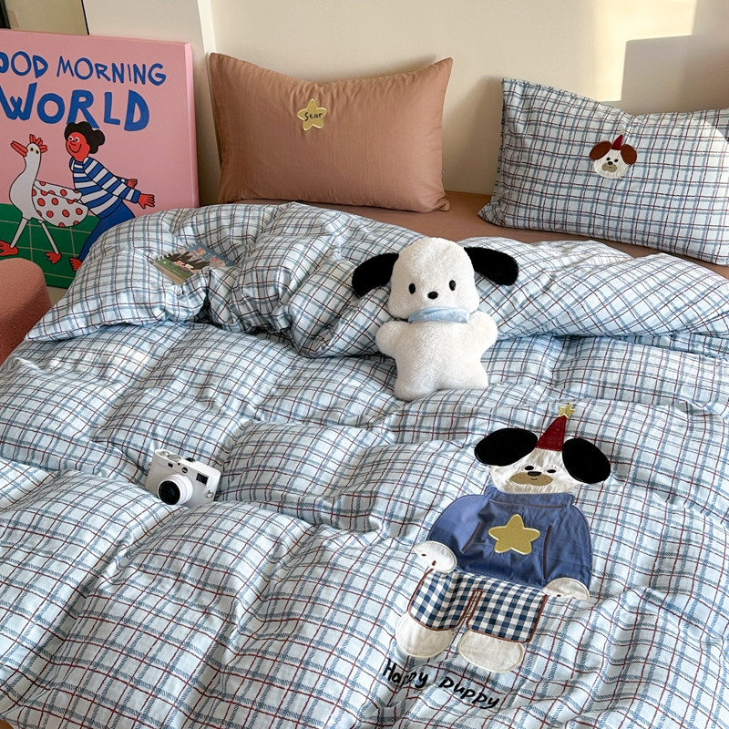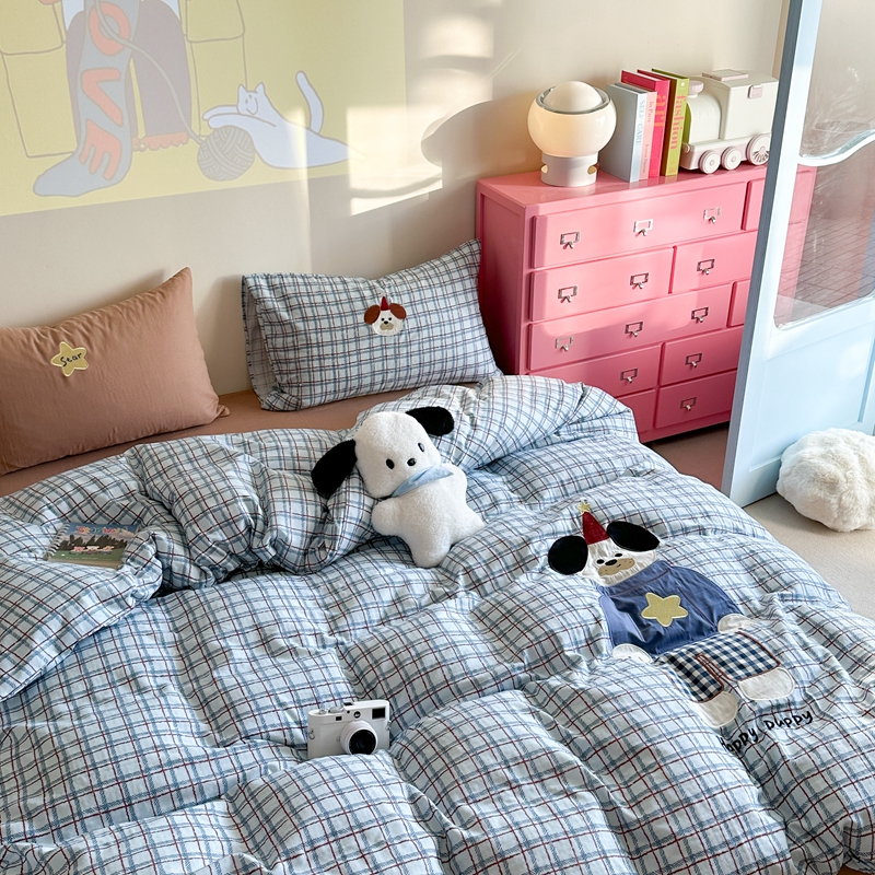 柚子YOUTH 2025新款全棉双层纱贴布绣四件套 格子玩偶