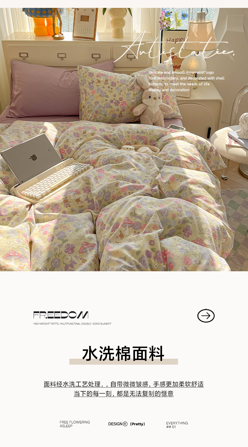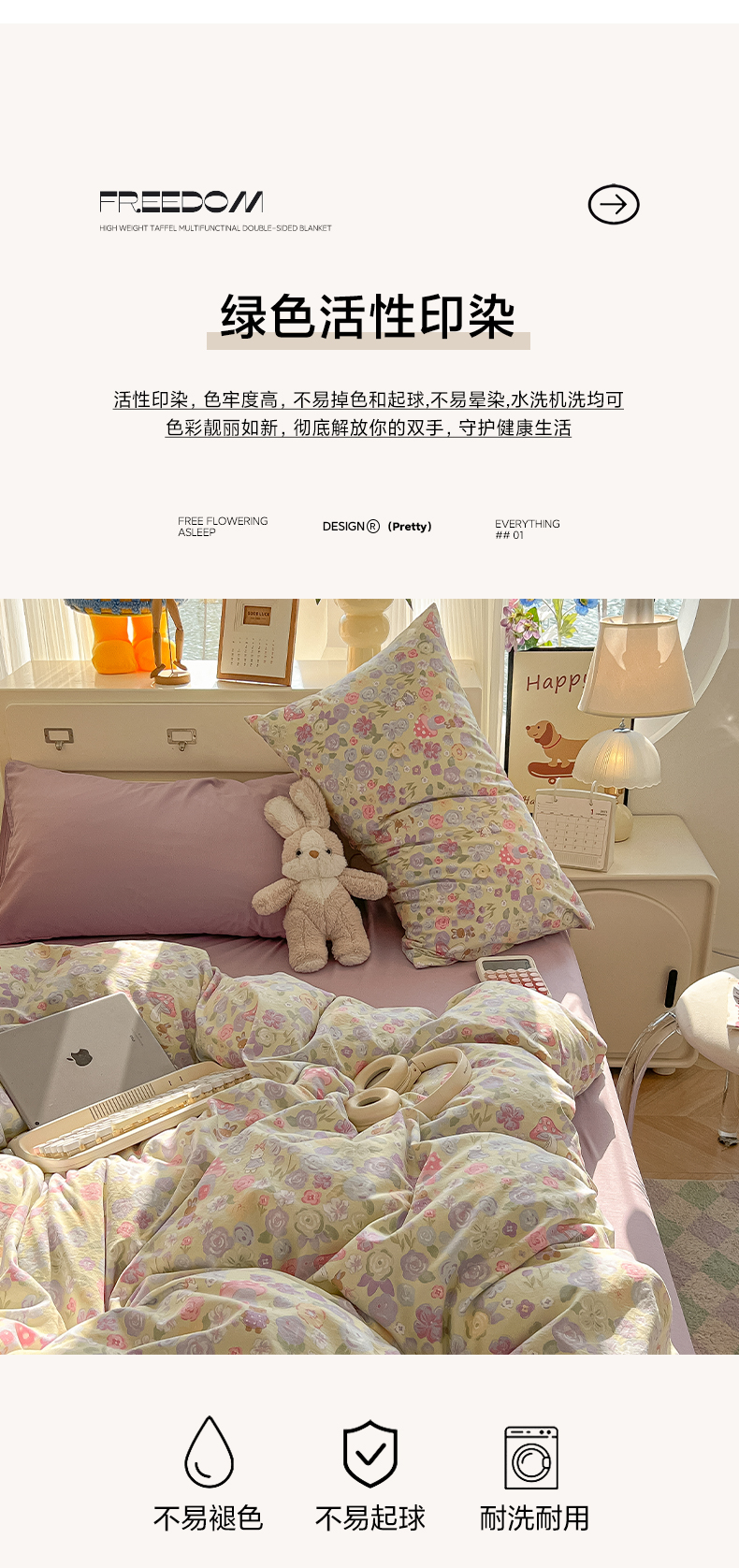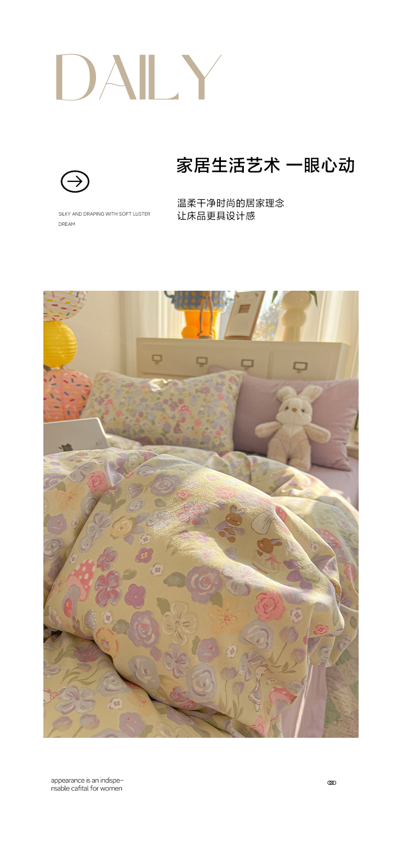 当前位置: 91家纺网 > 商品网购 > 床品套件 > 四件套 > 水洗棉四件套 > 韩巢家纺 2025新款超柔水洗棉印花被套床单床上用品四件套 兔漫画报