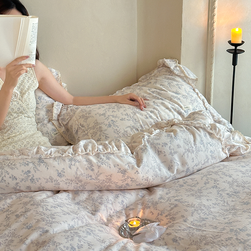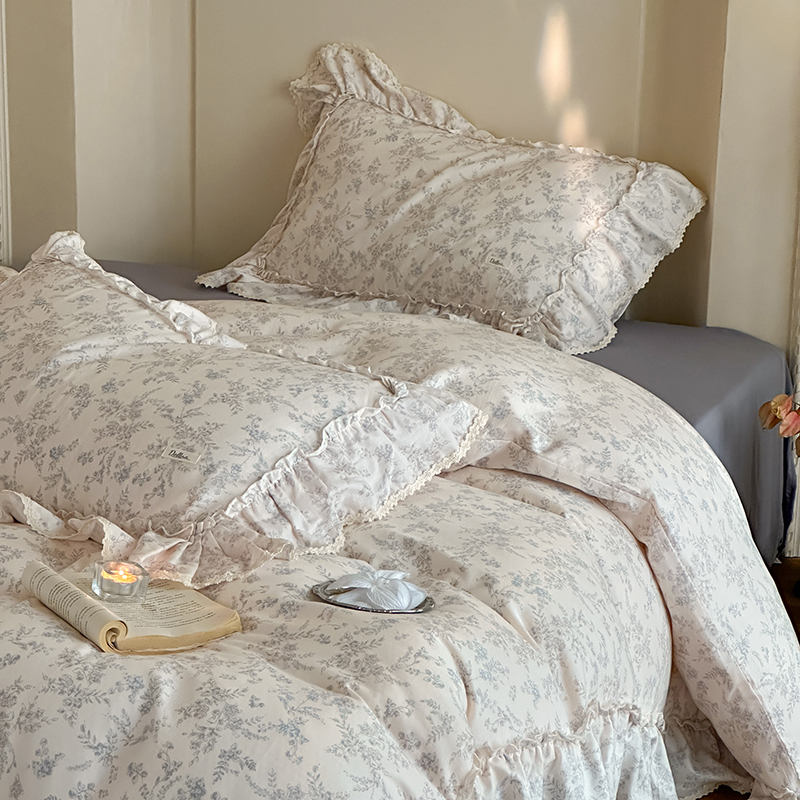 多乐娜 2025新款轻法式纯棉双层纱韩版印花花边四件套工艺款ykk拉链配收纳包 里斯本