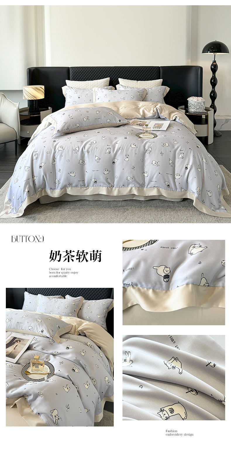商品名称:迷尚家居 2025新款100%莱赛尔数码印花四件套 奶茶软萌