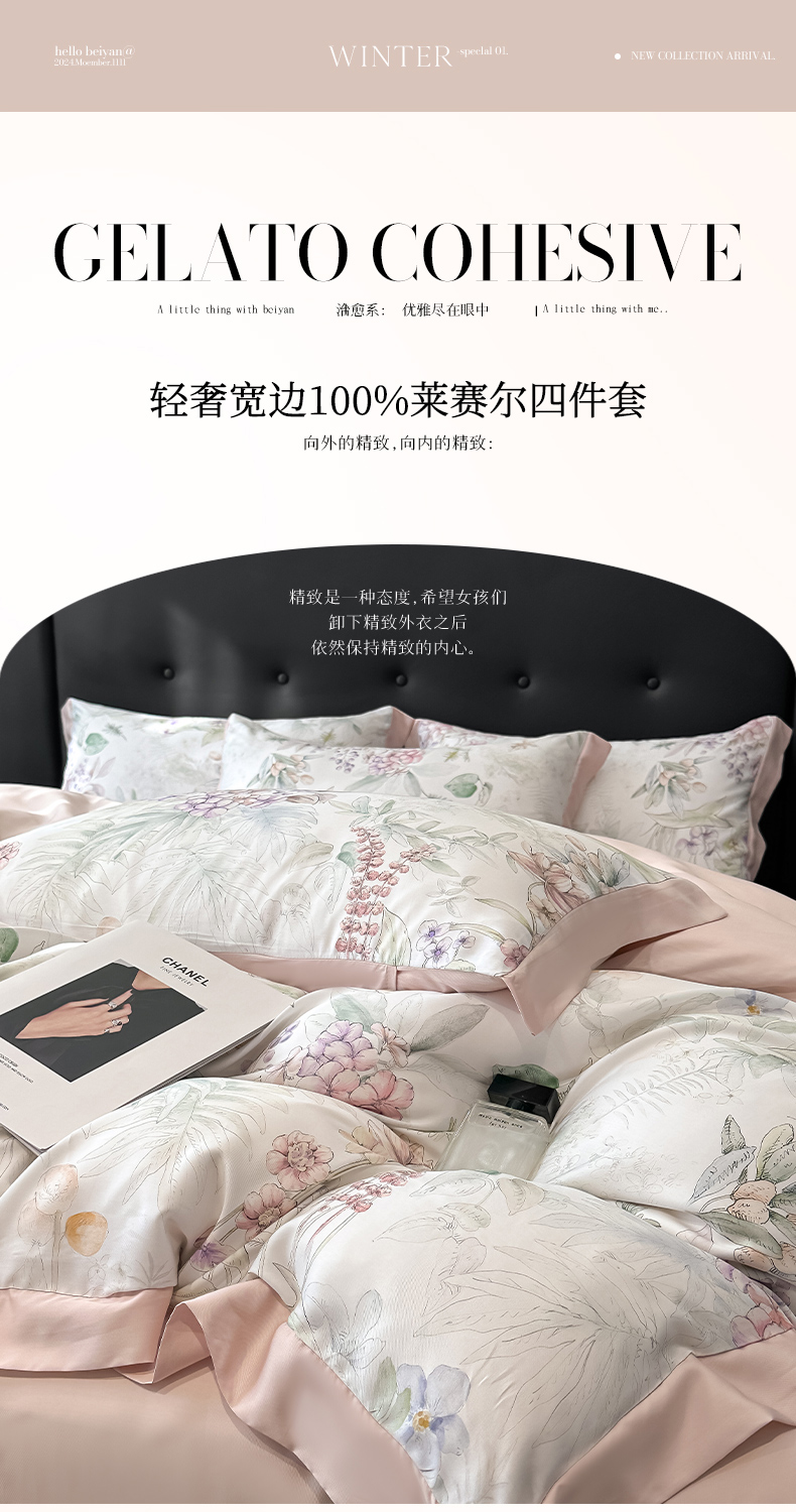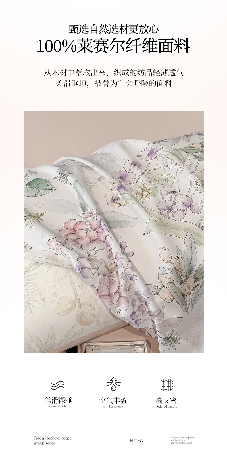 迷尚家居 2025新款100%莱赛尔数码印花四件套 繁花之恋