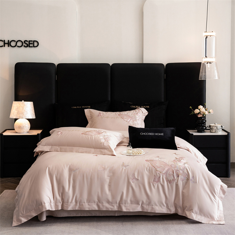 (总)初拾 2025新款100s澳棉简约刺绣四件套-柏林,柏林-浅香槟,柏林-浅云蓝,柏林-雅灰粉