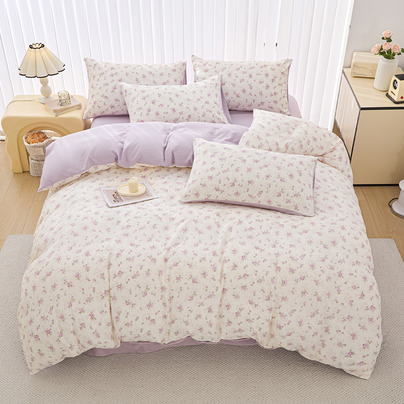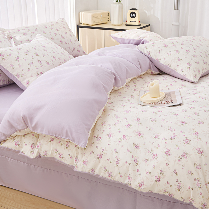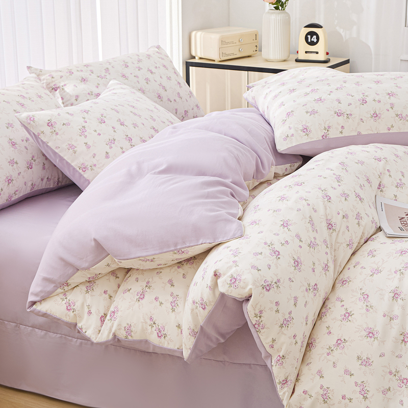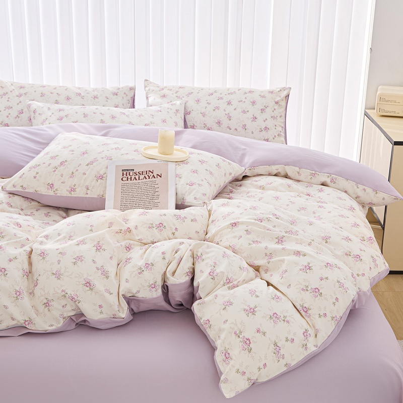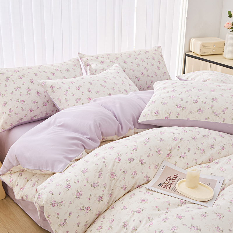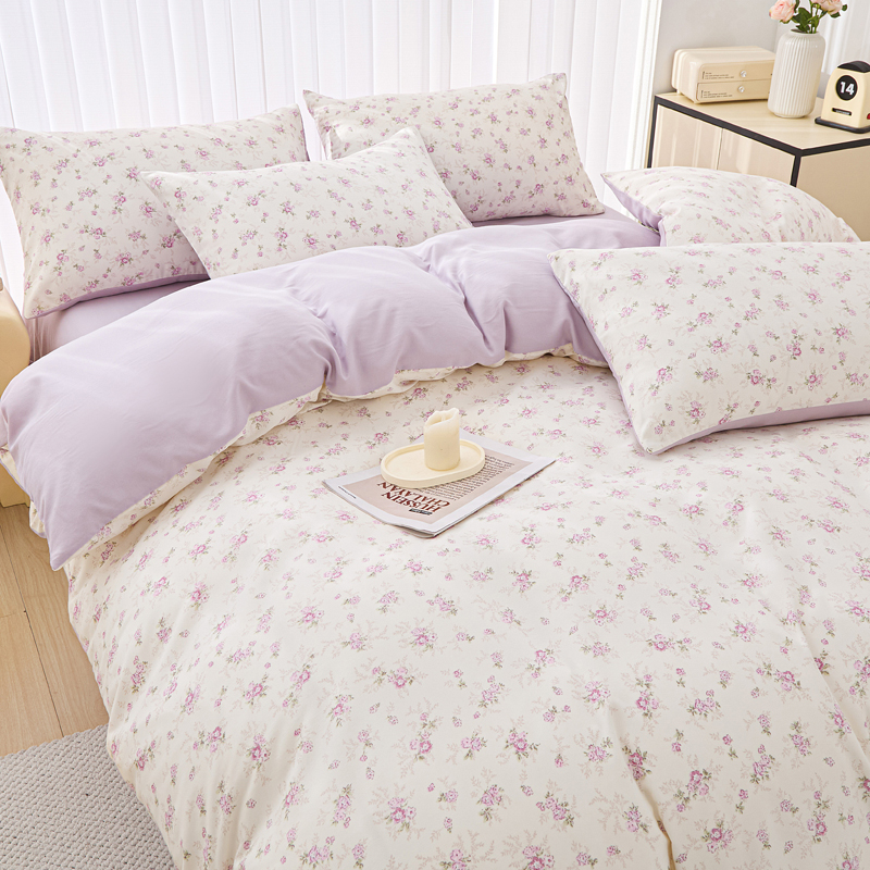 商品名称:雅慕家居 2025新款针织棉双层纱四件套 紫曼