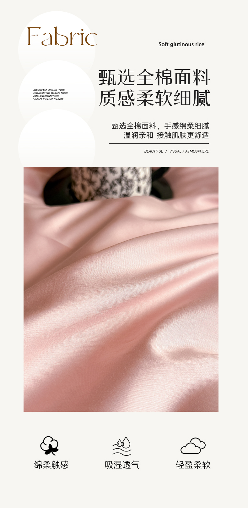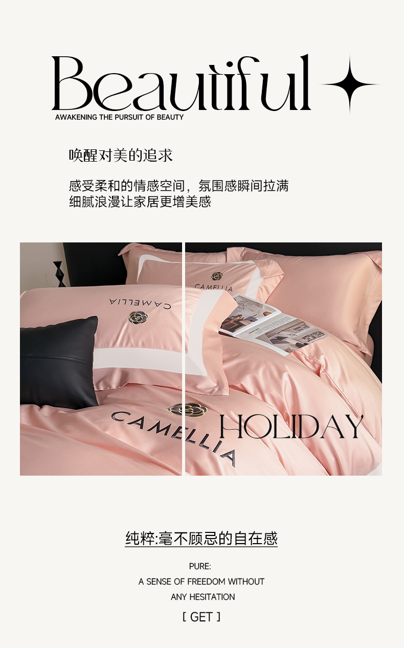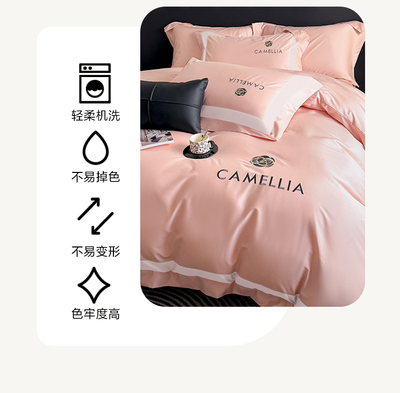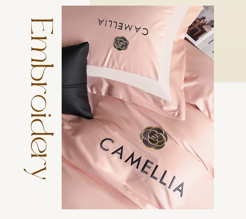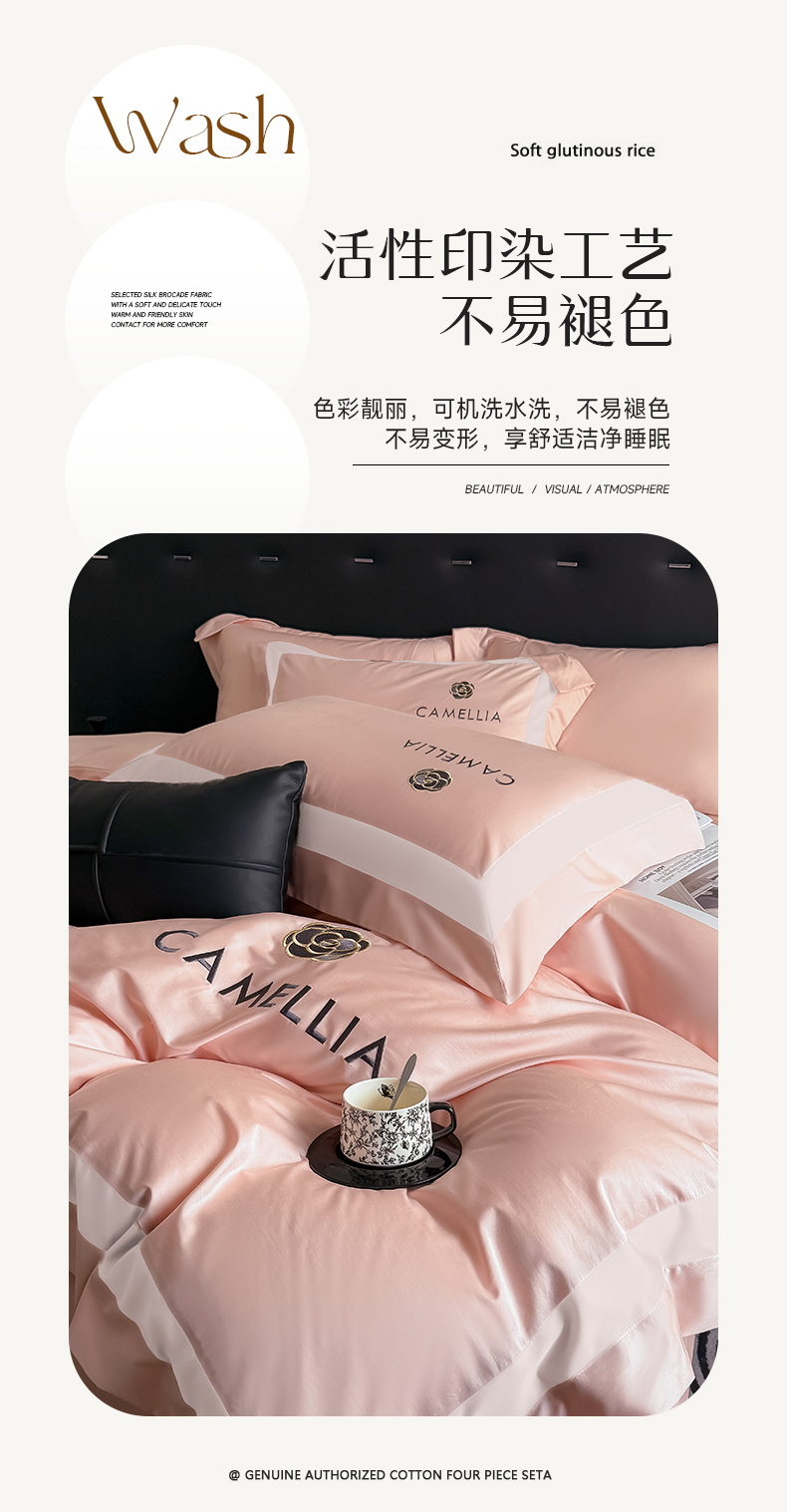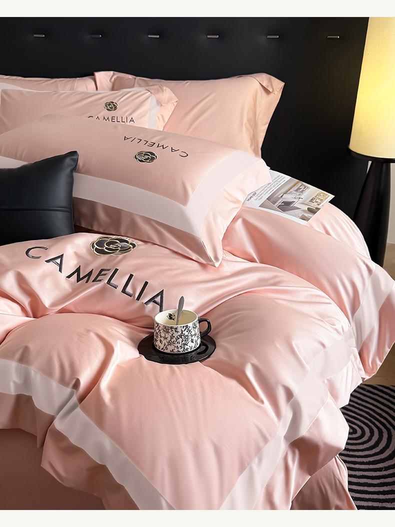 商品名称:水云缦 2025新款轻奢全棉双拼角绣花四件套-米兰系列 米兰-樱花粉