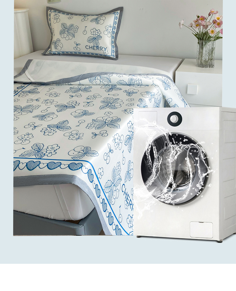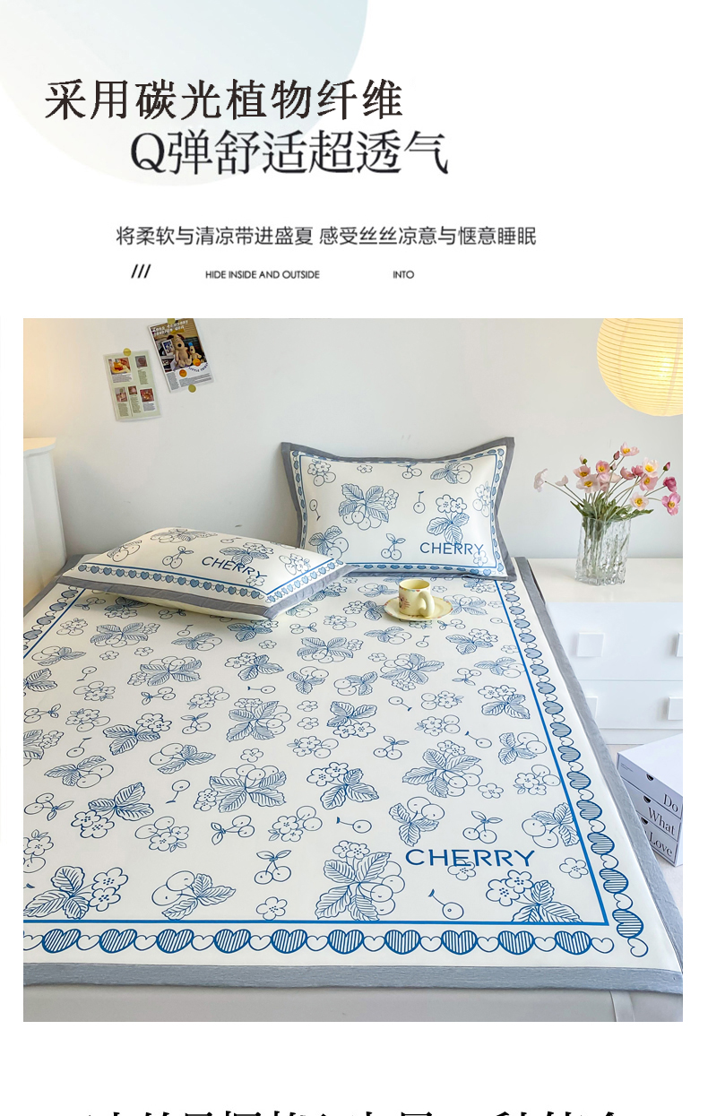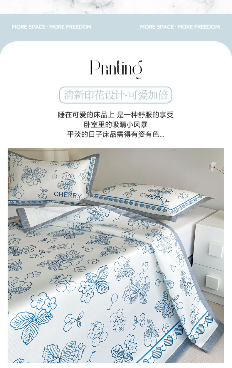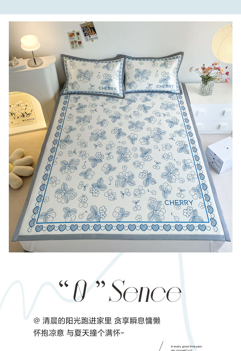 商品名称:邵依 2025新款数码印花烫光冰丝席凉席子藤席 静谧花园