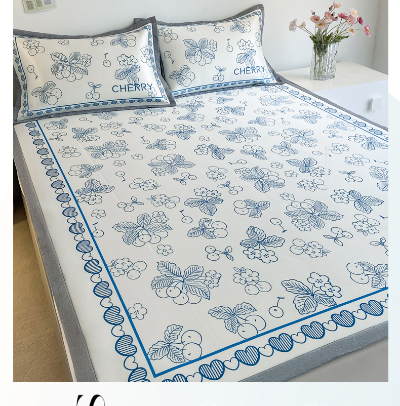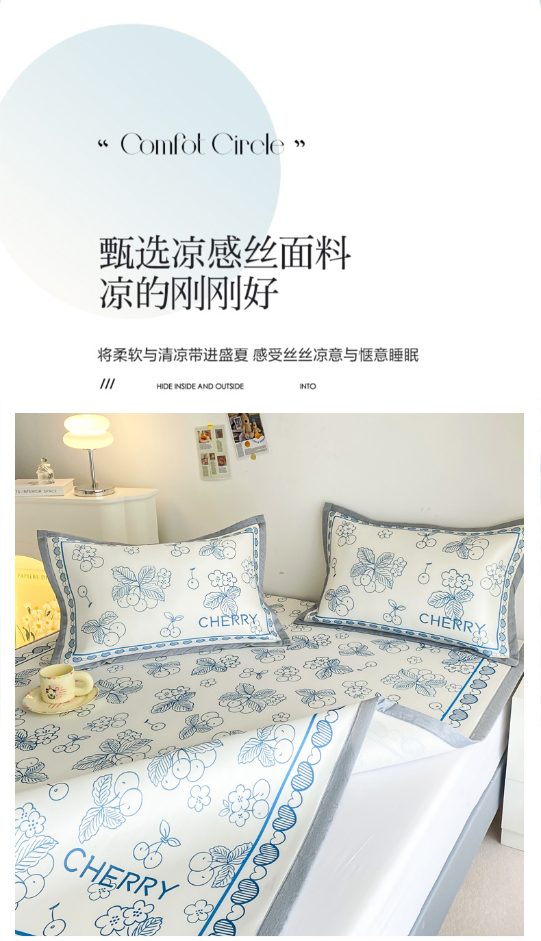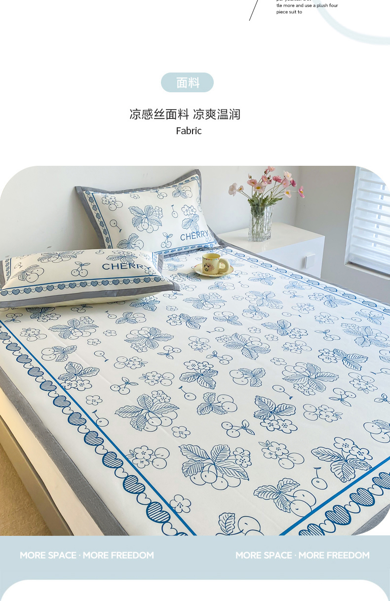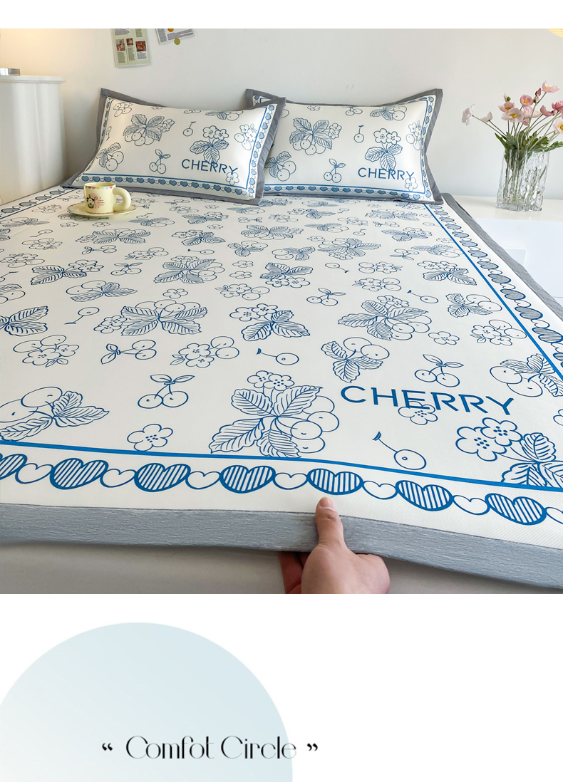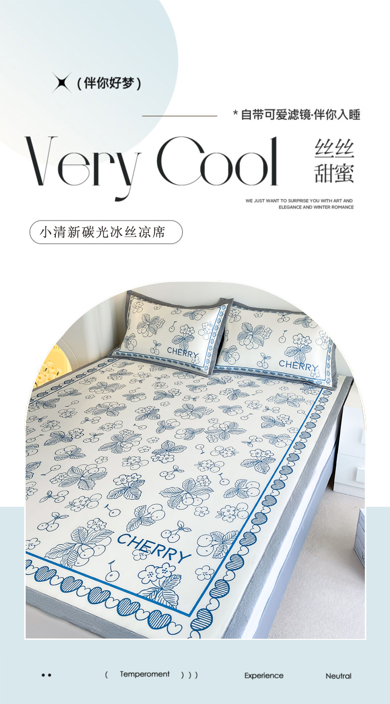 商品名称:邵依 2025新款数码印花烫光冰丝席凉席子藤席 静谧花园