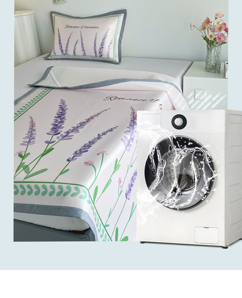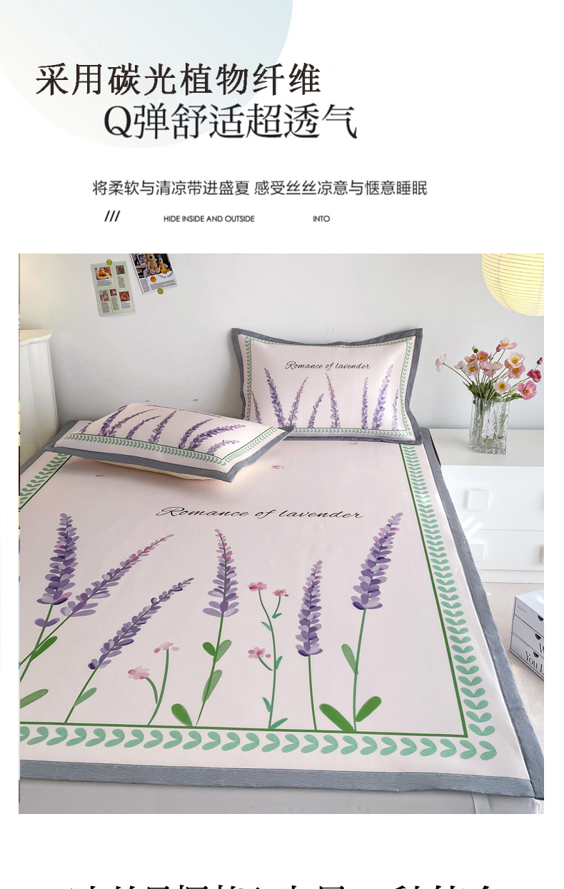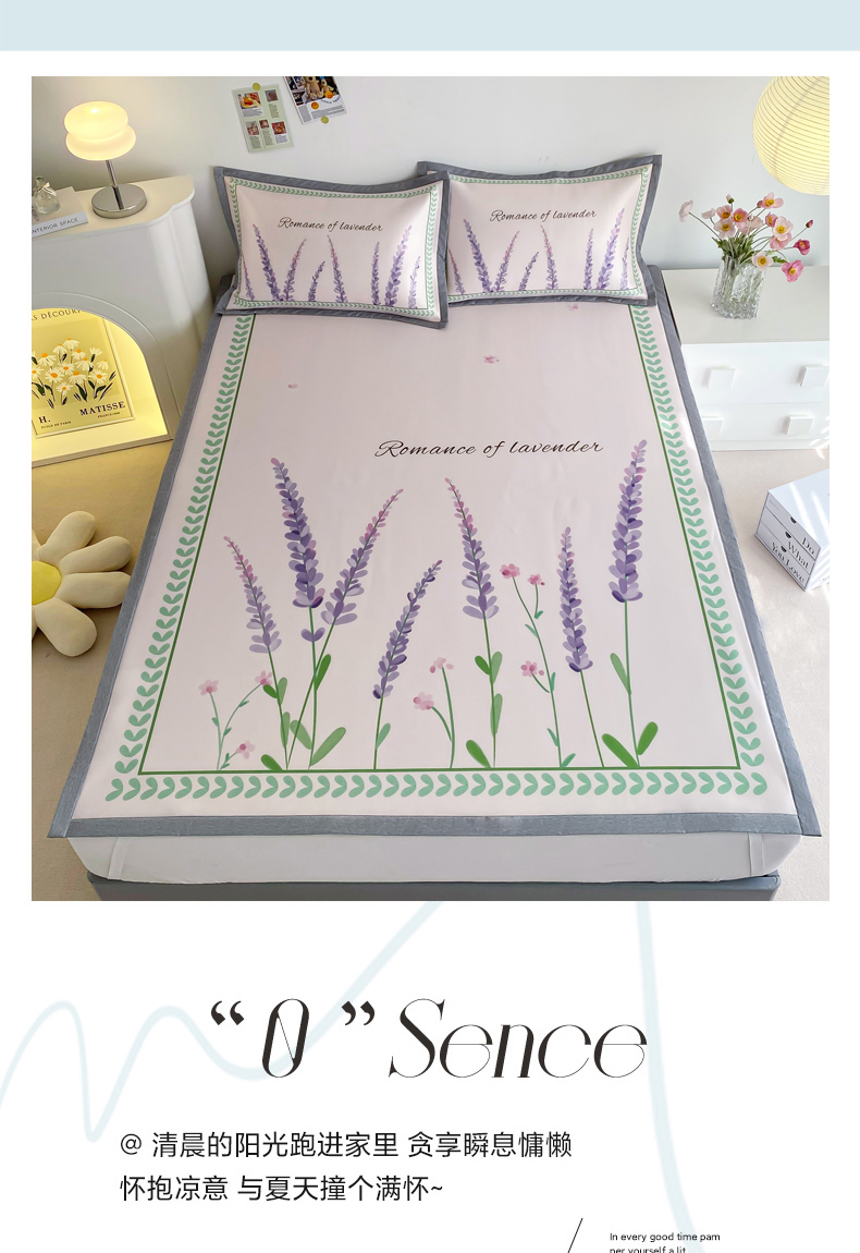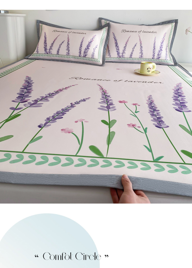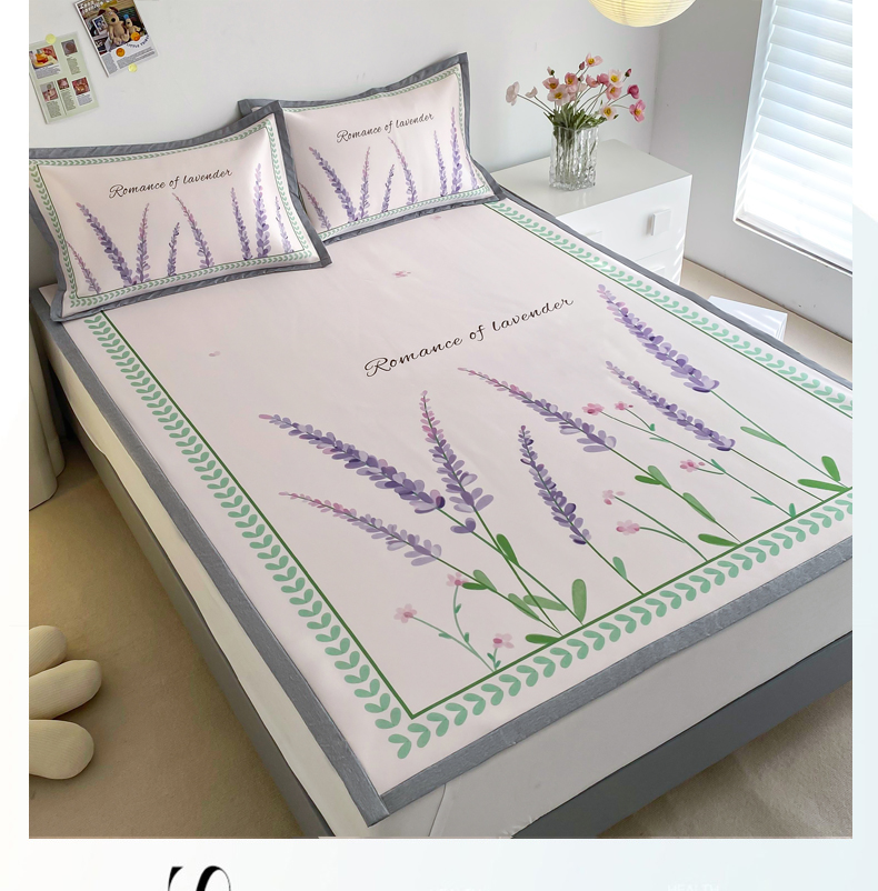 商品名称:邵依 2025新款数码印花烫光冰丝席凉席子藤席 薰衣草庄园