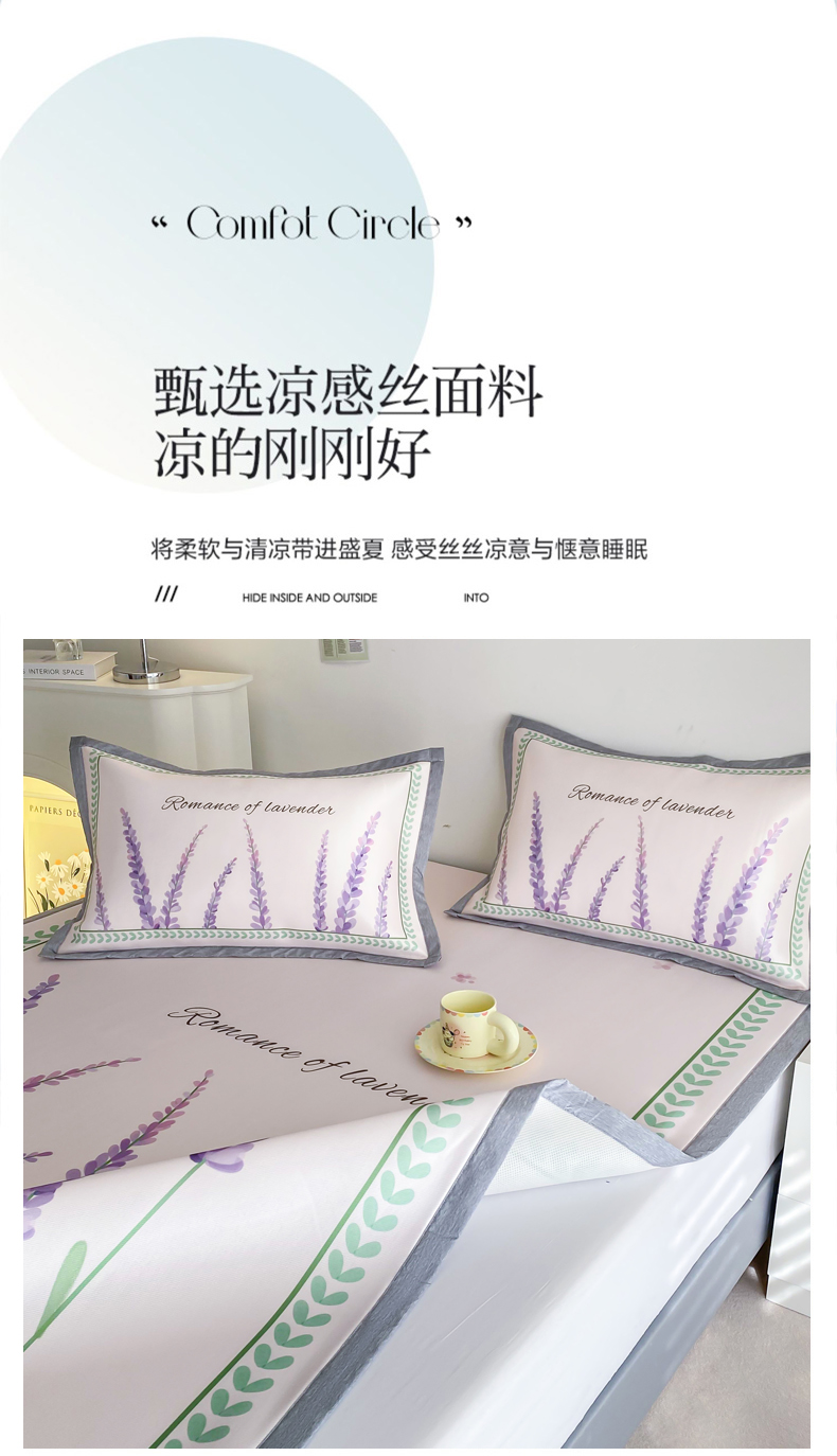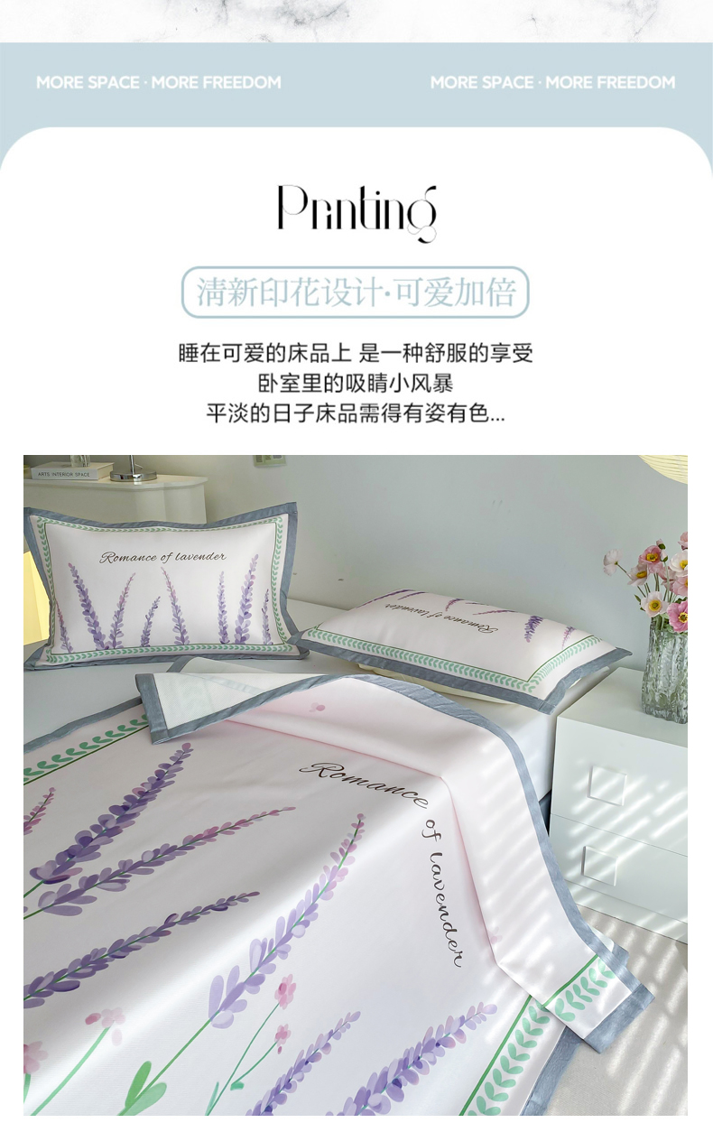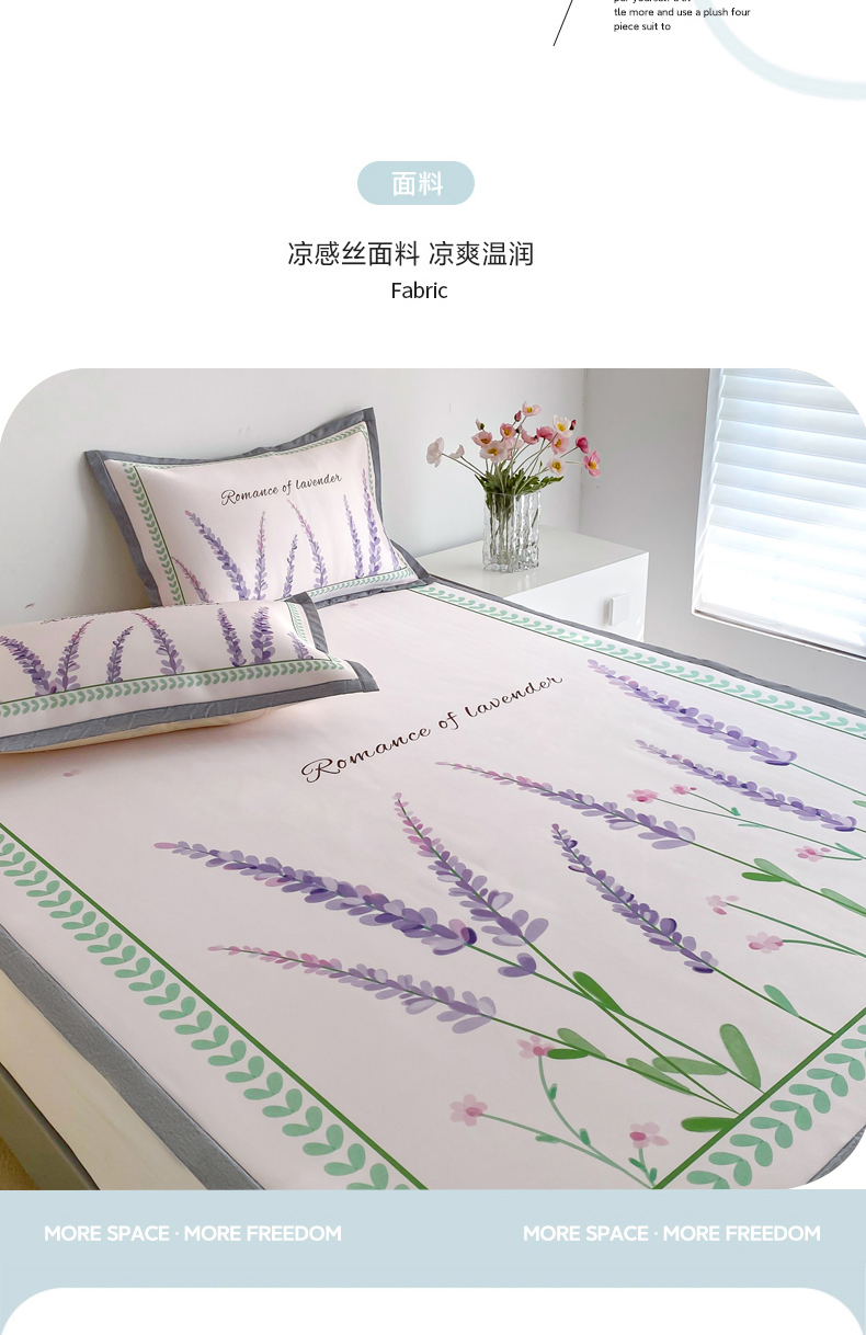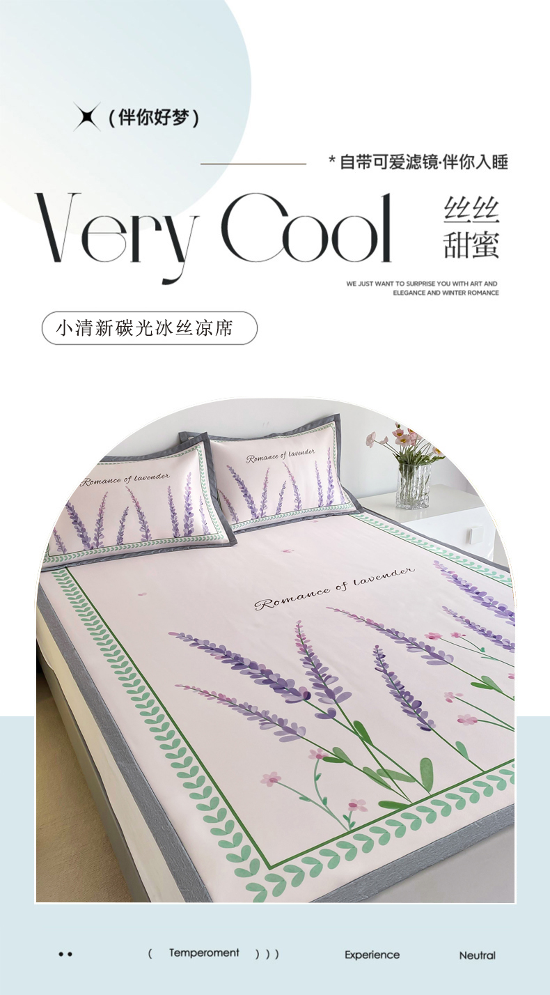 商品名称:邵依 2025新款数码印花烫光冰丝席凉席子藤席 薰衣草庄园
